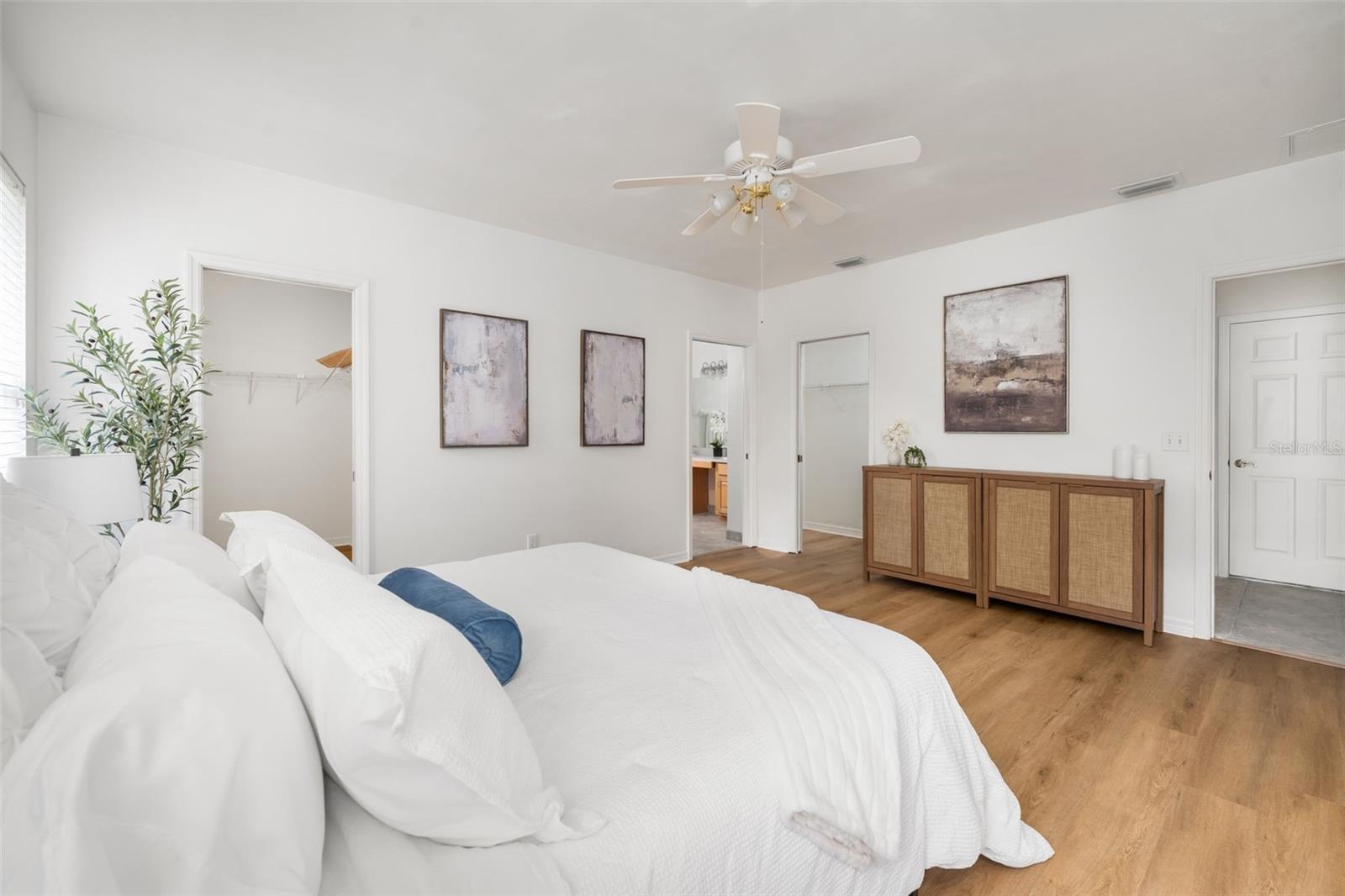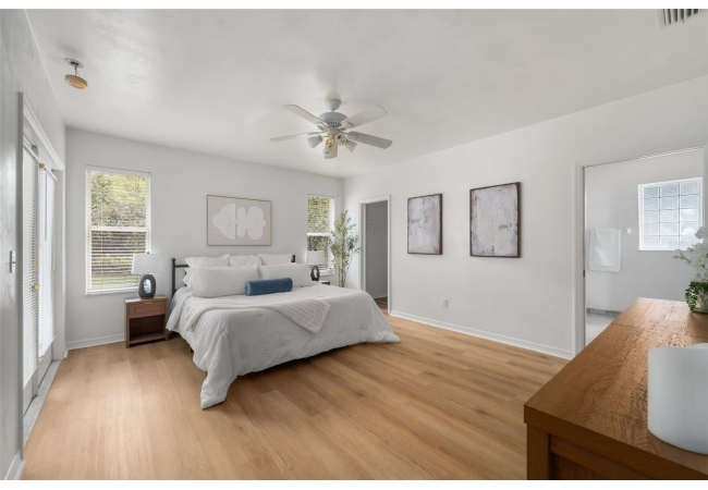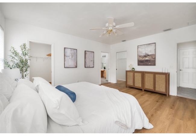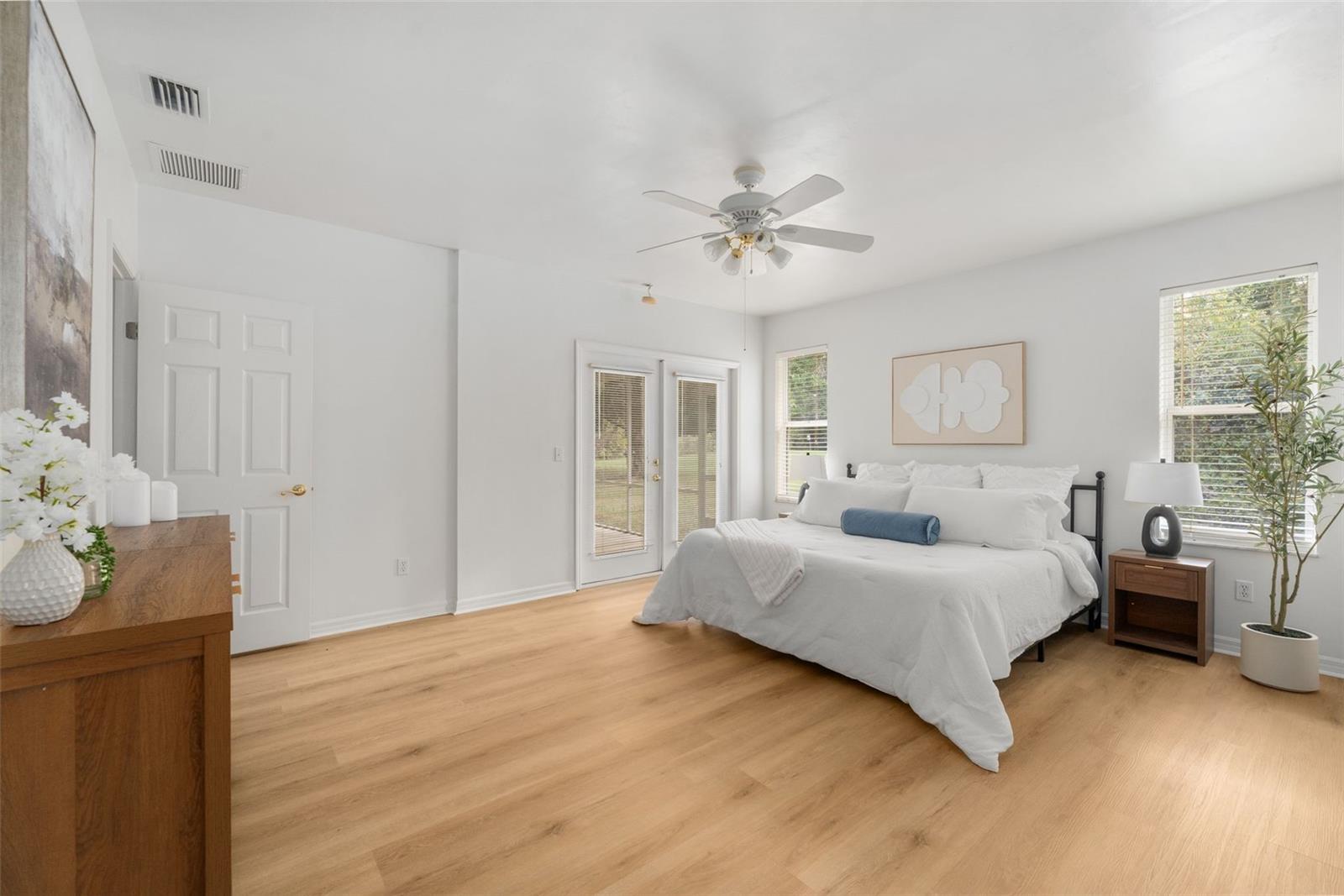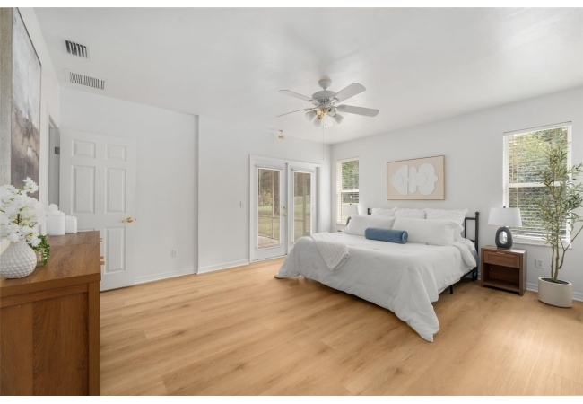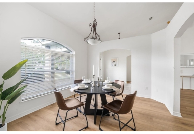 Off the living room, you’ll find a grand semi-open dining room connected to the spacious kitchen with a breakfast nook for breakfast on the go. You’ll also appreciate the convenience and privacy of a split floorpan. The primary bedroom not only offers privacy away from the rest of the home, but also has French doors leading to the massive screened in porch, perfect for watching the sun set in the evenings. You’ll adore the master bathroom, featuring double sinks and a huge walk in shower!