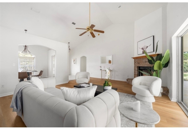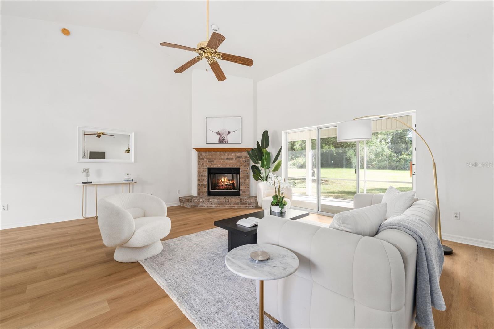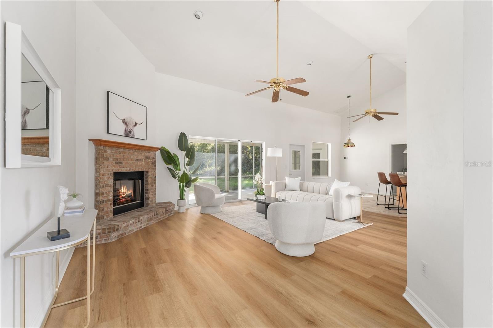 Step inside to find soaring high ceilings and a bright, open split floor plan featuring fresh paint and brand new LVP flooring. You’ll love the spacious living room with a brick wood-burning fireplace, perfect for relaxing evenings at home. With so much space inside and out, the options are endless.