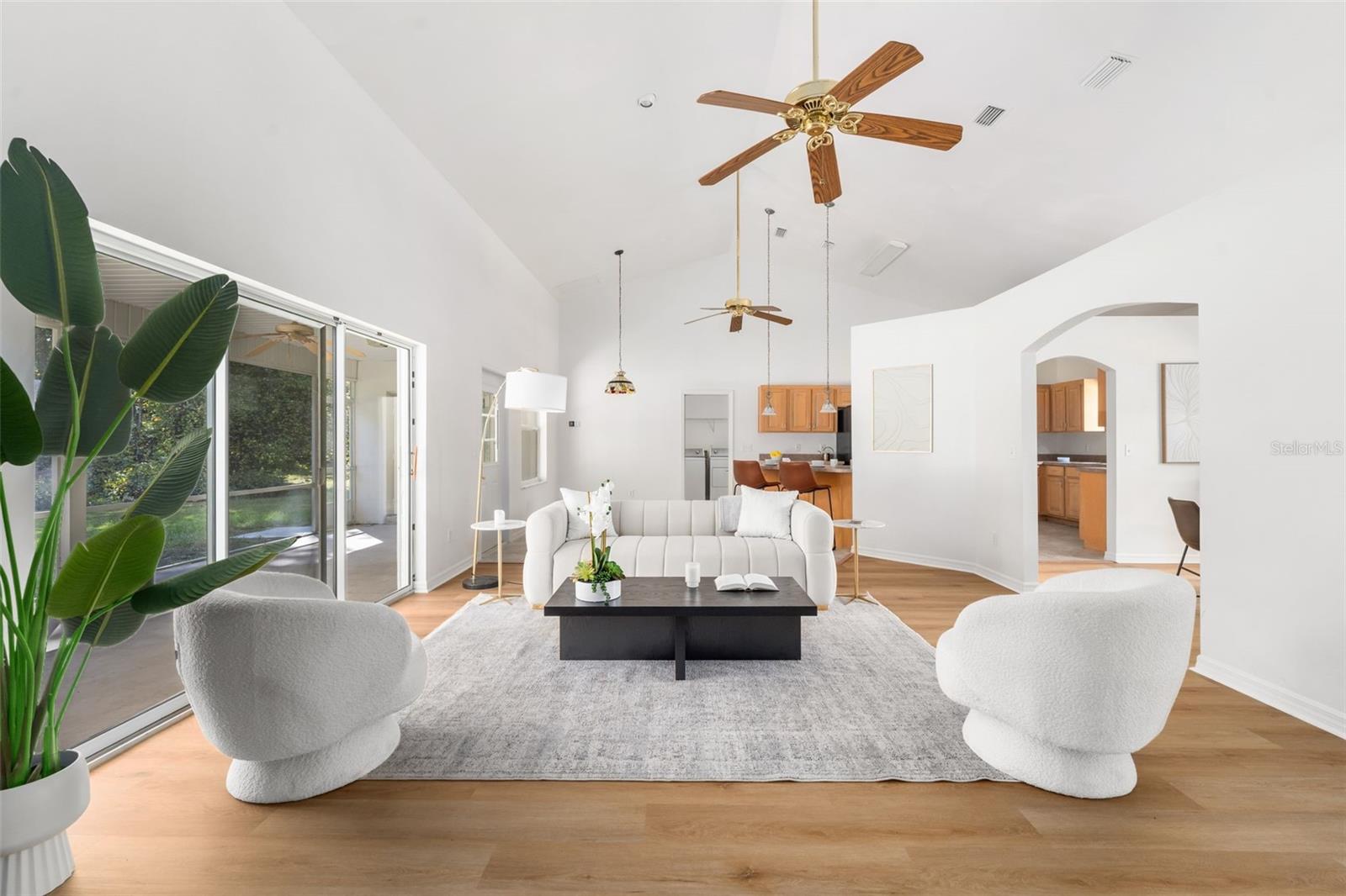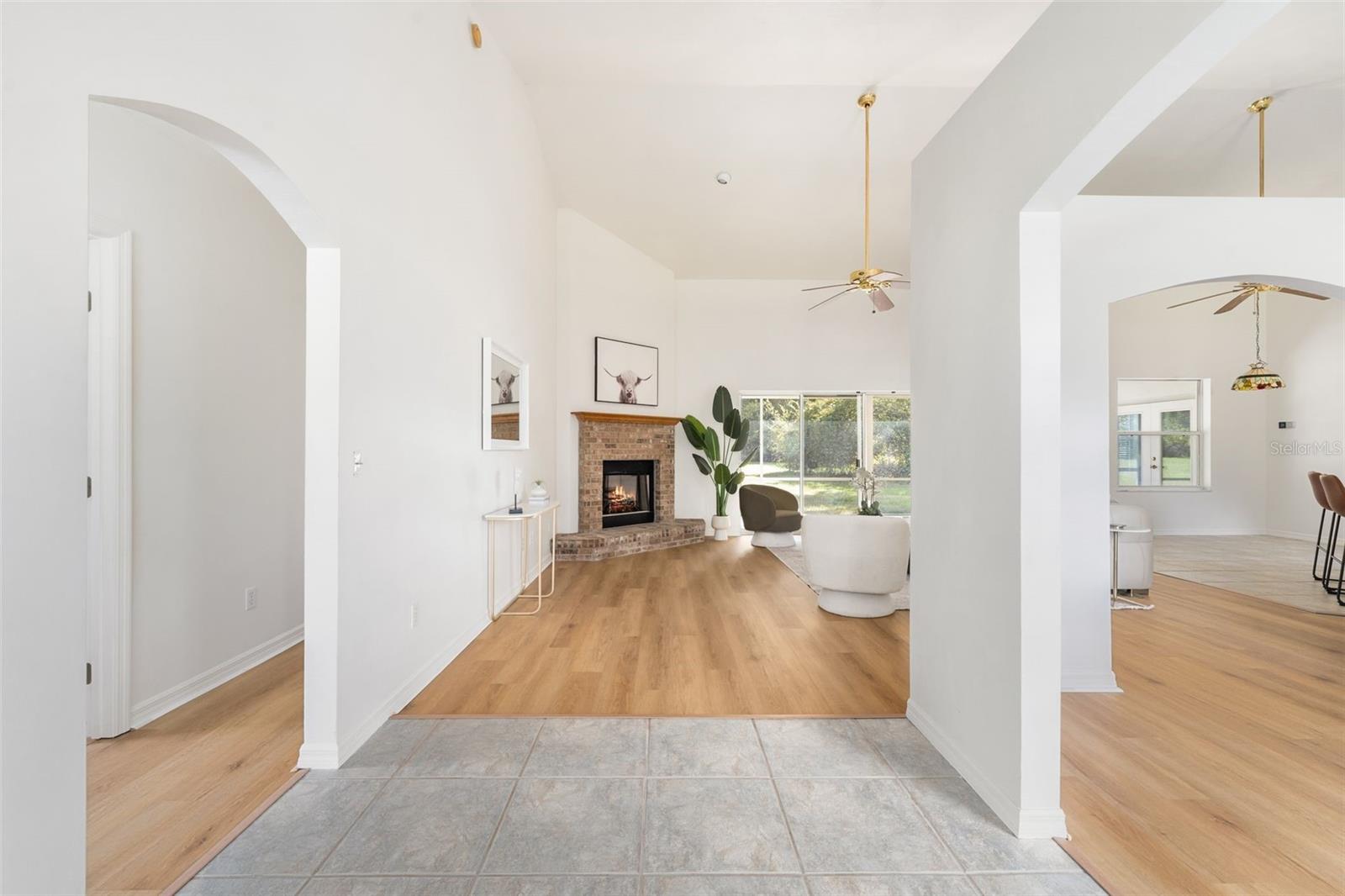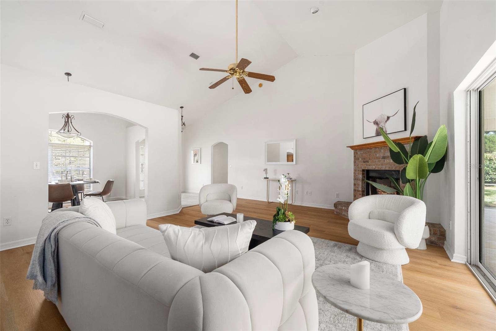 Step inside to find soaring high ceilings and a bright, open split floor plan featuring fresh paint and brand new LVP flooring. You’ll love the spacious living room with a brick wood-burning fireplace, perfect for relaxing evenings at home. With so much space inside and out, the options are endless.