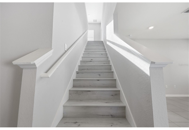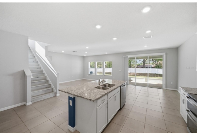 Stunning 5-Bedroom Home with Office, Upgraded Finishes & Spacious Layout. This beautifully maintained 5-bedroom, 3-bath home offers the perfect combination of space, functionality, and modern upgrades. No expense has been spared on the interior finishes, making this home truly stand out. A private office with elegant glass French doors greets you near the front entry, along with a convenient coat closet for added storage. The heart of the home is a bright, open kitchen featuring granite countertops, stainless steel appliances, a walk-in pantry, dedicated coffee bar, and an abundance of counter space and cabinetry—perfect for cooking, entertaining, and everyday living. Natural light pours in throughout the home, highlighting the durable luxury vinyl plank (LVP) flooring that runs seamlessly throughout—no carpet anywhere. Additional storage is thoughtfully designed, including a huge under-stair storage area located near the garage. The garage itself is upgraded with sleek epoxy-coated flooring. Upstairs, you’ll find a spacious second living area along with an enormous walk-in closet, providing incredible flexibility for storage or multi-use space. The primary suite is truly expansive, featuring a customized California-style closet system designed for optimal organization and maximum storage. Two additional guest bedrooms also include custom closet systems with built-in drawers and hanging space. Step outside to enjoy a large screened-in lanai overlooking a generously sized backyard—perfect for pets, a playground, or even a trampoline. Washer and dryer are included in the sale, adding even more convenience for the next homeowner.