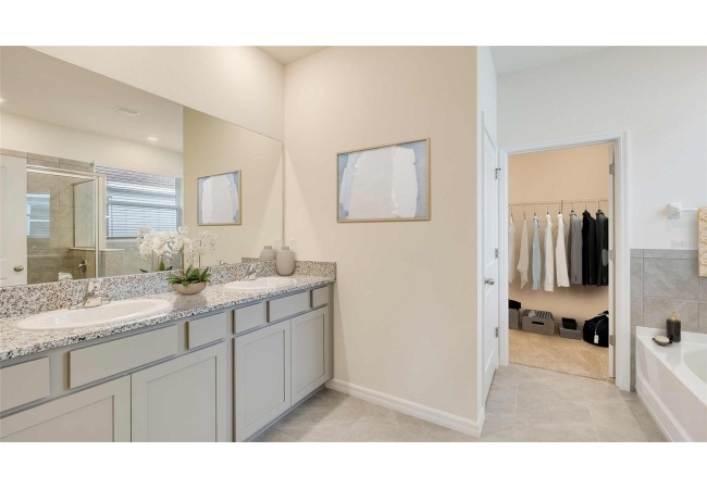 One or more photo(s) has been virtually staged. Under Construction. This one-story home has a truly open concept plan, featuring a great room with dining space that flow into the kitchen and dinette. Two bedrooms at the front of the home share a full bathroom, while Bedroom 1 with ensuite bath is located on the rear of the home for privacy, providing beautiful views of the backyard. The fourth bedroom next to the kitchen features its own ensuite bath and walk-in closet. This home includes installed stainless-steel range, microwave, and dishwasher and features a 3-car side-load garage. Pictures, photographs, colors, features, and sizes are for illustration purposes only and will vary from the homes as built. Home and community information including pricing, included features, terms, availability and amenities are subject to change and prior sale at any time without notice or obligation. CRC057592.
