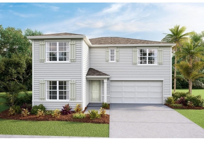 Under Construction. This two-story concrete-block-constructed home features an open-concept first-floor living space with a guest bedroom and an outdoor covered lanai. The stairs to the second story land in a spacious loft fit to serve as an additional entertainment space, a playroom, or an office. Bedroom 1 features an ensuite bathroom with a roomy walk-in closet. The laundry room is perfectly situated between the other two bedrooms and next to the third bathroom. This home comes equipped with a built-in dishwasher, electric range and microwave. Pictures, photographs, colors, features, and sizes are for illustration purposes only and will vary from the homes as built. Home and community information including pricing, included features, terms, availability and amenities are subject to change and prior sale at any time without notice or obligation. CRC057592