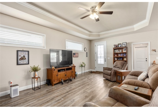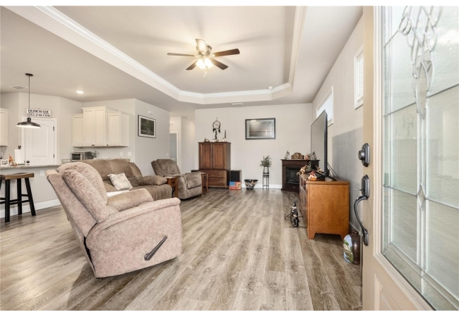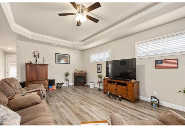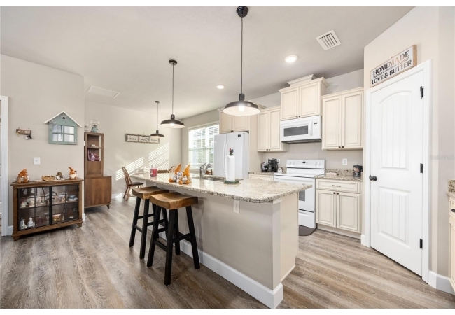 Step into the heart of the home: a stunning kitchen designed for both everyday living and entertaining. It boasts a large 4-seat island, granite countertops, electric oven/range, step-in pantry, and an abundance of cabinet and storage space. The great room features a tray ceiling and flows seamlessly into the dining area, creating a warm, inviting space for gatherings.