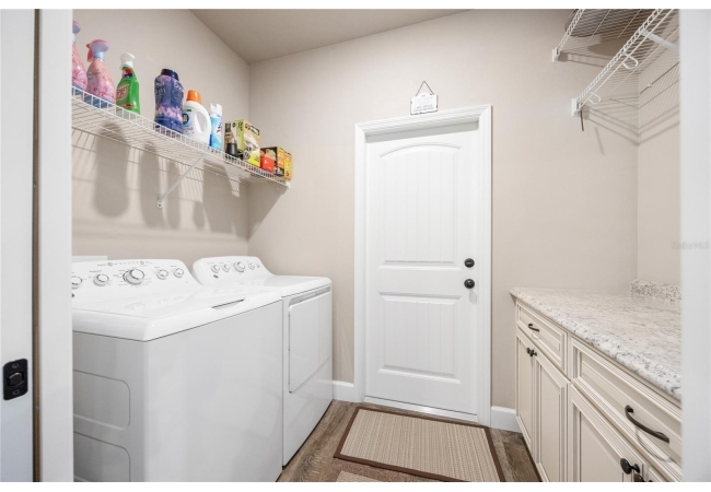 Additional upgrades and features include 9’ ceilings throughout, a propane tankless water heater, whole-house water softener, whole-house surge protector, and extra shelving in the laundry room. The spacious 2 car garage is an upgrade providing room for cars, equipment or lots of storage.