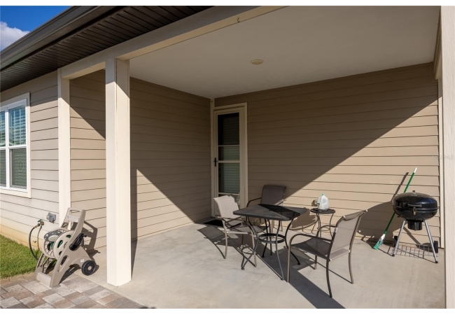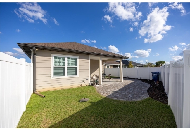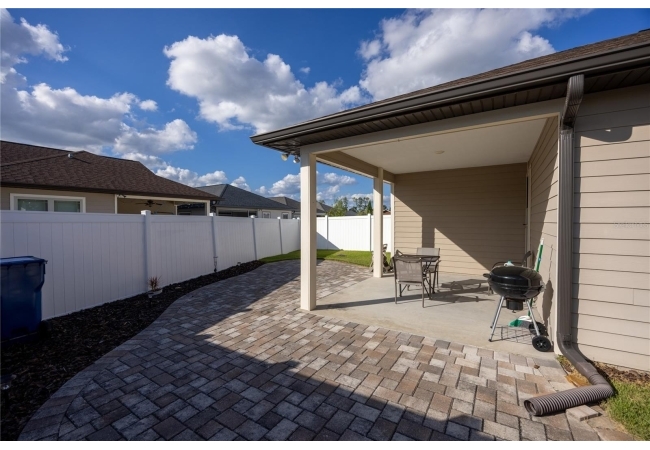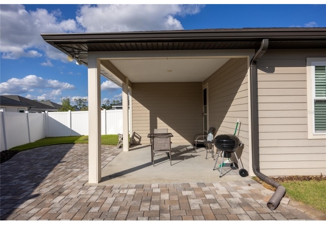 Enjoy the outdoors year-round on your covered back porch and extended paver patio—perfect for relaxing or hosting friends. The professionally landscaped yard is low-maintenance with front lawn care provided by the HOA for added ease. Irrigation system in front yard.