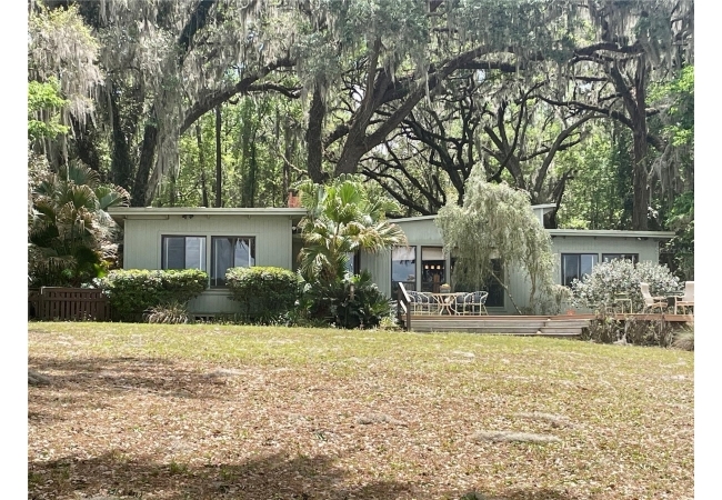 Lake front 2/2 home on beautiful Bivens Arm lake directly across from State Property and UF Veterinary. 1.74 acres with gorgeous giant live oak trees! Spacious back porch for sitting and enjoying the stunning lake view while relaxing and enjoying a beverage or Bar-B-Cueing! The interior features a large living room with pine walls, window large brick fireplace and hardwood flooring. Master BR has pine walls and wood flooring. Master bath has old style tile walls and tile flooring. 2nd bedroom is spacious and has wood floor. Large kitchen features custom McCallum built cabinetry along with appliances. Lots of windows throughout the entire home with incredible lake views and views of the large