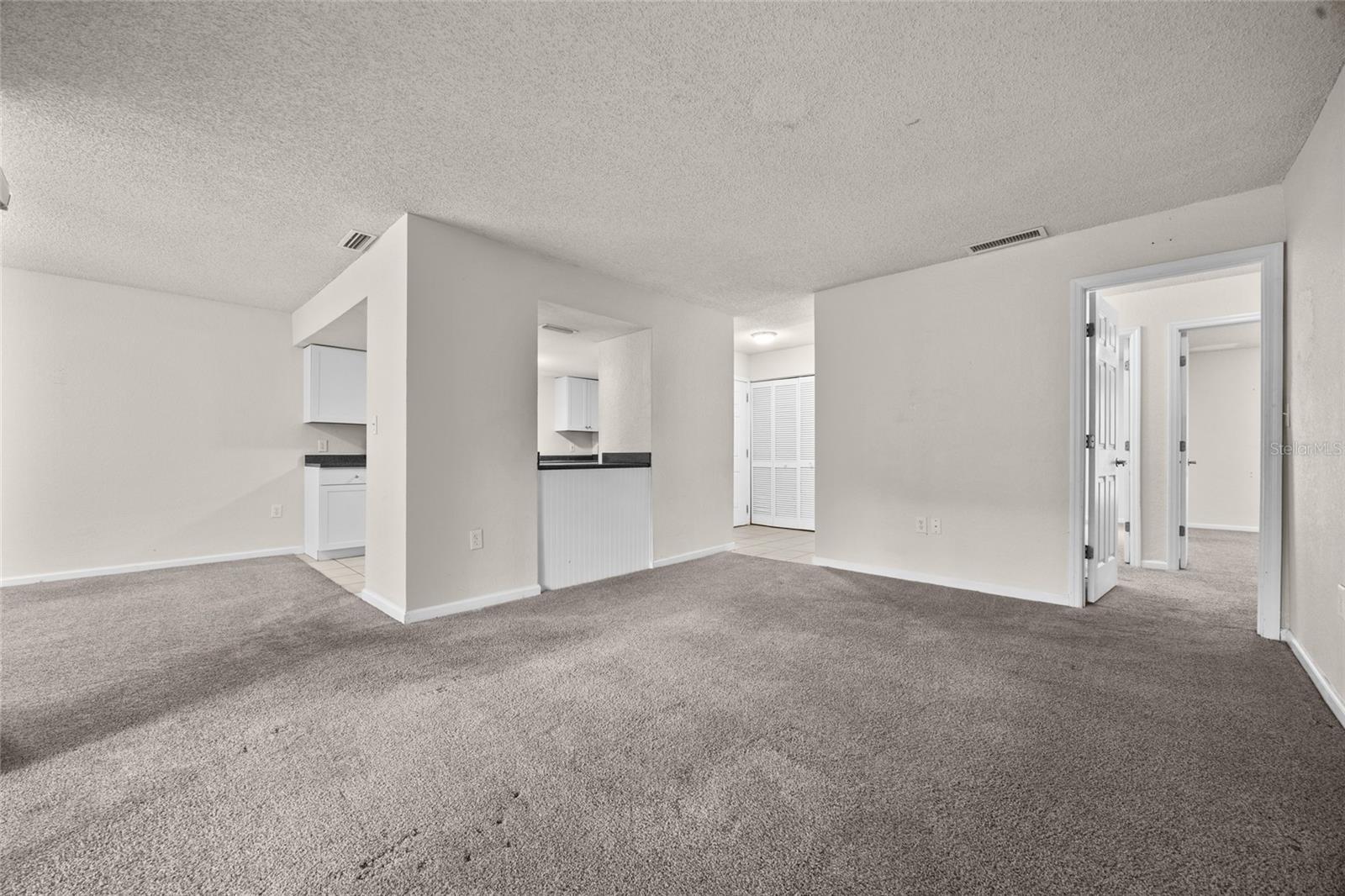 The open-concept great room seamlessly combines the living, dining, and kitchen areas, creating an ideal setting for both everyday living and entertaining. Step out onto the lovely screened in balcony with additional storage space and enjoy peaceful views of the surrounding wooded landscape—it's like living in a nature preserve. Designed with neutral tones throughout, the unit also includes a washer and dryer for added convenience.