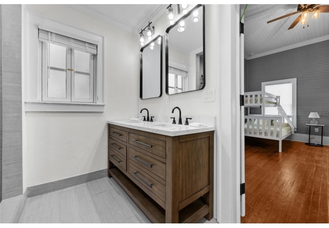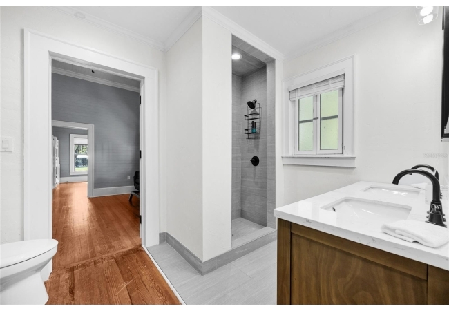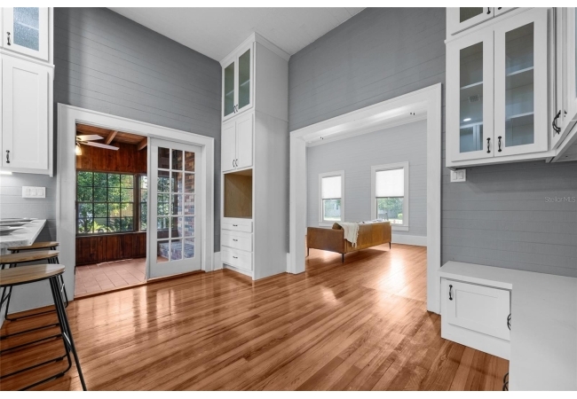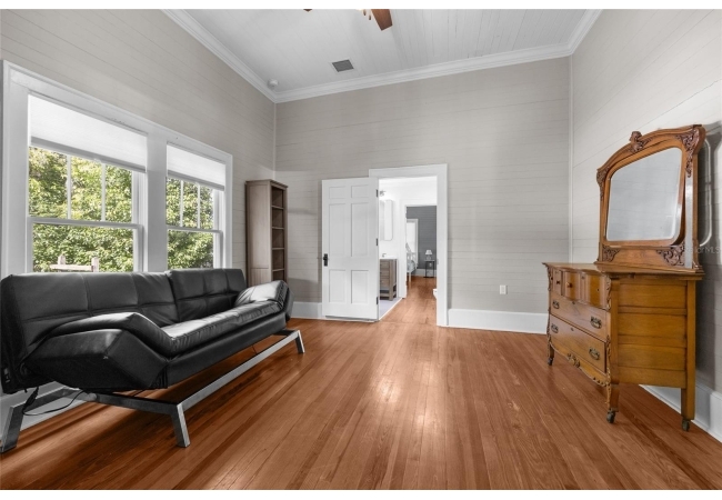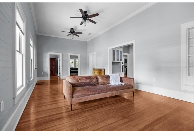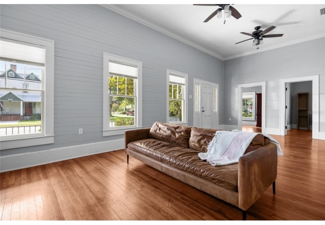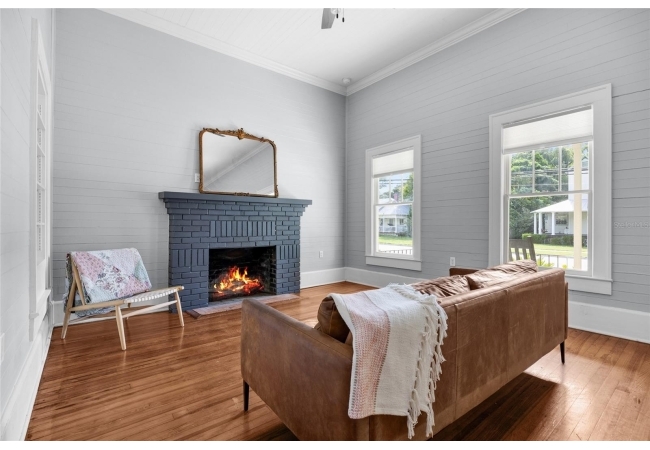 Step into a rare blend of early 1900s craftsmanship and thoughtful modern design. This meticulously restored historic home has been rebuilt from the ground up with hundreds of thousands invested in high-quality upgrades and thousands of hours of skilled, hands-on care—all with the goal of preserving its character while providing the comfort and efficiency of modern living. What began as a labor of love became a full-scale transformation. Beneath layers of wallpaper and plaster, the original beadboard walls and ceilings were uncovered and carefully restored by hand, revealing the home’s true turn-of-the-century personality. The original hardwood floors were repaired, refinished, and paired with custom period-appropriate trim, maintaining every bit of the home’s nostalgic warmth. Where possible, original windows were reglazed and restored; when not, custom replicas were crafted to match seamlessly. Every system has been thoughtfully updated, including a brand-new HVAC system with all new ductwork and central air, dual attic fans and vapor barriers for climate control, and completely new electrical, plumbing, and gas lines serving the kitchen, laundry, and on-demand tankless water heater. Every modern convenience was added with respect for the home’s original footprint, including a new third bathroom, a Jack-and-Jill bath with dual vanities and a walk-in shower, and a custom laundry and pantry with built-in cabinetry. The craftsmanship continues throughout with custom-built cabinetry, a cozy reading nook, restored shiplap and beadboard, repainted cast and wrought iron railings, a rebuilt roof, re-leveled foundation using original brickwork, and a beautifully restored brick patio. The interior and exterior have been freshly painted in curated, historic colors that honor the home’s soul. A detached garage with new electrical service, tankless gas water heater, and gas-powered stove and dryer complete the package. This home is not just a remodel—it’s a reverent restoration that honors the craftsmanship of the past while embracing the standards of today. Every inch has been elevated with intention, warmth, and enduring quality. Located within walking distance to downtown High Springs, local restaurants, brewery, and shopping, and only minutes from the Santa Fe River, springs, and an easy drive to Gainesville or Lake City.