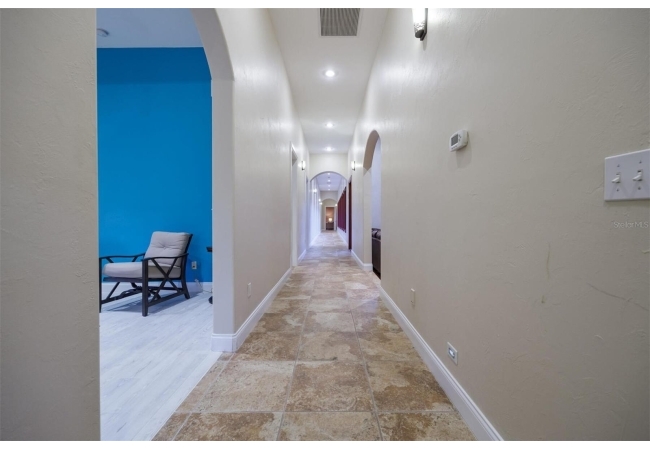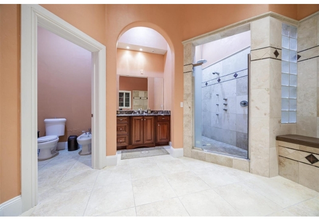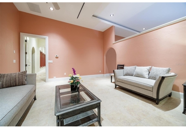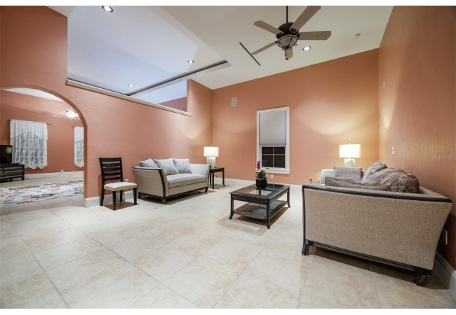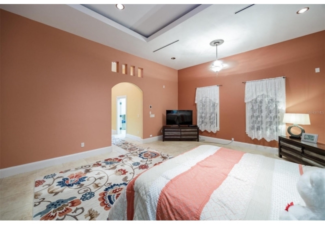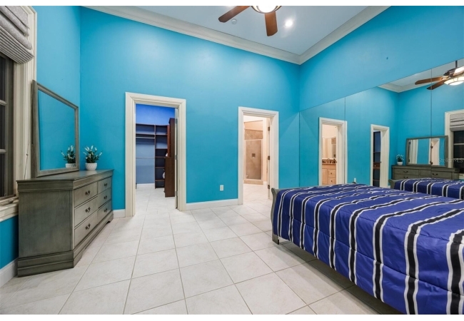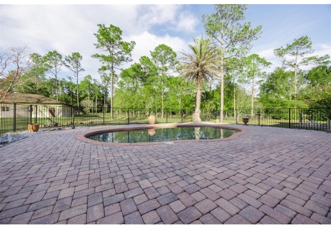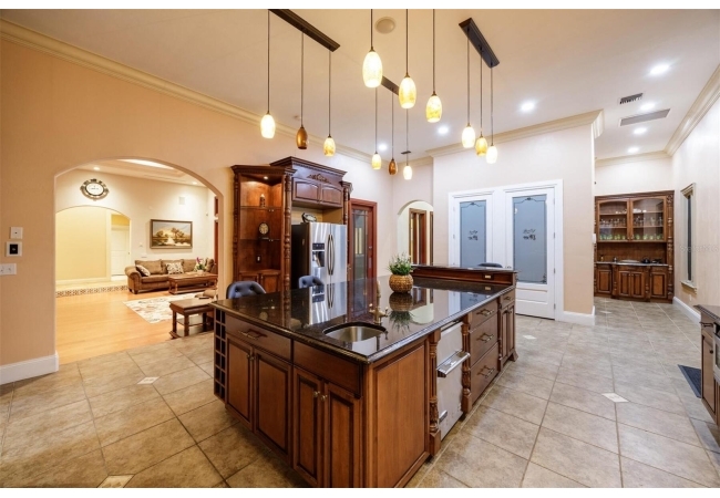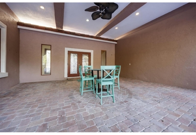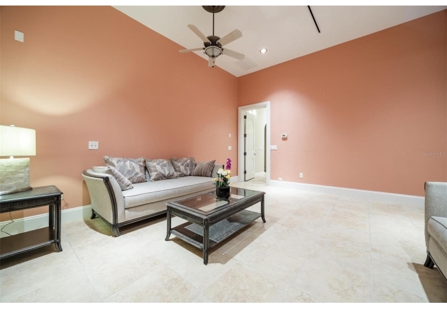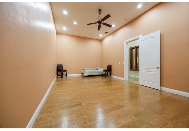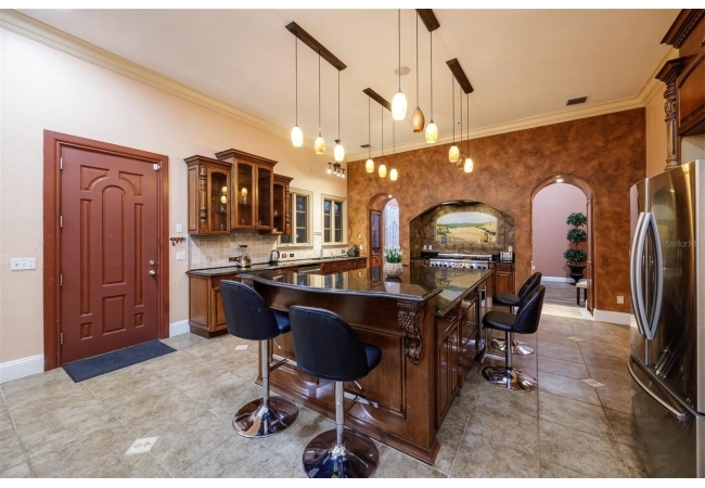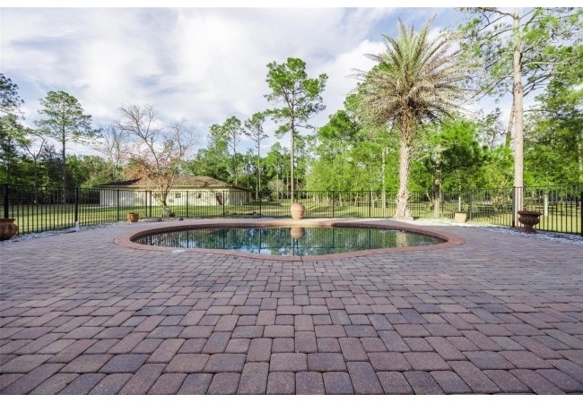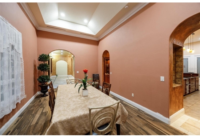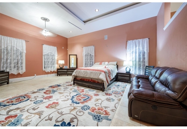 Extraordinary Mediterranean Revival estate set on 10 private acres, offering timeless architecture and refined craftsmanship. This over-7,000 sq ft residence welcomes you through a sweeping motor court with fountain, framed by classic stucco, clay barrel tile roofing, and deep arched loggias.The interior features expansive living spaces with soaring ceilings, stone flooring, rich wood accents, and abundant natural light with serene courtyard views. The chef’s kitchen is designed for entertaining with custom cabinetry, an oversized island with seating, and striking pendant lighting. The primary suite is a private retreat with tray ceilings, a spa-inspired bath featuring dual vanities, a jetted soaking tub, and an oversized walk-in shower with rain head and multiple body sprays. Multiple custom walk-in closets with built-in cabinetry provide exceptional storage. Library, 3 car garage, and outdoor kitchen all add versatility to this unique property. Other outdoor amenities include an in-ground pool and a tranquil meditation pond, enhancing the property’s resort-like feel. A separate approx. 1,800 sq ft guest house, along with horse stables and paddocks, completes this equestrian-ready estate—ideal for multi-generational living, guests, or staff. A rare offering combining architectural integrity, privacy, and lifestyle versatility.