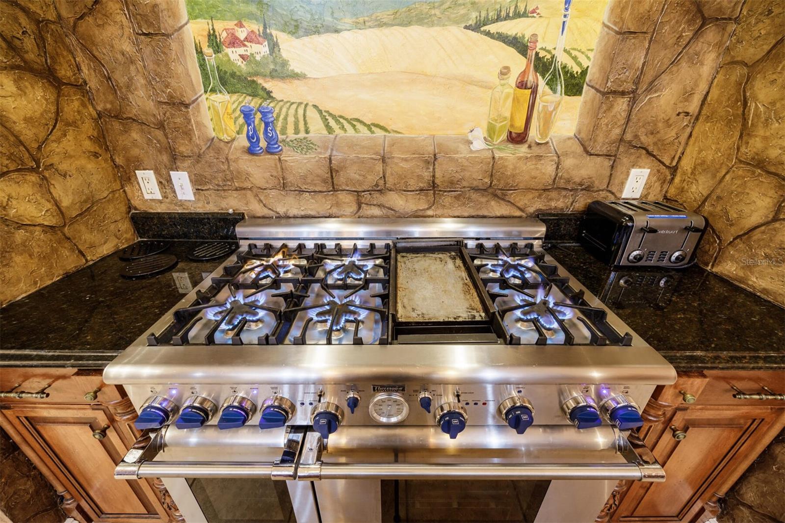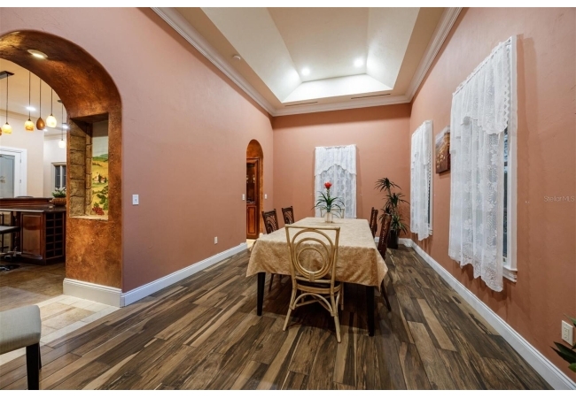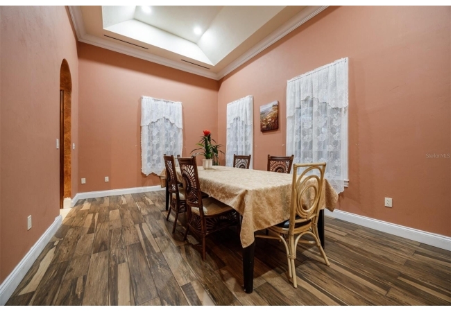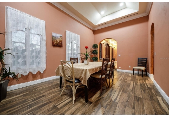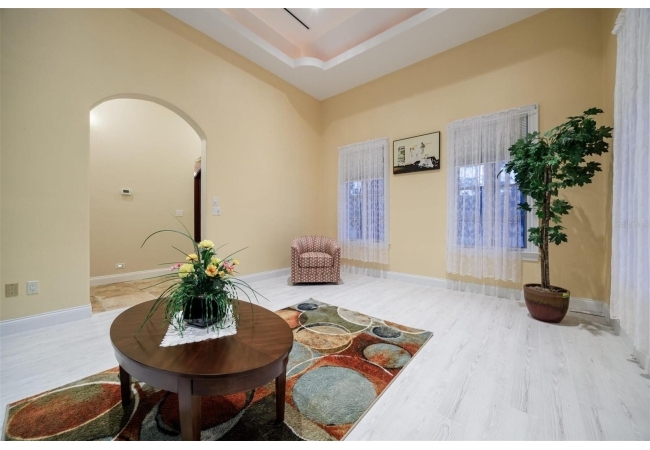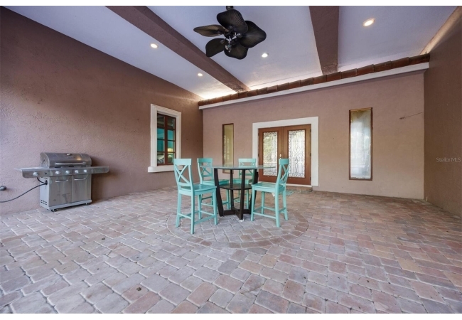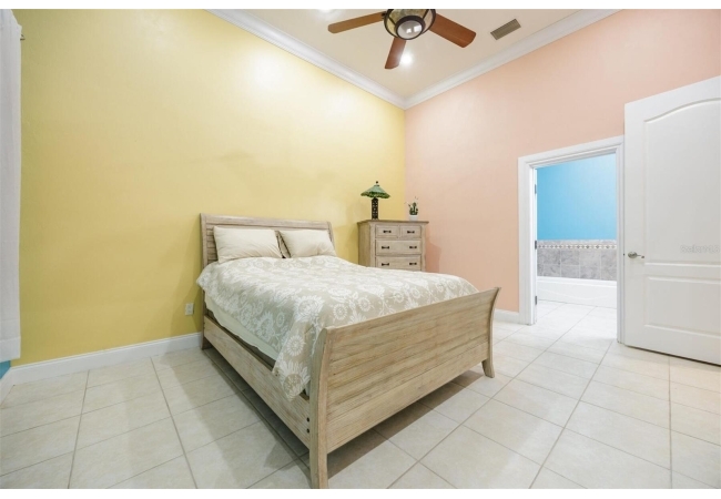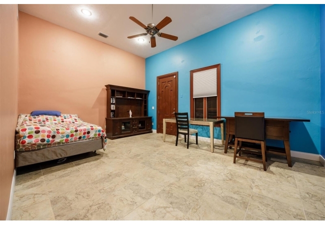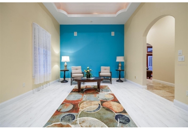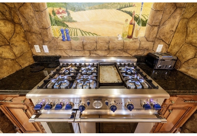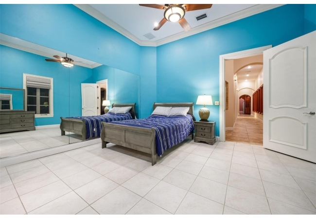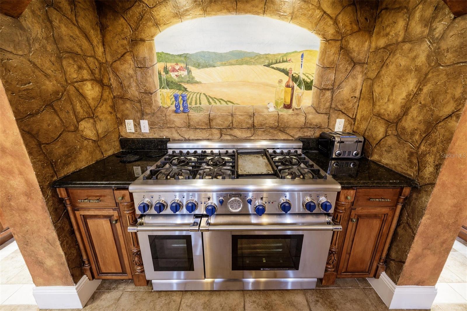 Extraordinary Mediterranean Revival estate set on 10 private acres, offering timeless architecture and refined craftsmanship. This over-7,000 sq ft residence welcomes you through a sweeping motor court with fountain, framed by classic stucco, clay barrel tile roofing, and deep arched loggias.The interior features expansive living spaces with soaring ceilings, stone flooring, rich wood accents, and abundant natural light with serene courtyard views. The chef’s kitchen is designed for entertaining with custom cabinetry, an oversized island with seating, and striking pendant lighting. The primary suite is a private retreat with tray ceilings, a spa-inspired bath featuring dual vanities, a jetted soaking tub, and an oversized walk-in shower with rain head and multiple body sprays. Multiple custom walk-in closets with built-in cabinetry provide exceptional storage. Library, 3 car garage, and outdoor kitchen all add versatility to this unique property. Other outdoor amenities include an in-ground pool and a tranquil meditation pond, enhancing the property’s resort-like feel. A separate approx. 1,800 sq ft guest house, along with horse stables and paddocks, completes this equestrian-ready estate—ideal for multi-generational living, guests, or staff. A rare offering combining architectural integrity, privacy, and lifestyle versatility.