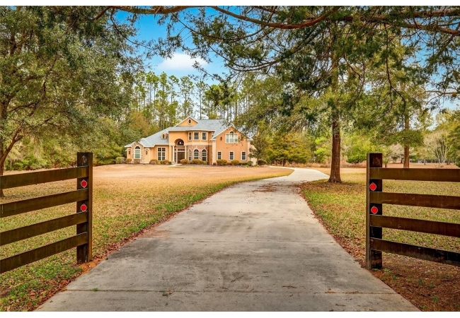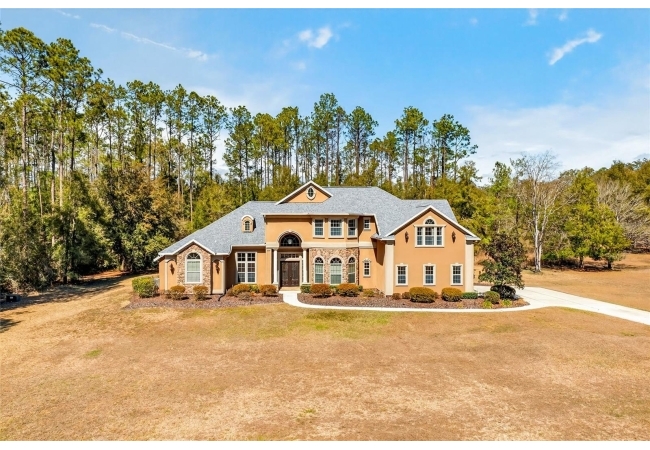 One or more photo(s) has been virtually staged. Beyond the private gates of Santa Fe Forest, tucked away on five serene acres just outside Alachua, this custom-built estate is a masterclass in architectural presence and refined privacy.