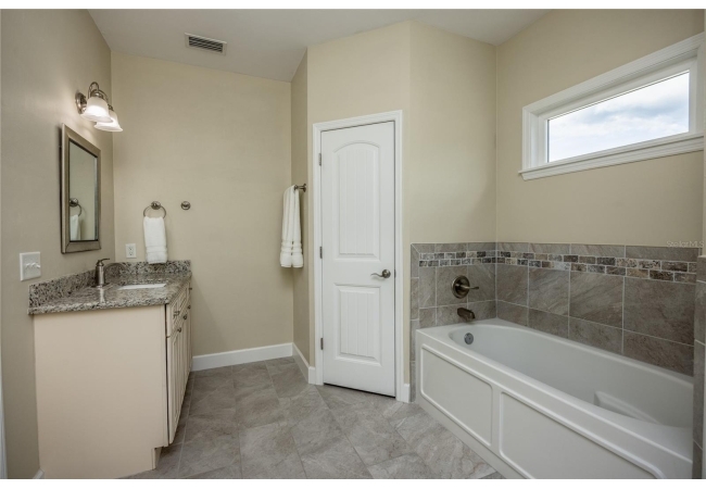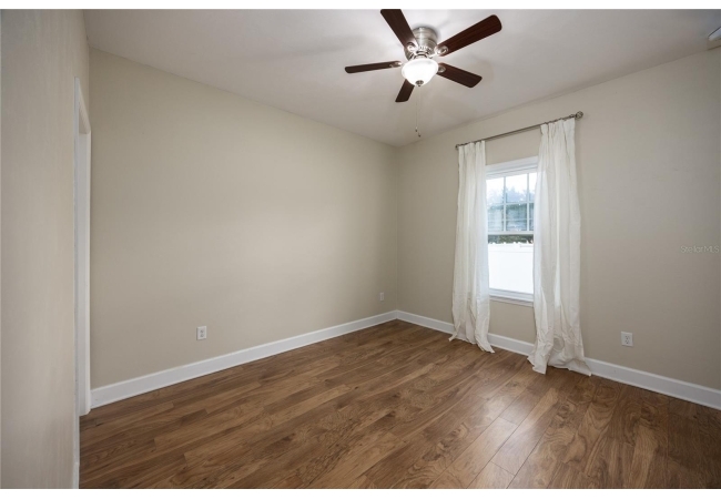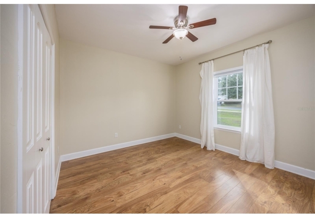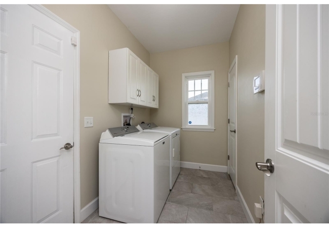 Other features include luxury vinyl plank flooring in the main living areas, ceramic tile in the kitchen and bathrooms, an interior freshly painted this month, and a laundry room with built-in cabinets, storage closet, and washer and dryer included.