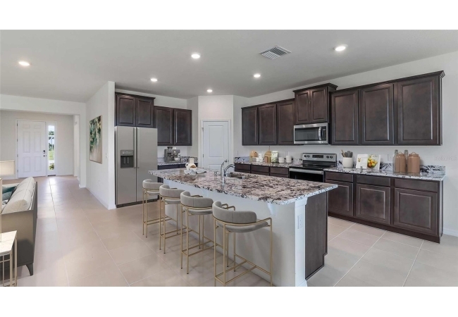One or more photo(s) has been virtually staged. Under Construction. This one-story home has a truly open concept plan, featuring a large great room and a well-appointed kitchen with a dining area that flows out to a covered lanai. Bedroom 1 with an ensuite bath is located at the back of the home for privacy. Three additional spacious bedrooms, one with its own Bathroom 1 and walk-in closet, share the front part of the home, as well as a spacious laundry room with an extra storage closet. This home comes with an installed stainless-steel dishwasher, range, and microwave. Pictures, photographs, colors, features, and sizes are for illustration purposes only and will vary from the homes as built. Home and community information including pricing, included features, terms, availability, and amenities are subject to change and prior sale at any time without notice or obligation. CRC057592.