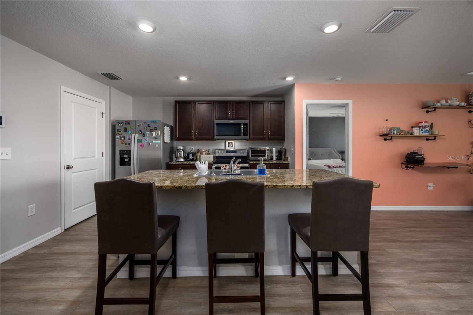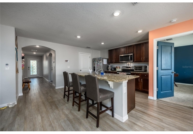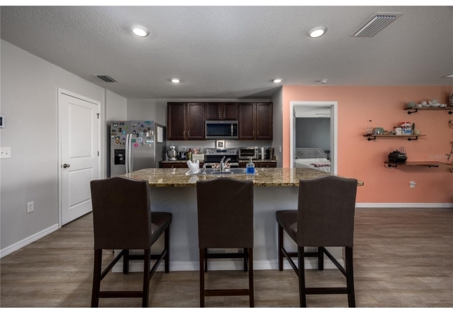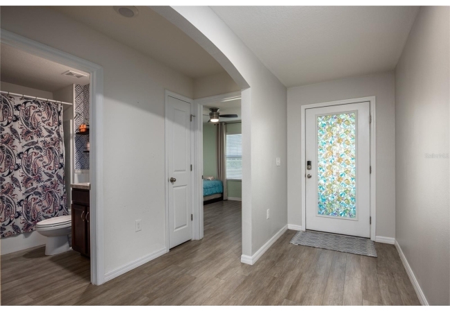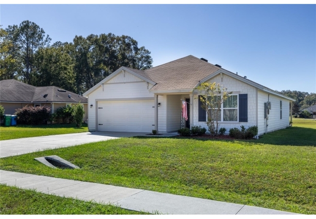 Must see 2021 home in highly sought after Bailey Estates of High Springs. This well laid out 3 bedroom, 2 bath home built in 2021 has the illusion of additional yard space as it back up to one of the green space areas. The entry way welcomes you into the hallway with the guest bedrooms & bathroom. The impression of more square footage than just the 1,615 the Property Appraiser states is present when you enter the open layout. This light & bright home centers on the spacious kitchen with breakfast bar & area for kitchen table. Sit around the island that has Granite counter tops speckled with marble matching the cabinets & tying in the wood accent on the living room wall. Wake up in the Owner’s suite looking out at the deer in the morning sun. Owner’s Suite is off the kitchen with tray ceilings & lavish bathroom with dual sinks, linen closet & toilet closet. Major bonus is the solar panels which keep the energy bills low. 2 car garage leads you into the house at the laundry area then into the kitchen. Located just minutes to High Springs Community School. Enjoy High Springs amenities such as shopping, eating, brewery & a short drive to the beautiful springs & rivers of North Central Florida.