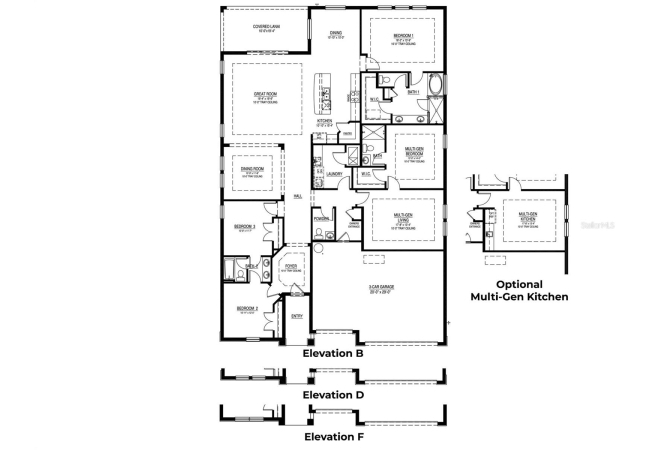 One or more photo(s) has been virtually staged. Under Construction. This one-story home features a large great room with a formal dining room and a well-appointed kitchen with a dinette, all of which overlook a spacious covered lanai that is perfect for extending entertaining space outdoors. This single-story plan features two bedrooms that share a jack-and-jill full bathroom and which are located at the front of the home. The multi-gen living space is located beyond the powder bath and laundry room. Bedroom 1 with an ensuite bath, is located on the back of the home for privacy, offering beautiful views of the backyard. This home includes a stainless-steel range, microwave, and dishwasher. Pictures, photographs, colors, features, and sizes are for illustration purposes only and will vary from the homes as built. Home and community information including pricing, included features, terms, availability and amenities are subject to change and prior sale at any time without notice or obligation. CRC057592.