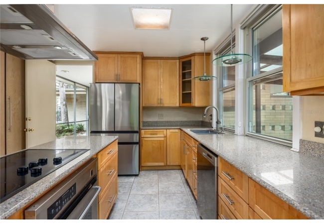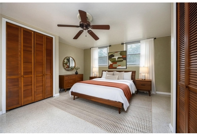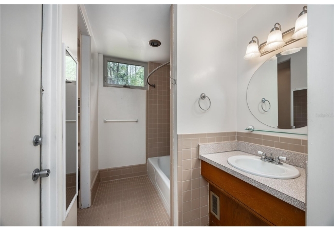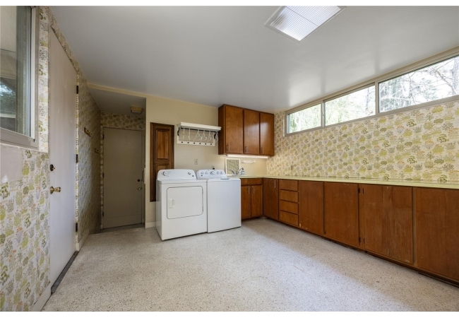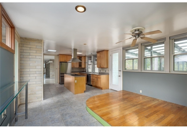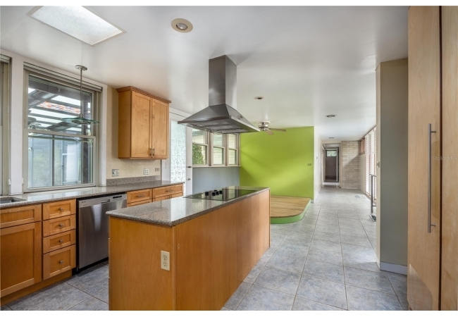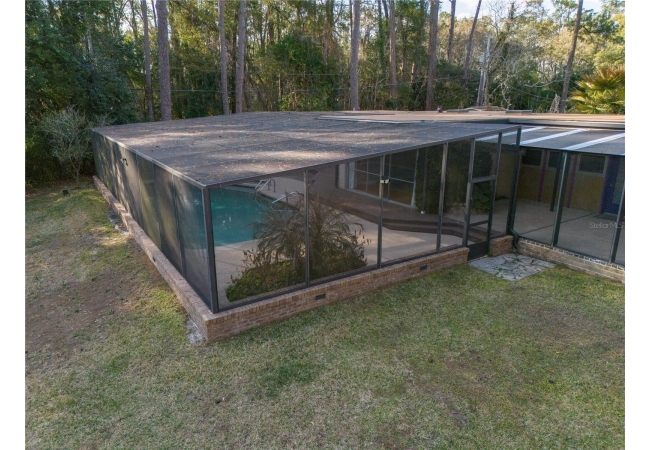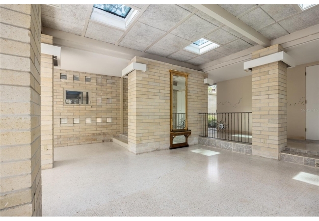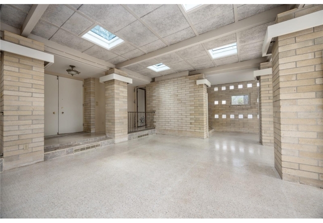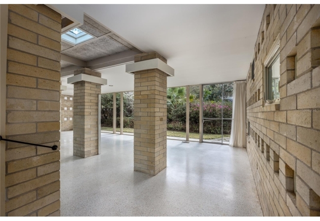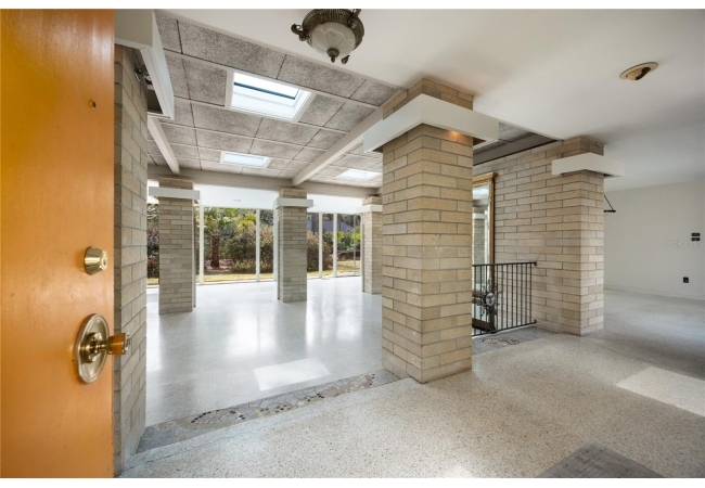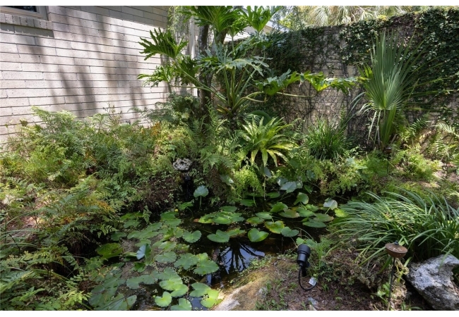 Some photos have been virtually staged. A rare, single-story Mid-Century Modern pool home on an acre in NW Gainesville's Masonwood neighborhood. Built in 1964 and designed by Alfred Browning Parker, known as the Frank Lloyd Wright of Miami, this home seamlessly combines indoor and outdoor living. Modern design combines with a mix of natural materials including Ocala block, concrete, terrazzo and glass. The large open spaces are full of natural light and have views of the private courtyards and gardens, providing shade, privacy and a connection to the outdoors. The gated entry courtyard has a waterfall flowing into the koi pond and a covered walkway to the large double entry doors. Walls of glass, skylights and custom light fixtures fill the living space with light. The large multi-use living room incorporates space for dining, music, an office and conversation areas, all with views of the garden. To the left of the entry are two bedrooms and a guest bathroom. The first bedroom has an entire wall of sliding glass doors that opens to a second private courtyard. The guest bathroom has a step down Roman tub and plenty of storage with an adjacent linen closet. The second bedroom is currently configured as a den with a closet, bookshelf, fireplace and large sliding glass door. The front wall of the Living Room has updated double paned windows, like the rest of the home. It also has glass blocks that create a very unique pattern of light in the Ocala Block wall. To the right of the foyer is a casual dining area with sliding glass doors to the rear covered porch. Around the corner is the updated Kitchen with a built-in pantry, center island and solid wood 42 inch cabinetry, Quartz countertops and stainless steel appliances. There are two large windows overlooking the rear porch and custom lighting throughout. The home is well loved and maintained. New HVAC 2024. Water Heater 2025. Roof 2024. Across from the Kitchen is the laundry room which may be the biggest in town. It comes with a washer and dryer and lots of additional cabinets for storage. Off the laundry room is a three car, rear entry garage. Each bay has a separate door and the oversized space includes a workbench and storage. Open to the kitchen is the family room with many windows and access to the rear porch and a courtyard off the laundry room/garage. The rear porch is covered, screened and provides outdoor entertaining space. The pool and spa are saltwater. Continuing around the corner is the Primary Suite with walk-in closet, en suite bathroom and large bedroom with a wall of sliding glass doors overlooking the deck and pool. The Primary Bathroom has double sink vanity, updated fixtures and large shower. Past the Primary Suite is a large 4th Bedroom or second en suite Master Bedroom. This space has a large bedroom, office/nursery or flex space with sliding glass doors to the pool area and spa, a private exterior entrance and the en suite bathroom with water closet, tub/shower and solid wood vanity. Masonwood is located 1 mile north of the University of Florida. It is biking distance to Westside Park, Loblolly Woods trails and boardwalks and the 300 Tennis Club. Perfect for quiet walks, it is not on a busy through street. Less than a 5 minute drive to Millhopper Publix, Fresh Market, shops and area restaurants. The home sits on a 1 acre, low maintenance lot. A shed provides additional storage. Zoned for Littlewood Elementary, Westwood Middle and Gainesville High Schools. No HOA.