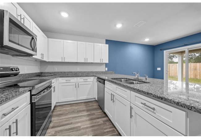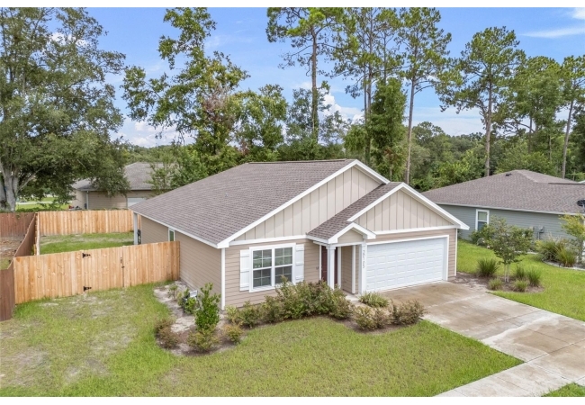 Discover the perfect blend of comfort, style, and convenience in this beautifully maintained 4-bedroom, 2-bathroom home. Nestled in a charming, walkable neighborhood, this home welcomes you with an open-concept layout that effortlessly connects the living, dining, and kitchen areas—creating an inviting space for gatherings and everyday living. The kitchen is a true showstopper, featuring elegant cabinetry, gleaming granite countertops, stainless steel appliances, and a large peninsula that offers both extra workspace and casual seating. The spacious primary suite is a peaceful retreat with a private bath, dual vanity sinks, and a generous walk-in closet. Step outside through sliding glass doors to a covered patio—perfect for relaxing evenings, weekend barbecues, or entertaining friends. The backyard is fully enclosed with a brand-new 6-foot board-on-board privacy fence and includes a storage shed for added convenience. Additional highlights include a two-car garage, a beautifully maintained yard, and a location that truly stands out—zoned for top-rated “A” schools and just minutes from local springs, rivers, and outdoor recreation. Enjoy easy access to Alachua, Gainesville, and Lake City, making this the ideal home base for both work and play. Don’t miss your chance to own this exceptional home that perfectly balances modern comfort and small-town charm—schedule your private showing today!