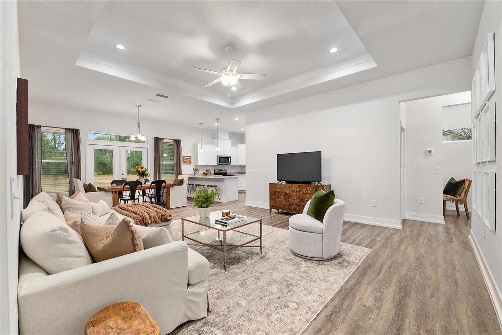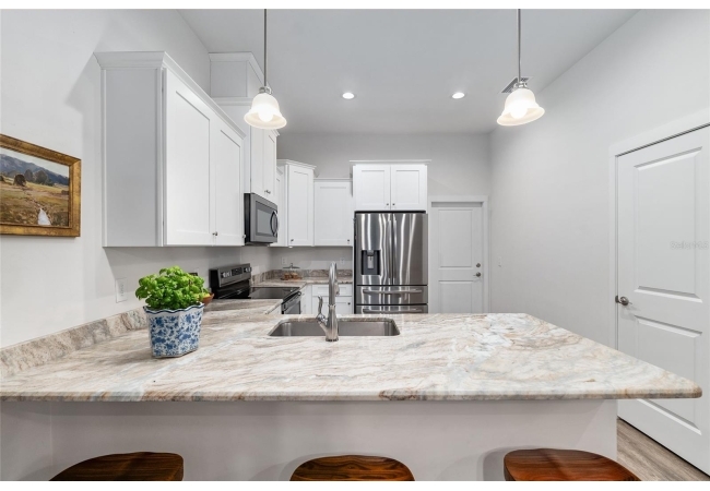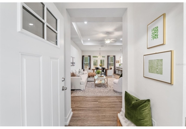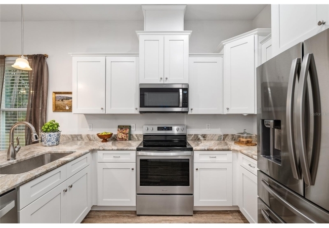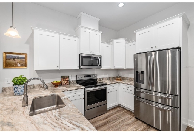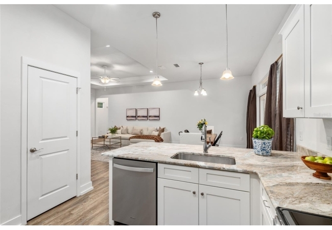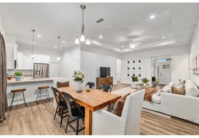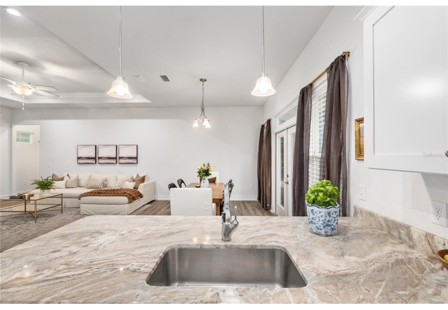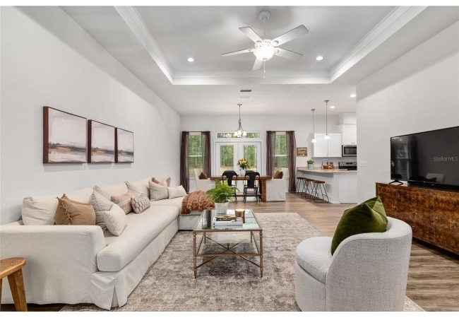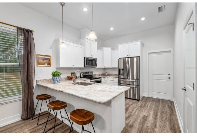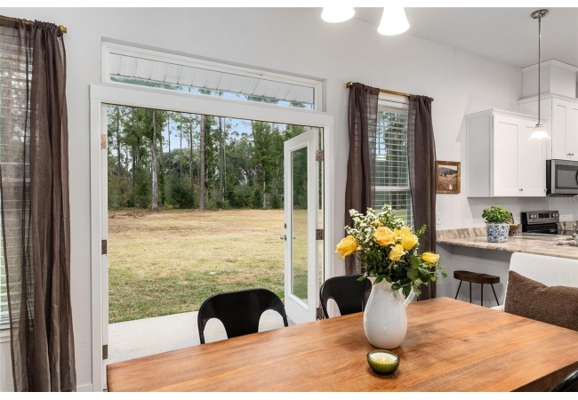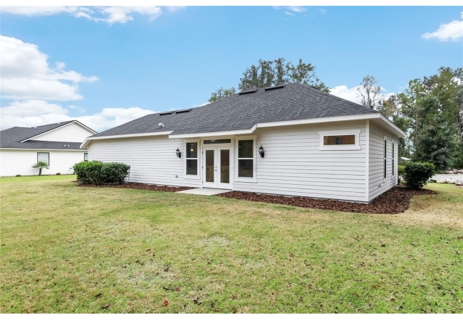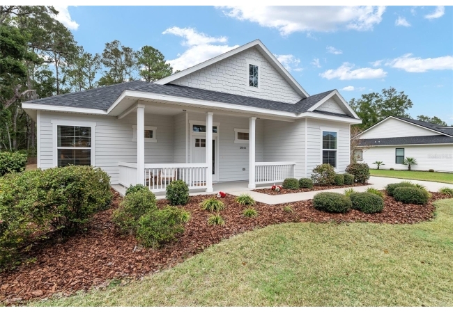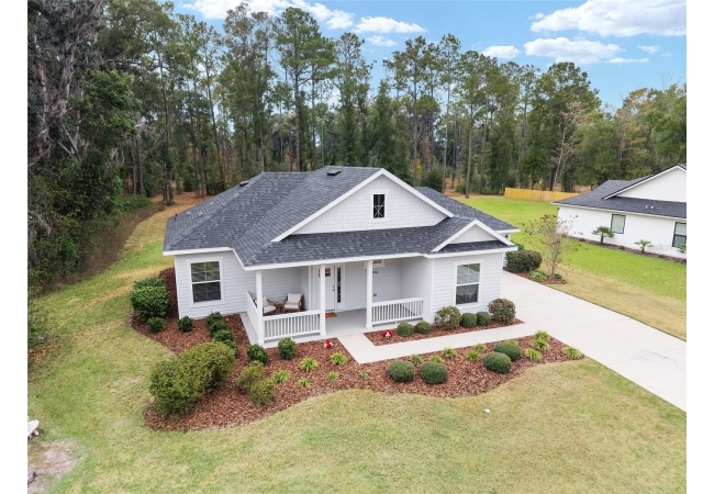 Convenience, location, and quality combine in this 2020-built home by Duration Builders, Inc., set on an oversized lot within the gated, craftsman-style front-porch community of Peyton’s Preserve in High Springs. Just 2 miles off I-75—and approximately 15 minutes to NW 39th Ave. (UF Health & Santa Fe College), 18 minutes to Newberry Rd. (Oaks Mall & North Florida Regional Hospital), and 21 minutes to Archer Rd. (Shands, UF Health, VA Hospital, Butler Plaza & Celebration Pointe)—this 3BR/2BA “1450” model delivers an airy open layout framed by 10' and 11' ceilings with crown molding, luxury vinyl plank flooring, and 18" tile. The granite-topped kitchen with stainless steel appliances flows to the living and dining spaces for easy entertaining, while custom blinds add a polished, move-in-ready finish. The primary suite is generously sized and complemented by two versatile secondary bedrooms; a small built-in office niche creates a quiet spot for work or study. Step out to the open rear patio and enjoy the spacious yard, perfect for relaxing or play. Practical perks include an energy-efficient upgrades, a true two-car garage, and thoughtful storage. Best of all, you’re about three minutes from the new Publix, restaurants, shops, and services—keeping daily errands quick and convenient. A rare blend of gated privacy, commuter access, and quality finishes, this Peyton’s Preserve residence is ideally positioned for work, care, and play across the Gainesville–High Springs corridor. (Times/distances approximate.)