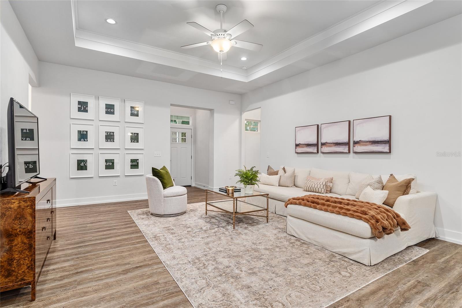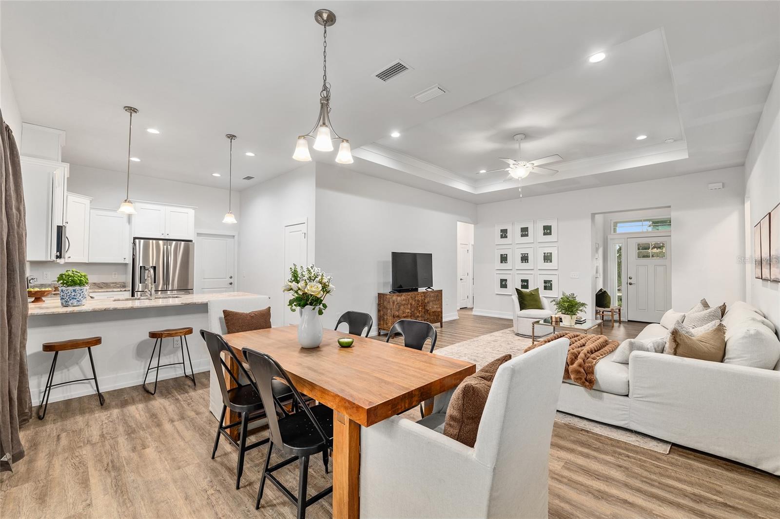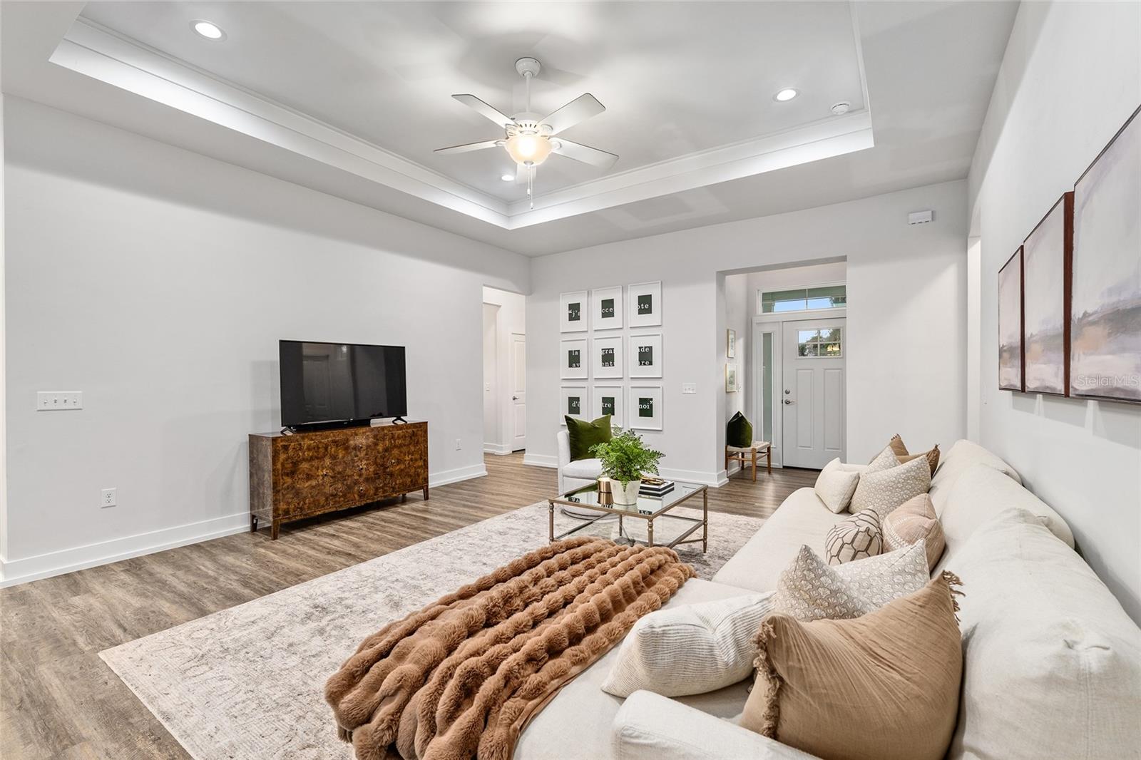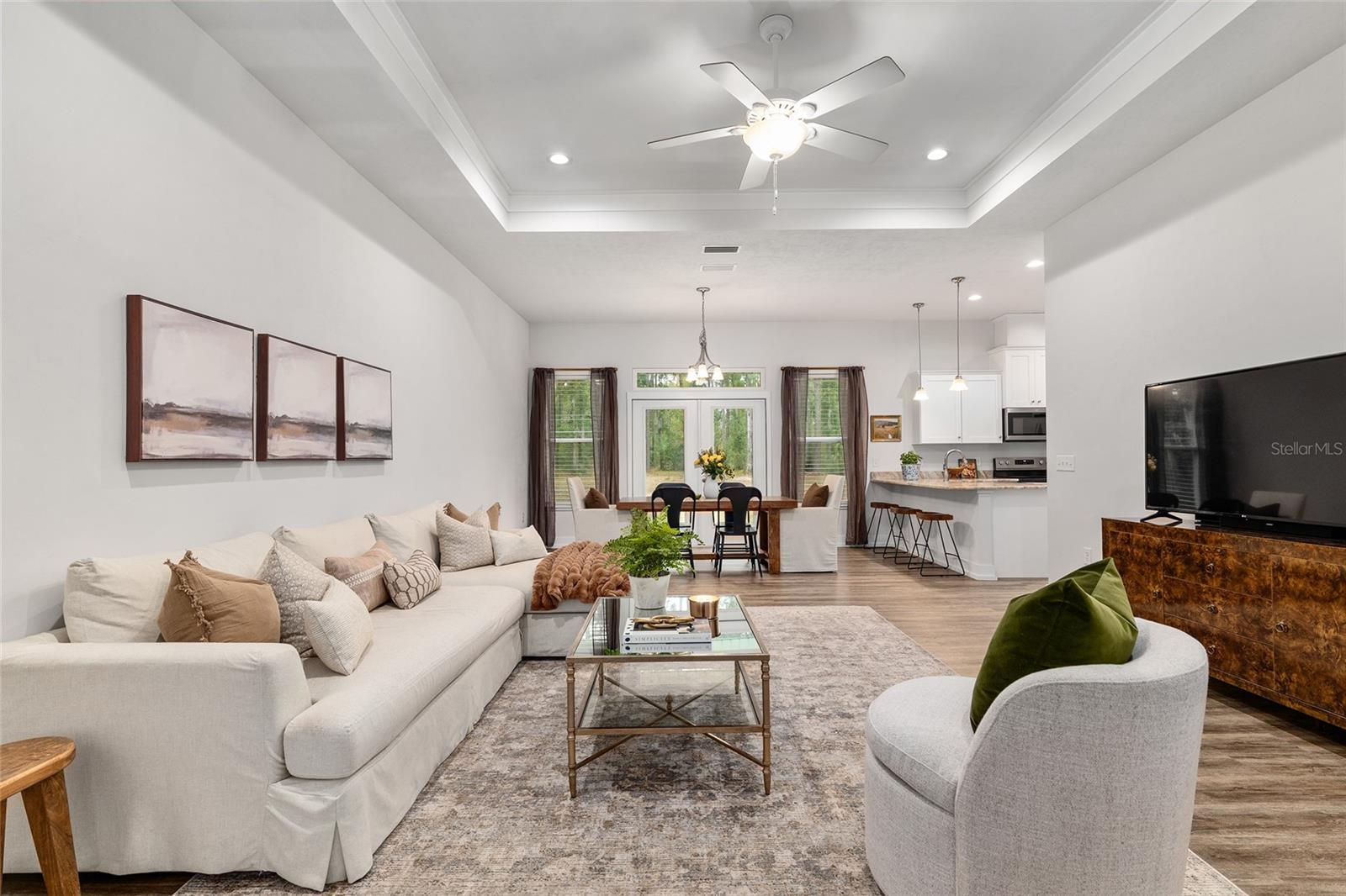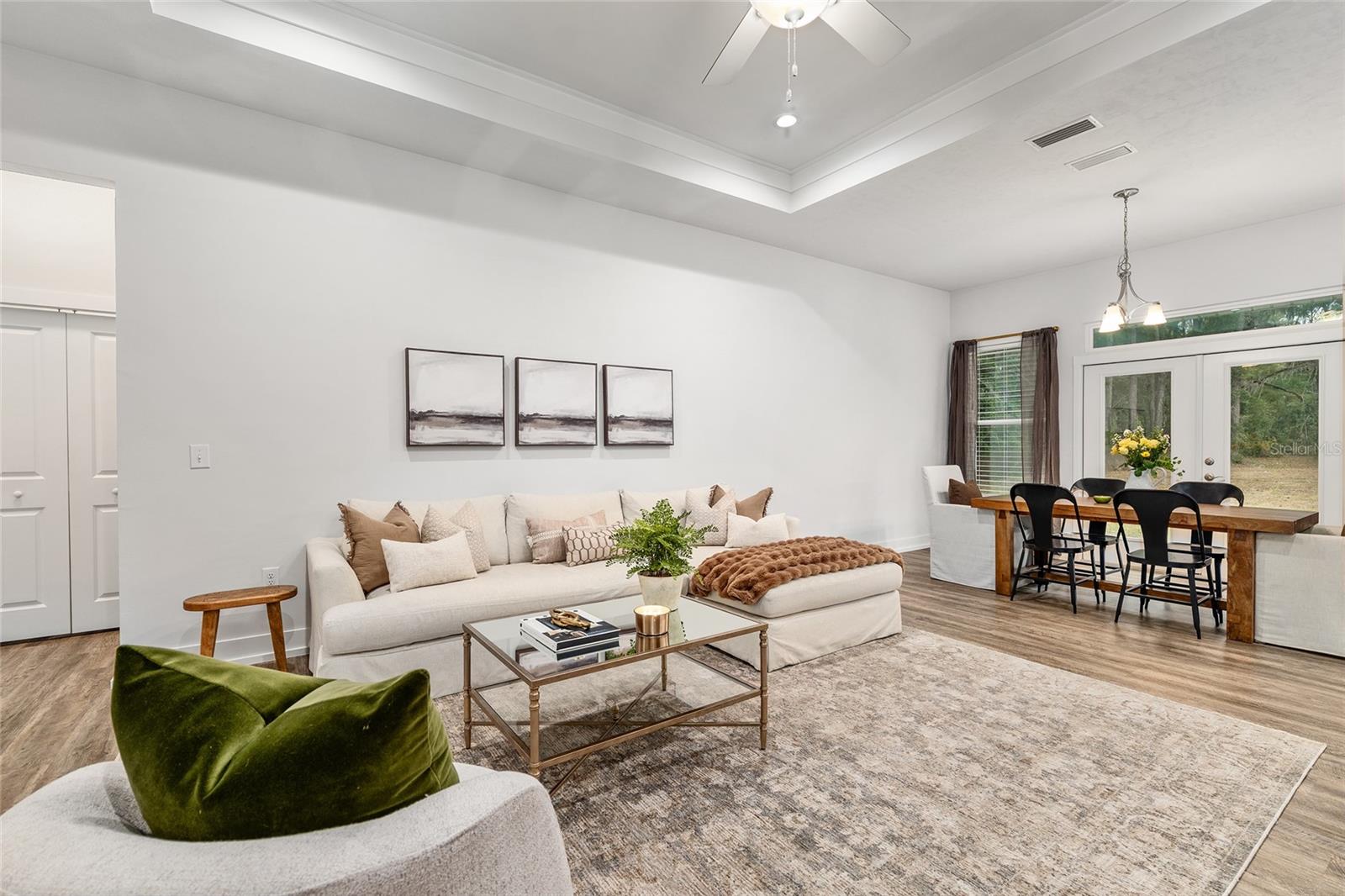 Convenience, location, and quality combine in this 2020-built home by Duration Builders, Inc., set on an oversized lot within the gated, craftsman-style front-porch community of Peyton’s Preserve in High Springs. Just 2 miles off I-75—and approximately 15 minutes to NW 39th Ave. (UF Health & Santa Fe College), 18 minutes to Newberry Rd. (Oaks Mall & North Florida Regional Hospital), and 21 minutes to Archer Rd. (Shands, UF Health, VA Hospital, Butler Plaza & Celebration Pointe)—this 3BR/2BA “1450” model delivers an airy open layout framed by 10' and 11' ceilings with crown molding, luxury vinyl plank flooring, and 18" tile. The granite-topped kitchen with stainless steel appliances flows to the living and dining spaces for easy entertaining, while custom blinds add a polished, move-in-ready finish. The primary suite is generously sized and complemented by two versatile secondary bedrooms; a small built-in office niche creates a quiet spot for work or study. Step out to the open rear patio and enjoy the spacious yard, perfect for relaxing or play. Practical perks include an energy-efficient upgrades, a true two-car garage, and thoughtful storage. Best of all, you’re about three minutes from the new Publix, restaurants, shops, and services—keeping daily errands quick and convenient. A rare blend of gated privacy, commuter access, and quality finishes, this Peyton’s Preserve residence is ideally positioned for work, care, and play across the Gainesville–High Springs corridor. (Times/distances approximate.)
