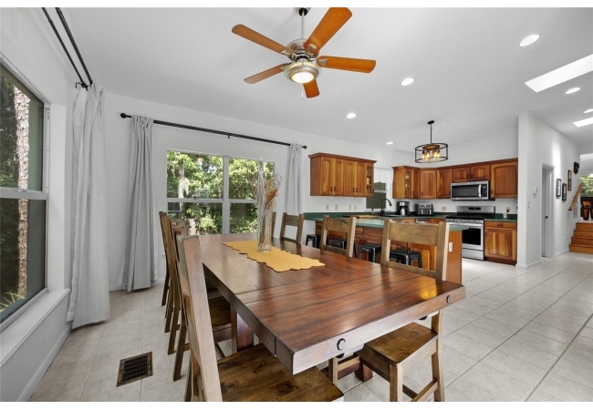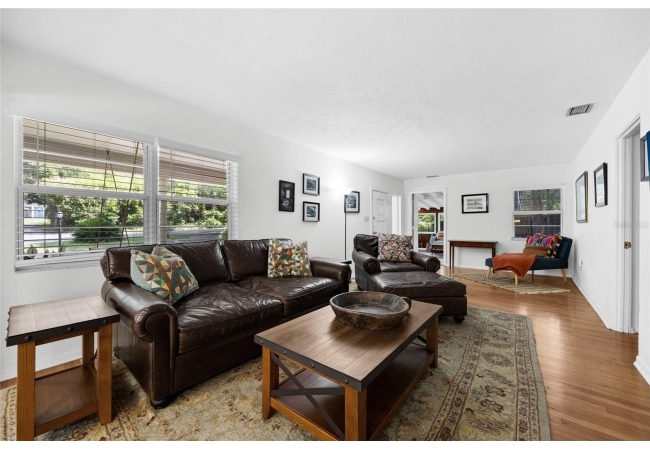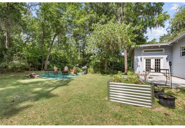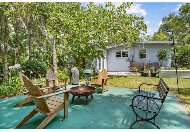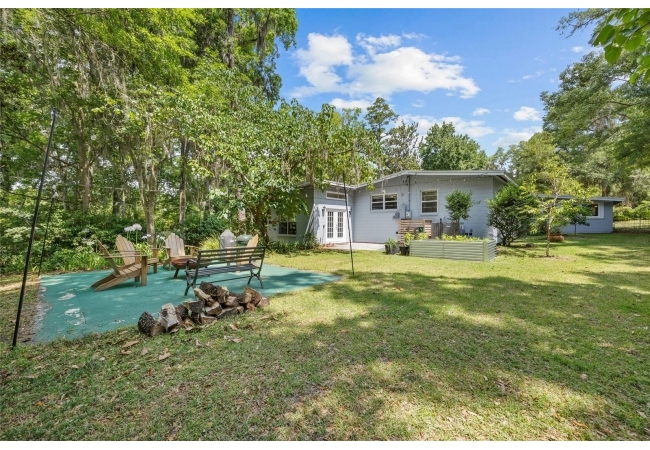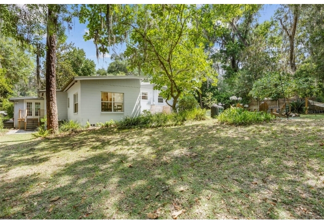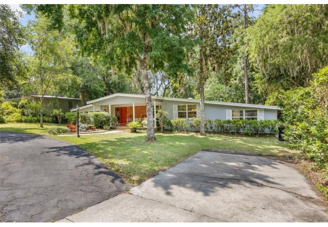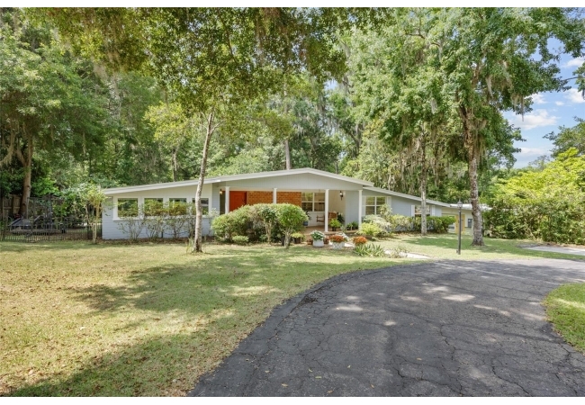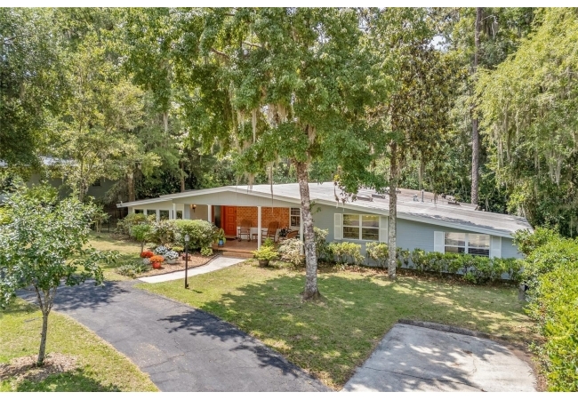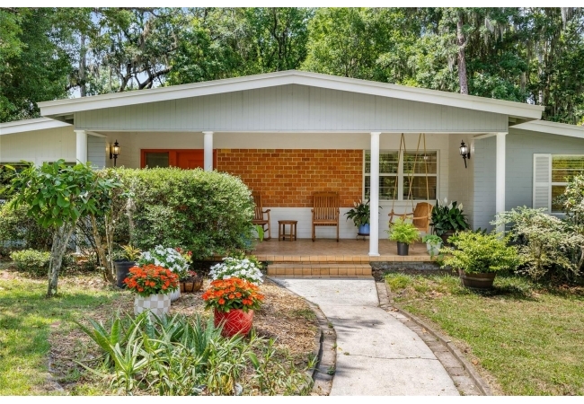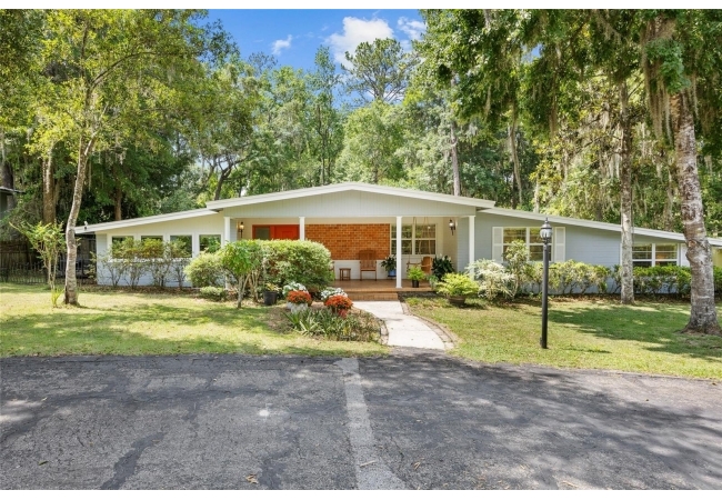 Located one mile north of the Ben Hill Griffin Stadium and the University of Florida, this Florida Park gem sits on .36 acres on a quiet street in the heart of the city. A covered front porch with cracked tile floors welcomes you. Inside you will find a 4bd/3ba split floor plan, plus a remodeled office, living room, dining room, Florida room, laundry/storage room, and a large eat-in kitchen with a wall of extra built-in cabinetry. The primary bedroom has an ensuite bathroom and French doors to a small deck. There also are French doors off the kitchen that lead you to your beautiful backyard oasis. Outside you will find mature landscaping, two patios, a gas hookup for your grill, and a storage shed for your lawn equipment. Recent improvements include: new roof in 2021, new water heater in 2023, re-pipe in 2023, new AC in 2023, new windows in 2013 & 2023, insulation panels added to the ceiling in the Florida Room in 2023, insulation added to the attic in 2025, updated breakers in the electrical panel & a 30 amp RV connection added in 2023. There is a generator hookup in the back of the home to service the major appliances in case of a power outage, and a termite contract with Florida Pest for peace of mind. This home is in excellent condition and is ready for her new owner!