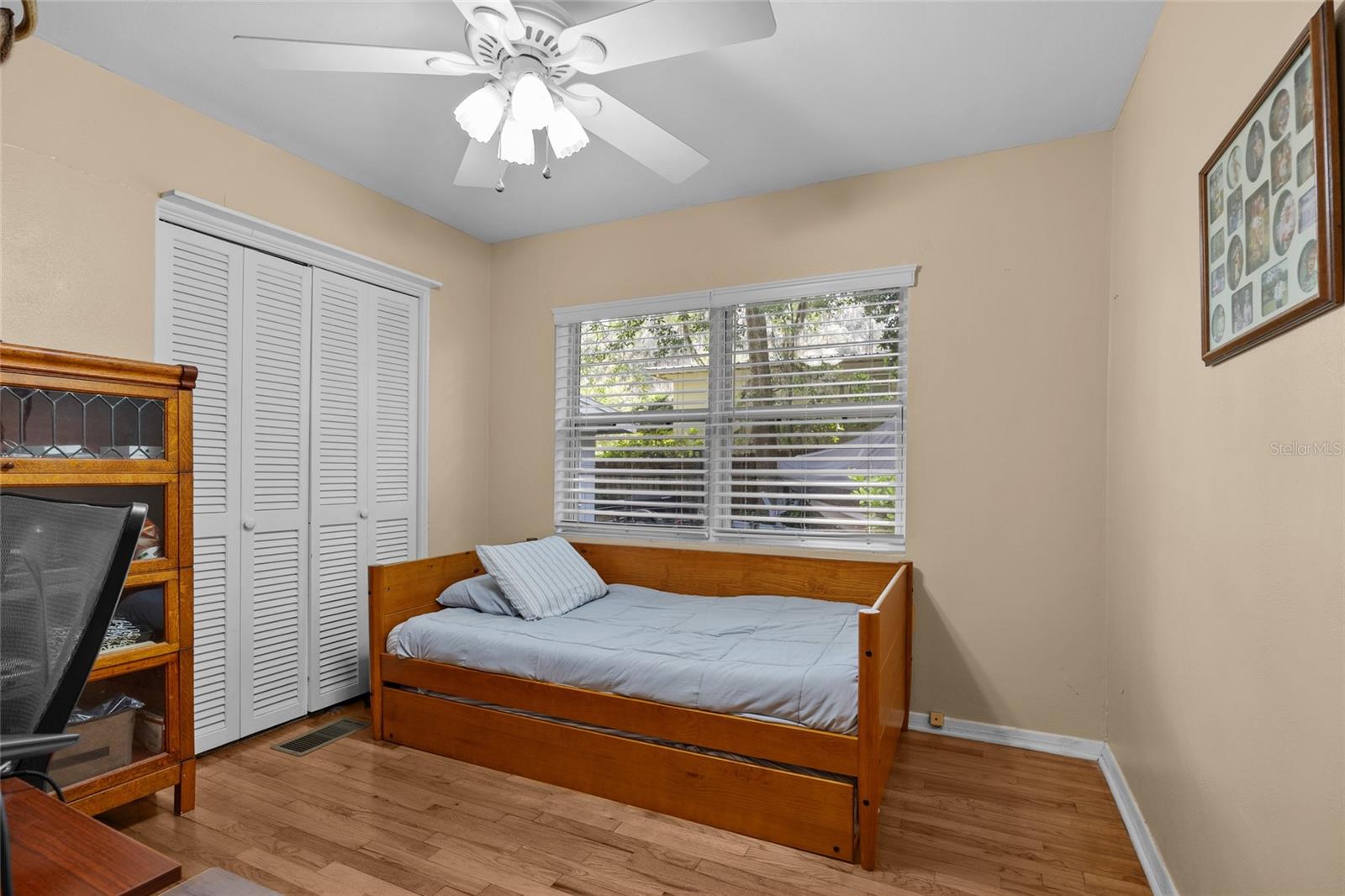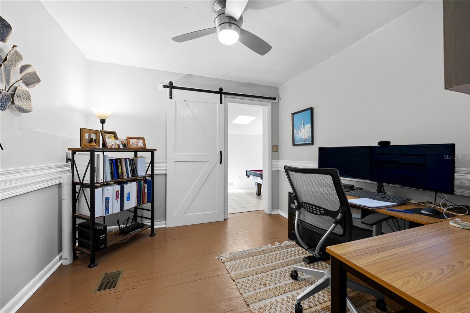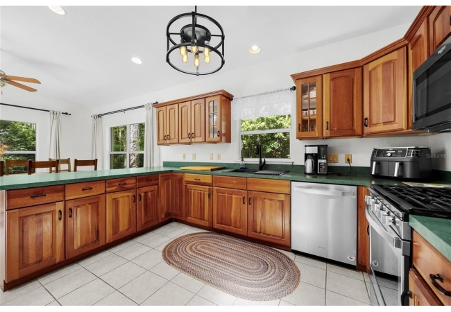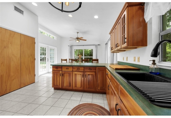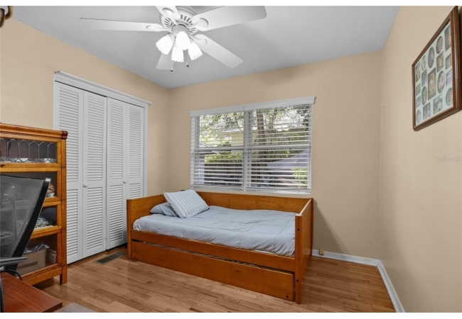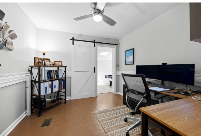 Located one mile north of the Ben Hill Griffin Stadium and the University of Florida, this Florida Park gem sits on .36 acres on a quiet street in the heart of the city. A covered front porch with cracked tile floors welcomes you. Inside you will find a 4bd/3ba split floor plan, plus a remodeled office, living room, dining room, Florida room, laundry/storage room, and a large eat-in kitchen with a wall of extra built-in cabinetry. The primary bedroom has an ensuite bathroom and French doors to a small deck. There also are French doors off the kitchen that lead you to your beautiful backyard oasis. Outside you will find mature landscaping, two patios, a gas hookup for your grill, and a storage shed for your lawn equipment. Recent improvements include: new roof in 2021, new water heater in 2023, re-pipe in 2023, new AC in 2023, new windows in 2013 & 2023, insulation panels added to the ceiling in the Florida Room in 2023, insulation added to the attic in 2025, updated breakers in the electrical panel & a 30 amp RV connection added in 2023. There is a generator hookup in the back of the home to service the major appliances in case of a power outage, and a termite contract with Florida Pest for peace of mind. This home is in excellent condition and is ready for her new owner!