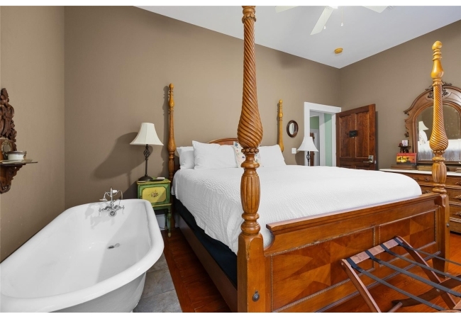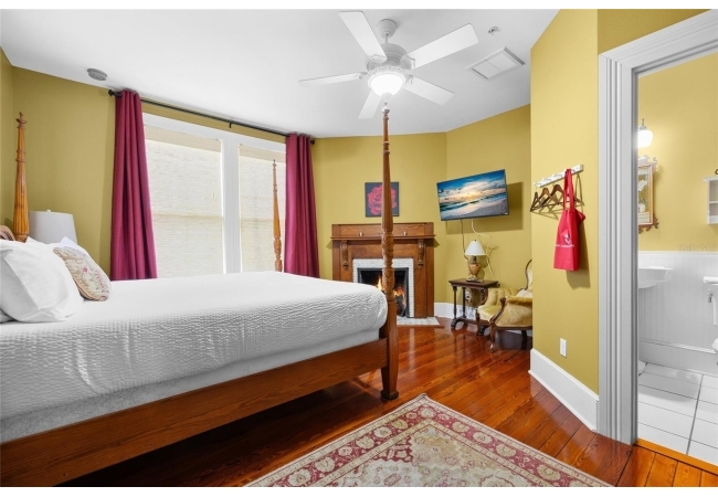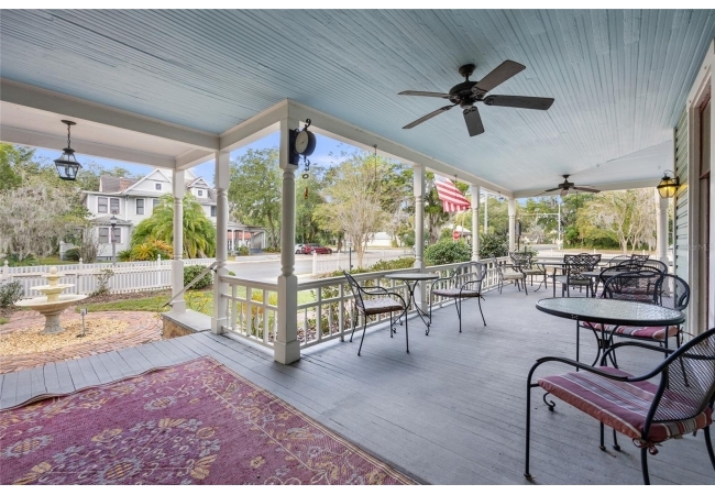 The inn spans over 4,500 square feet and is configured with 8 guest suites, 8.5 bathrooms, and 6 fireplaces. A 1,000 square foot wraparound porch anchors the guest experience, complemented by interior common areas including a parlor, dining room, chef’s kitchen, and shared workspace. Two main-level suites, one with a private living area, support an owner-operator model. A detached cottage with its own entrance provides additional owner or premium guest accommodations.