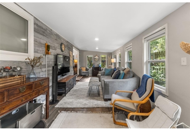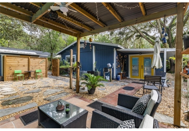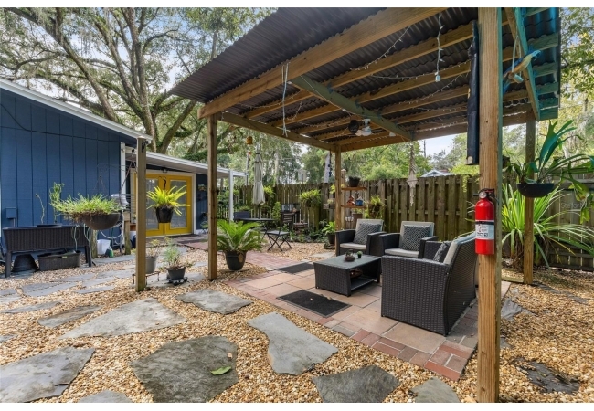 In the back, the detached ADU (a converted shed) adds even more flexibility, featuring a cozy living space and full bathroom, ideal for visitors or as an additional rental.
