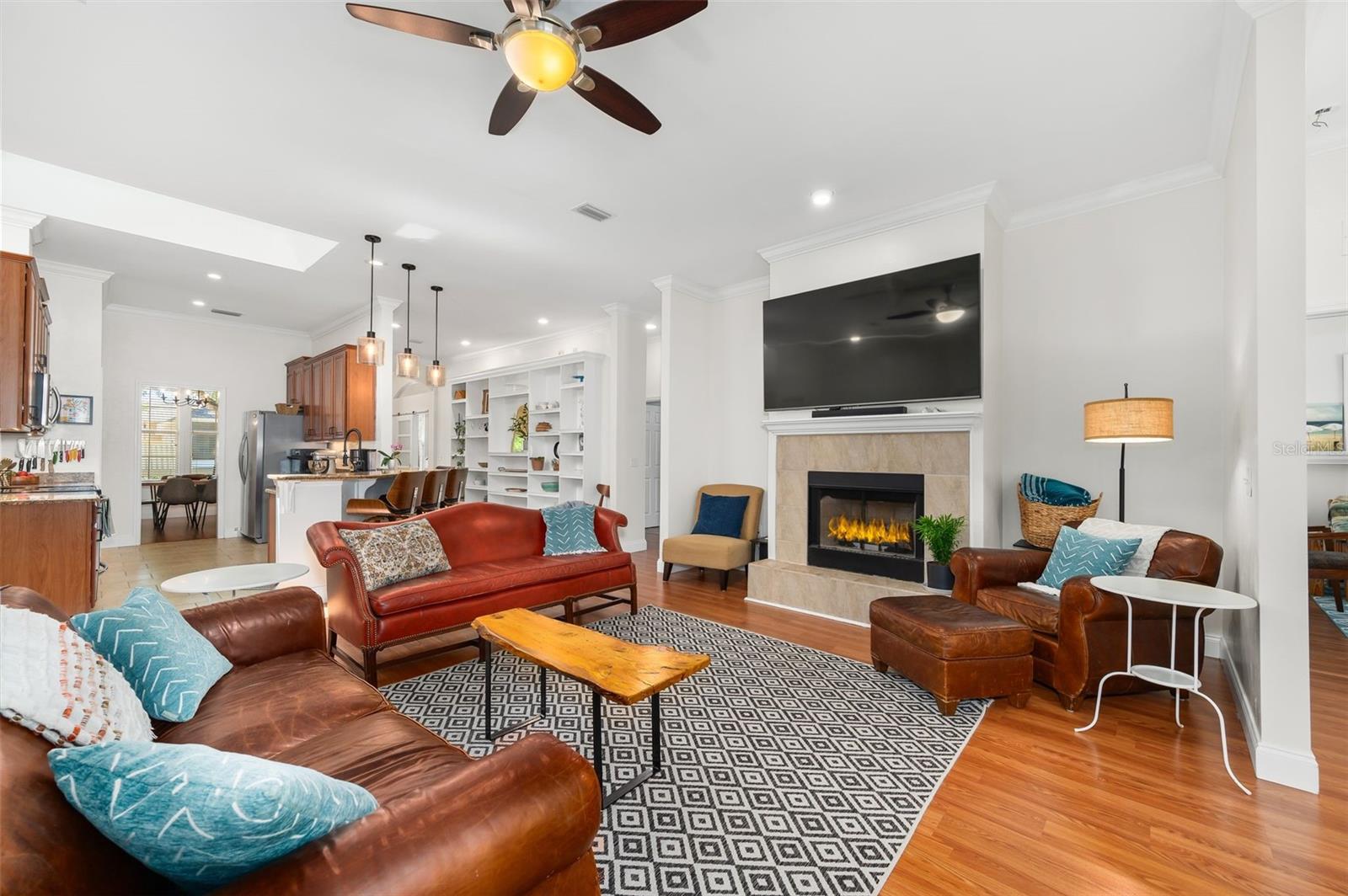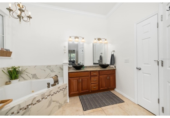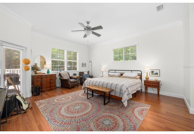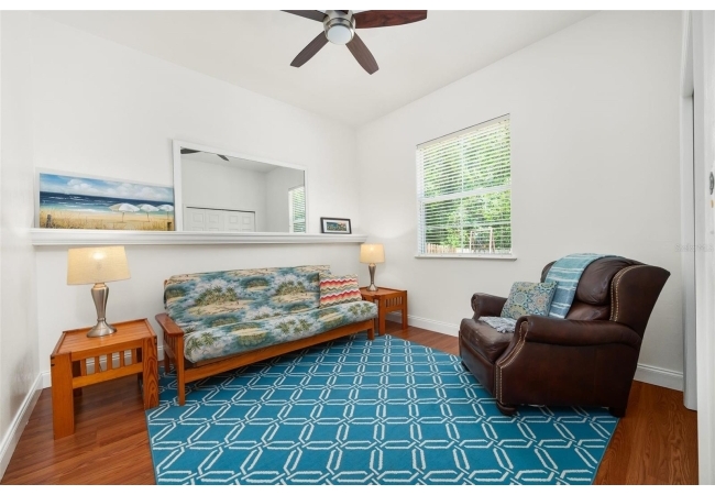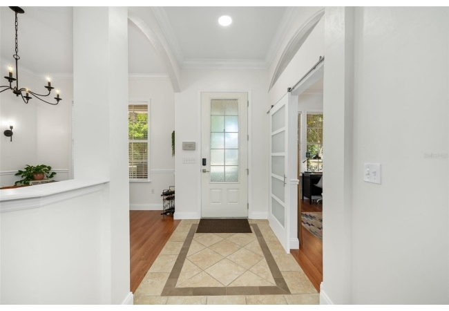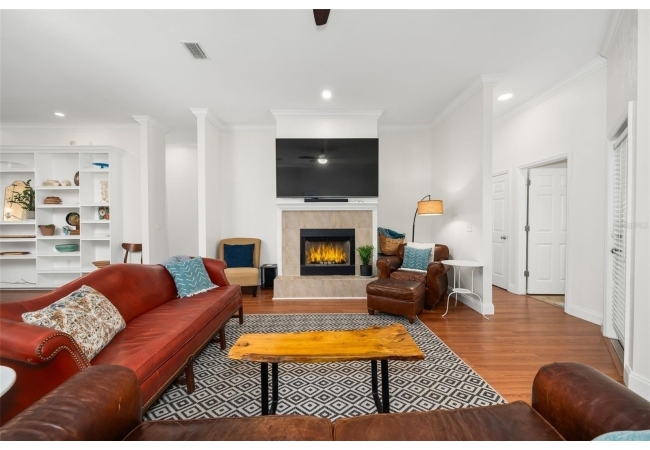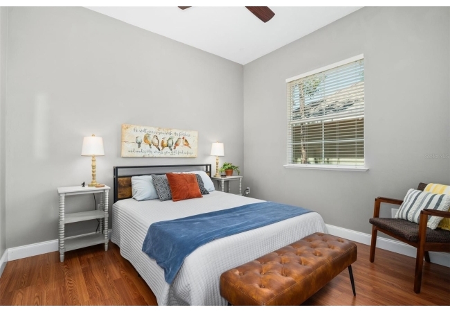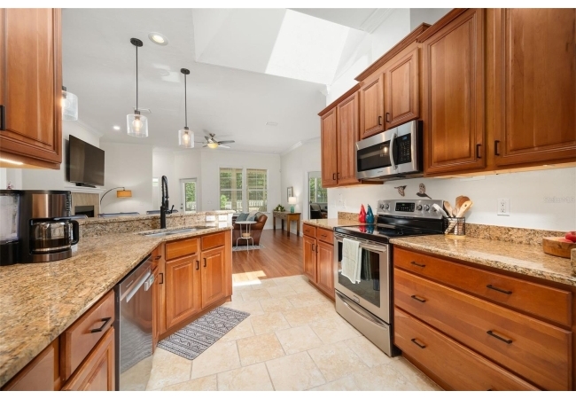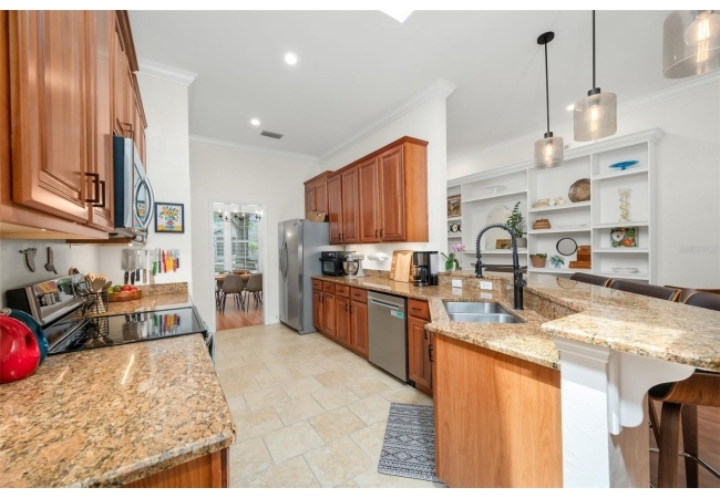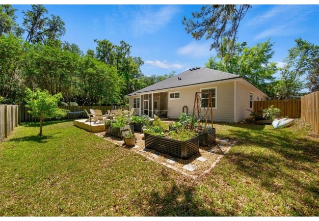 Built with energy efficiency in mind, this 4BR/3BA home offers a 3-way split floor plan—ideal for a potential in-law or private guest space—and boasts 2,351 sq ft. You'll feel the welcoming layout the minute you walk into the foyer, passing the bonus office space and formal dining as you moving into your living room. The grand kitchen overlooks the living space offering stainless steel appliances, granite countertops and beautiful cabinetry. The primary suite offers great space, as well as a spa-like bath with dual vanities, jetted tub, and multi-mode shower. Additional features include 10’ ceilings, gas fireplace, updated flooring, skylight, 2-car garage, and ample attic storage. Stepping out into your screened lanai, you will enjoy a beautifully added deck area, fully fenced yard with fruit trees, a nice raised garden, and irrigation system.