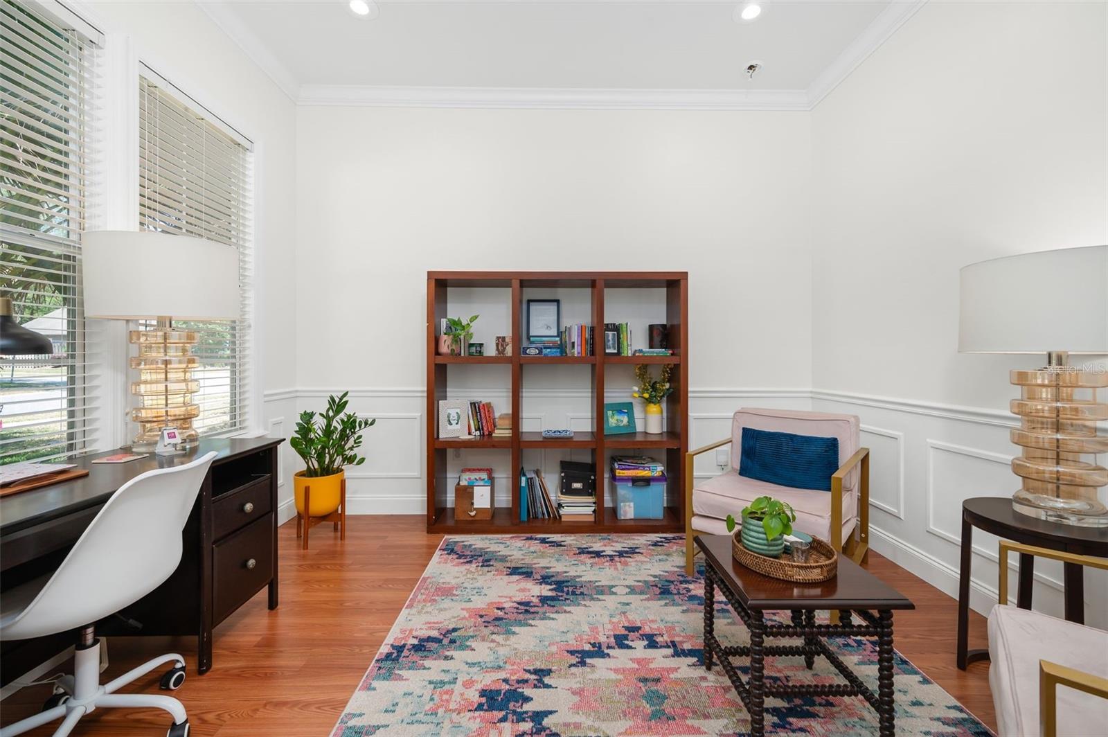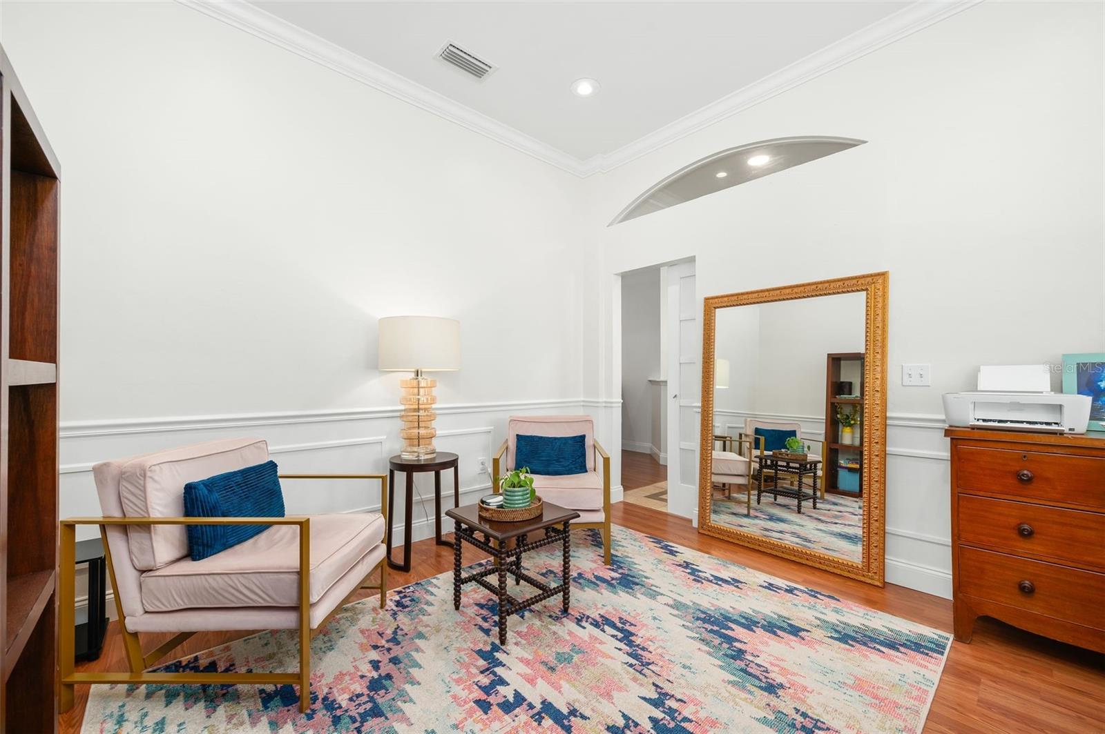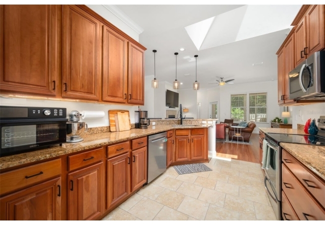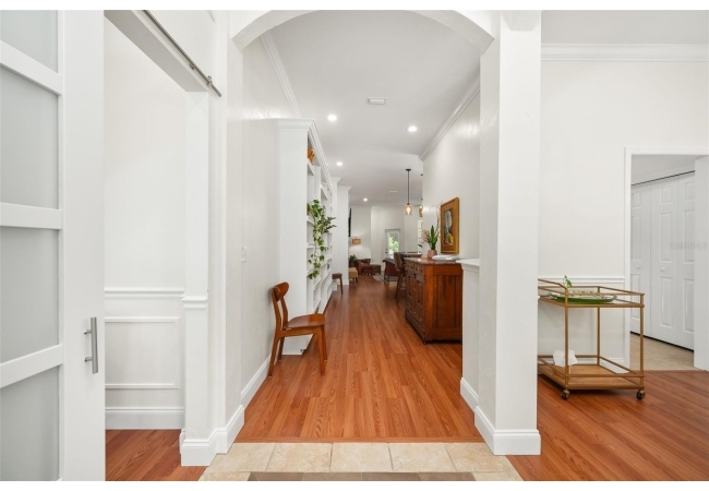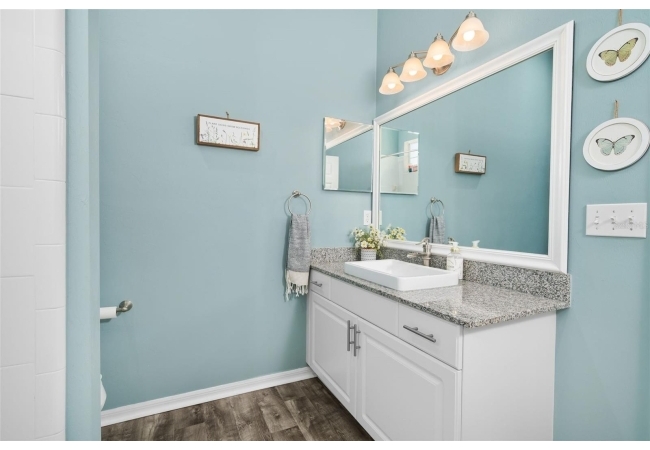Built with energy efficiency in mind, this 4BR/3BA home offers a 3-way split floor plan—ideal for a potential in-law or private guest space—and boasts 2,351 sq ft. You'll feel the welcoming layout the minute you walk into the foyer, passing the bonus office space and formal dining as you moving into your living room. The grand kitchen overlooks the living space offering stainless steel appliances, granite countertops and beautiful cabinetry. The primary suite offers great space, as well as a spa-like bath with dual vanities, jetted tub, and multi-mode shower. Additional features include 10’ ceilings, gas fireplace, updated flooring, skylight, 2-car garage, and ample attic storage. Stepping out into your screened lanai, you will enjoy a beautifully added deck area, fully fenced yard with fruit trees, a nice raised garden, and irrigation system.