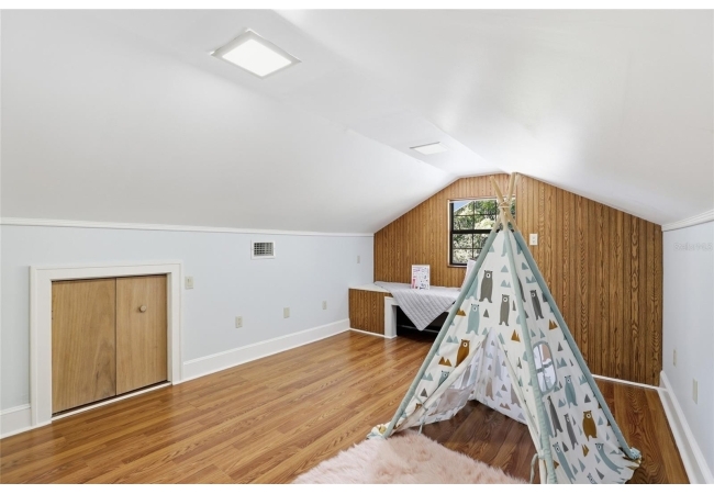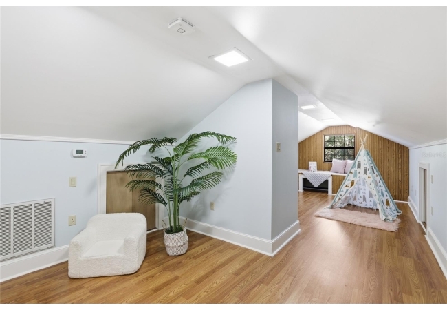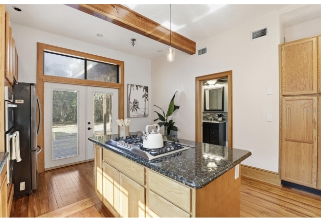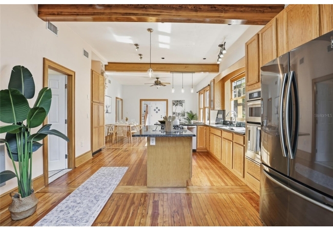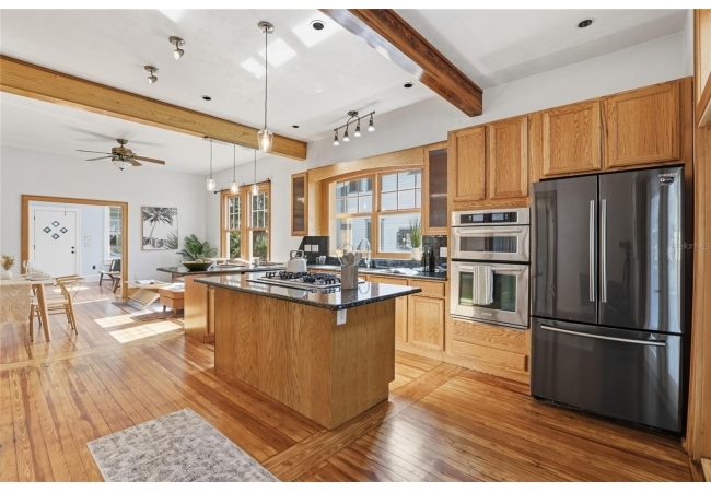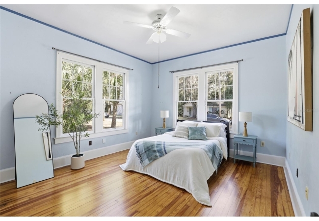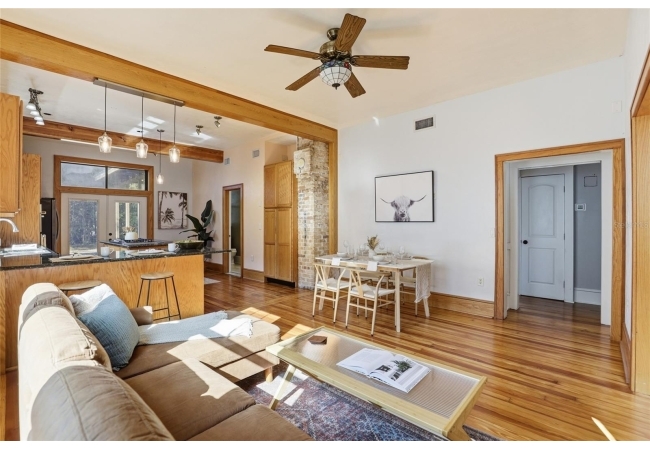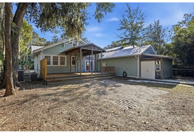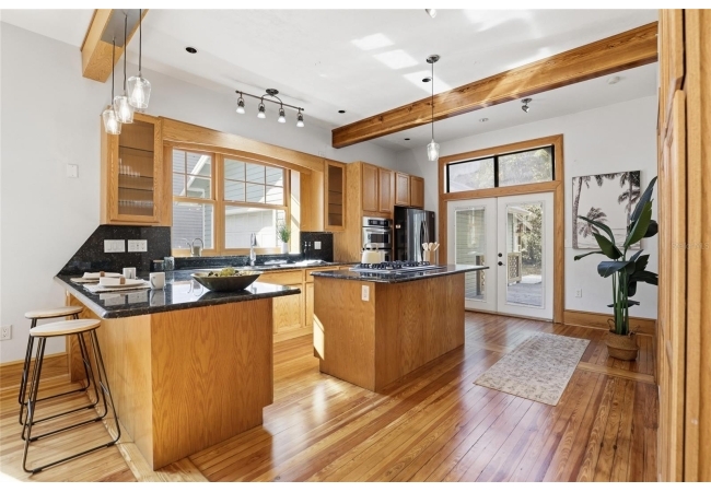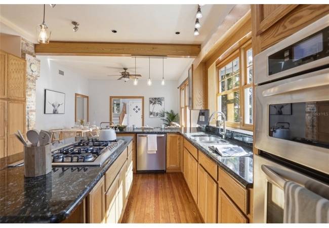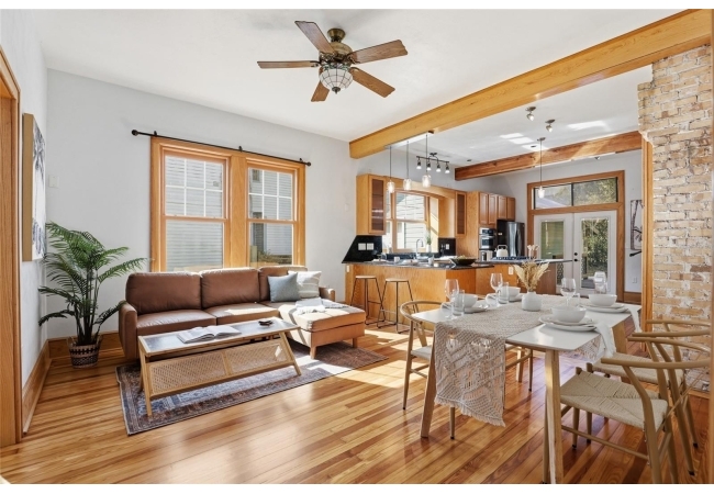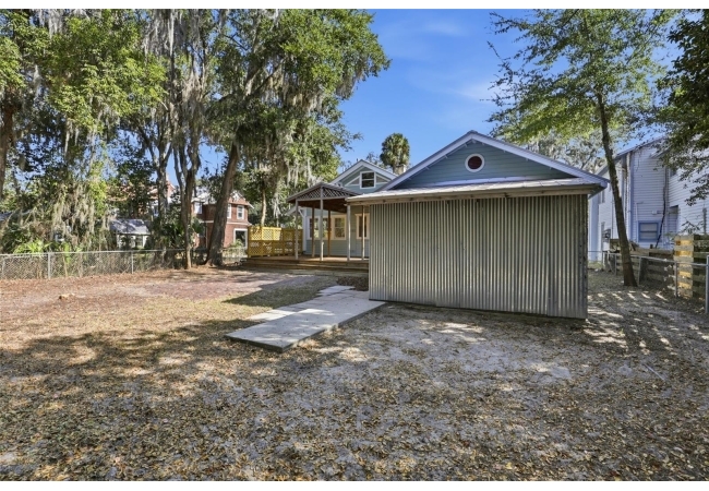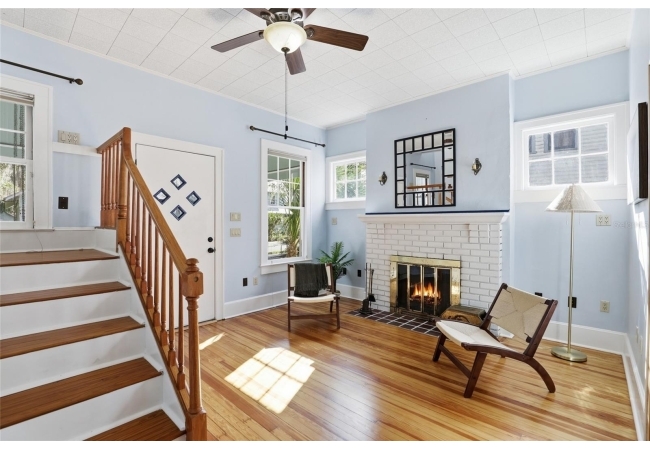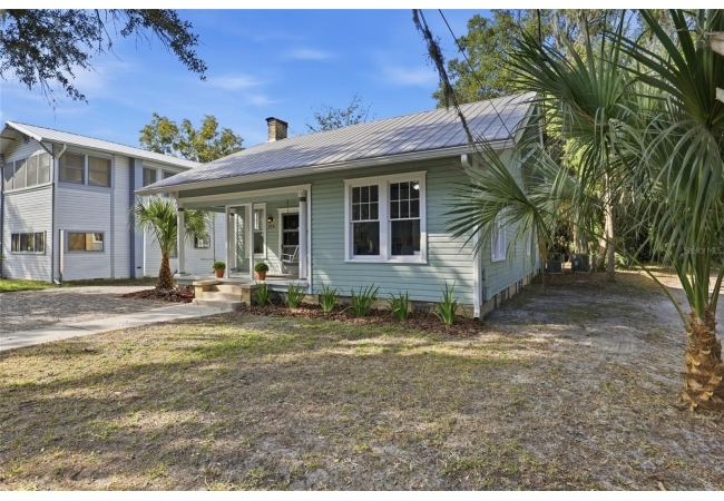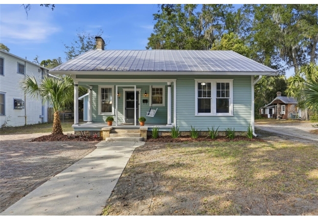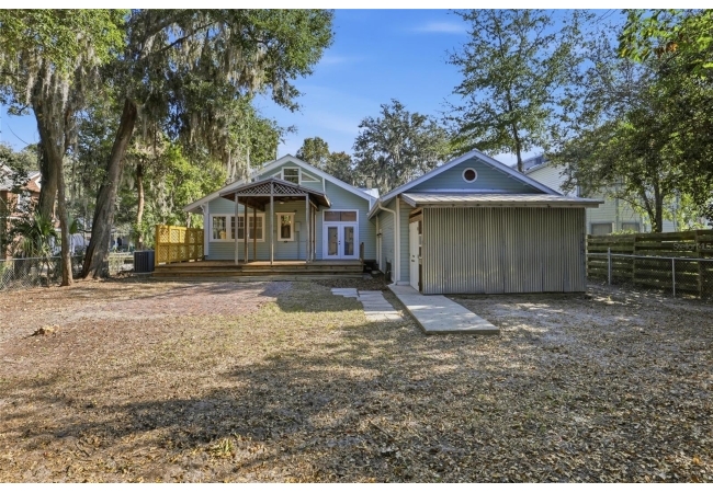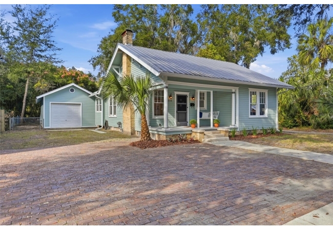 Welcome home to Gainesville's Historic District! This beautiful home was originally built in 1940 and has been lovingly maintained and updated over the years to include 4 bedrooms, 3 full bathrooms, and a semi-detached garage with plumbing and electrical. When you arrive you'll love the charming exterior with a metal roof and brand new exterior paint, as well as historic bricks from Downtown Gainesville that create a rustic parking pad. Step inside to enjoy gorgeous hardwood floors (recently refinished), an original brick fireplace, original (& functional!) windows, tall ceilings, and a view straight through. The foyer opens to a cozy sitting area by the fireplace with an open concept plan that leads into the second living and dining area just off the fully remodeled kitchen. The kitchen features hardwood cabinets, granite countertops, a double built-in oven, a gas cooktop with hidden exhaust fan in the island, and an abundance of storage space. The primary bedroom and bathroom as well as two guest bedrooms and a second guest bathroom are all located on the first floor. A custom staircase leads to the expansive dormer room on the second floor with a full bathroom, perfect for children and teens. Outside you'll appreciate a large wood deck with privacy screen and a spacious yard where you can create your own little oasis. The semi-detached garage has plumbing and electrical and is partially insulated and drywalled; this space could very easily be completed as an additional suite for in-laws or guests. This home has been meticulously rebuilt from the ground up and is rich in history. Call today for more information!