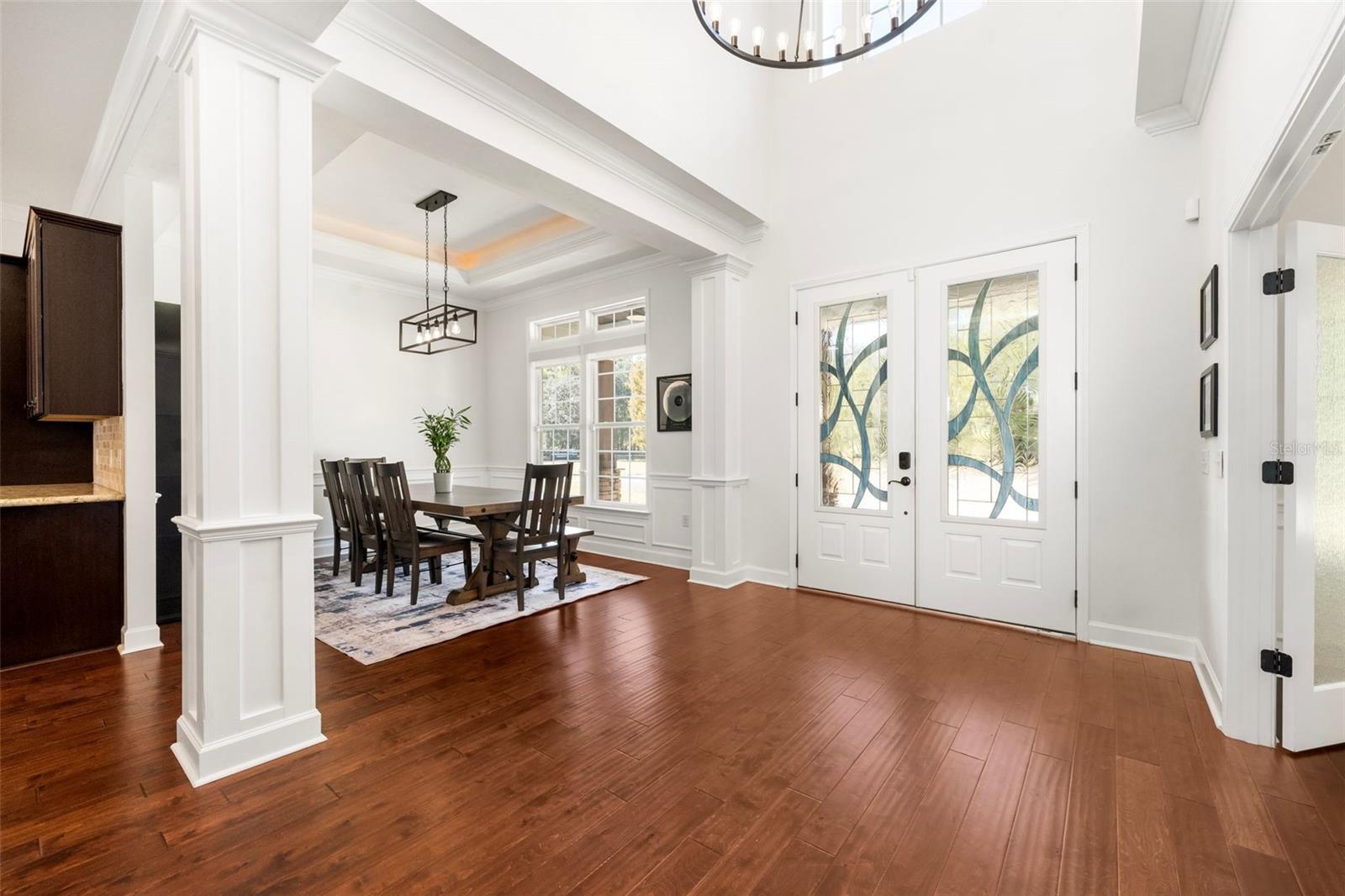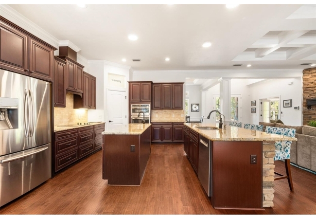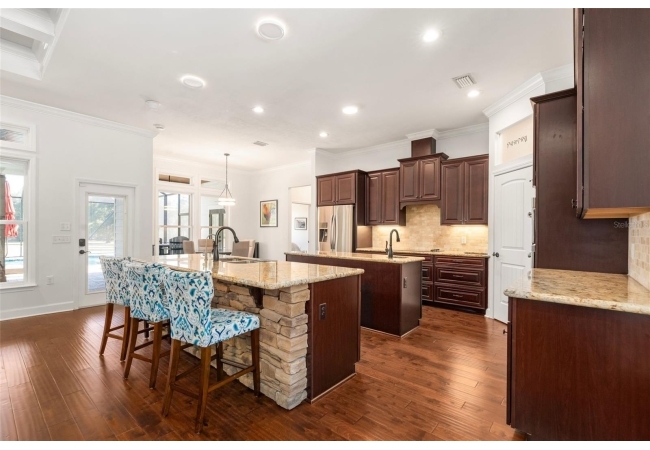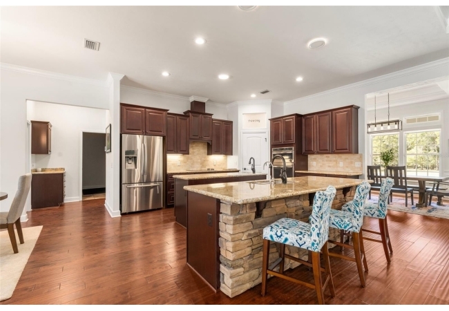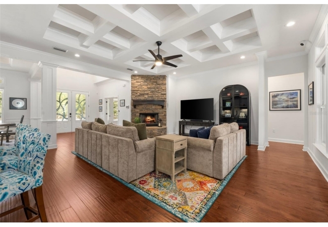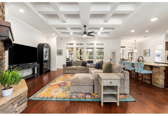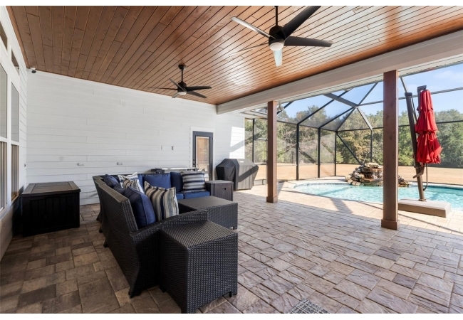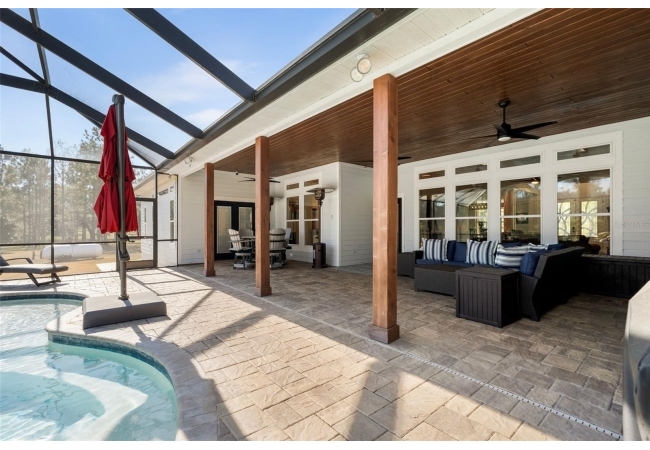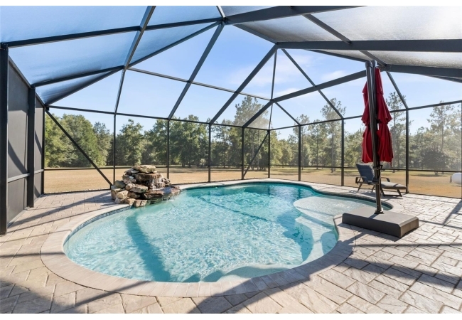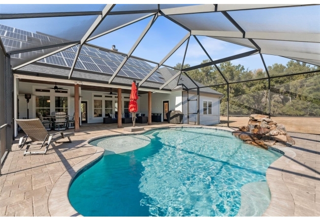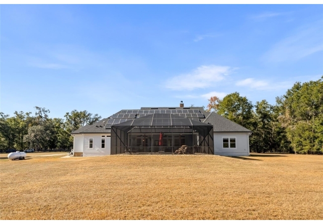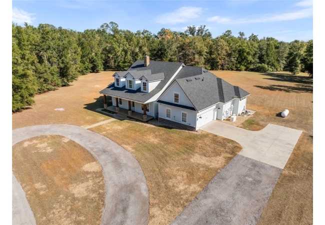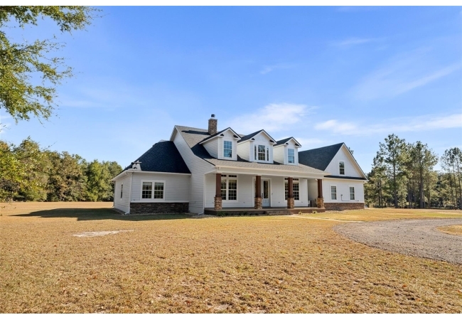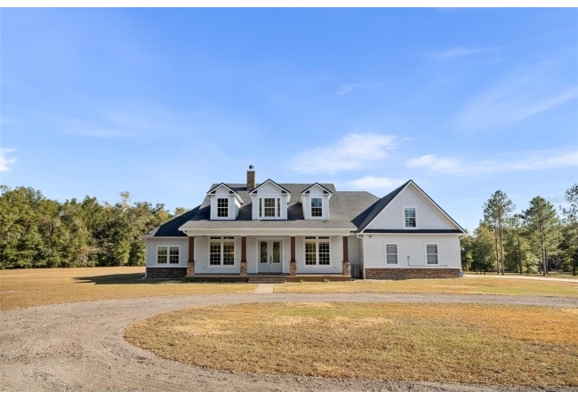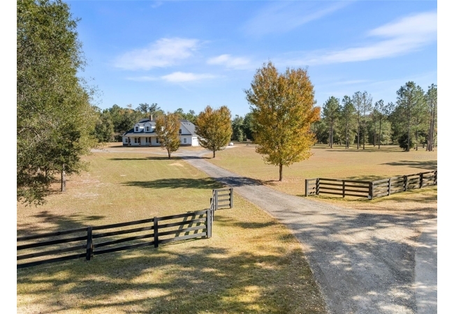 Picturesque and private, this Southern Living–inspired estate sits on 16+ fully fenced acres and offers the perfect blend of luxury, comfort, and countryside charm. Built in 2015, the custom 3,300+ SF residence features 5 bedrooms, 4 full bathrooms, and a dedicated study/office, all arranged in a thoughtfully designed three-way split floor plan. A grand double-door entry with custom stained-glass accents opens into bright, spacious living areas, including an oversized great room with a floor-to-ceiling stacked-stone wood-burning fireplace. The gourmet kitchen is an entertainer’s dream, showcasing dual islands, multiple prep zones, abundant custom cabinetry, granite countertops, and a seamless flow into both the great room and formal dining room. Rich details elevate every space with hand-scraped wood flooring, plantation shutters, wainscoting, crown molding, cased openings, and coffered and tray ceilings. The luxurious owner’s suite features a stacked-stone accent wall, claw-foot tub, dual vanities, an oversized walk-in shower, and a grand custom closet with center island. All guest bedrooms are generously sized and include walk-in closets in most rooms. Extensive recent upgrades in 2024 include a new HVAC system, fresh interior and exterior paint, new front entry doors, upgraded 500-gallon propane tank, new gas pool heater, Starlink high-performance internet, new screens on the pool enclosure, and new carpet in two bedrooms. A new roof in 2021 and as well as solar panels provide outstanding energy savings (average monthly bill from Clay Electric is $55), with capacity for additional panel expansion. This home is also equipped with a whole-house 22 kW generator ensuring year-round peace of mind. Enjoy Florida’s outdoor lifestyle with the covered paver lanai, screen-enclosed pool with stone waterfall, and plenty of space for future outdoor kitchen addition. The property is fully fenced and ideal for horses/livestock, boat/RV parking or the addition of a barn, workshop, or detached garage. Offering both serenity and convenience, this estate sits just minutes from shopping and dining on historic Main Street High Springs and nearby Alachua, with the University of Florida, UF Health and HCA hospitals approximately 30 minutes away. A rare opportunity to own a turnkey country retreat with modern comforts and endless possibilities.