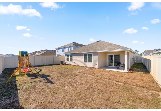 Welcome to this move-in-ready, one-story home in Avalon Woods featuring 4 bedrooms and 2 bathrooms in a desirable split-bedroom layout. The open-concept design maximizes living space, with a well-appointed kitchen overlooking the living area, dining space, and covered lanai—ideal for everyday living and entertaining. The kitchen includes all appliances: Stainless Steel refrigerator, electric range, dishwasher, and microwave. The private owner’s suite is tucked away at the rear of the home and offers a large bathroom and walk-in closet. Two secondary bedrooms share a full bathroom, while the fourth bedroom is conveniently located near the laundry room, which includes a washer and dryer. Additional highlights include a fenced backyard, window coverings throughout, and all appliances conveying—making this home truly move-in ready. Ideally located near the Easton Newberry Sports Complex, residents will enjoy easy access to outdoor recreation, while shopping, dining, and all that Newberry has to offer are just minutes away. Avalon Woods is 10 minutes west of the popular Jonesville area and 24 minutes to the University of Florida! This nearly new home perfectly combines space, style, and location.