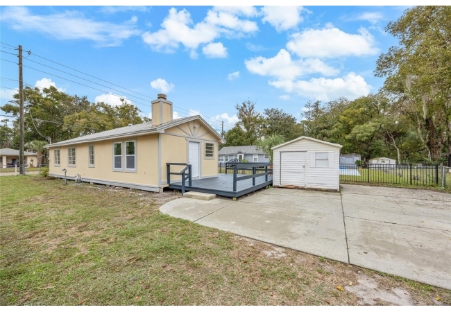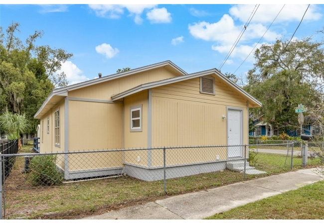 One or more photos were virtually staged (fire shown in fireplace). This charming and recently updated 3-bed, 2-bath home sits on a desirable corner lot and offers 1,221 square feet of refreshed living space. Built in 1938, the home has been thoughtfully modernized throughout, featuring fresh interior and exterior paint, new flooring, upgraded bathrooms, and an inviting kitchen updated with a full suite of new appliances. Step into the living room and enjoy a beautiful wood-burning fireplace, perfect for creating a cozy ambience on cool Florida evenings. The home’s easy, natural flow connects the living room to the contemporary kitchen and a spacious separate dining area. Two sizable guest bedrooms share a crisp and clean bath with a tub/shower combo, while the primary suite includes its own ensuite with a stylish walk-in shower. An indoor laundry room adds everyday convenience. Outside, the fenced yard offers a back deck for outdoor enjoyment, a utility shed for extra storage, and off-street parking. Located in Daniel Dixson, this property sits in an established neighborhood with no HOA, is close to schools (including Gainesville High), and provides convenient access to downtown Gainesville, the University of Florida, Shands Hospital, shopping, dining, and parks. With its location, updates, and move-in readiness, this home is a fantastic find, so schedule your private showing today while it is still available!