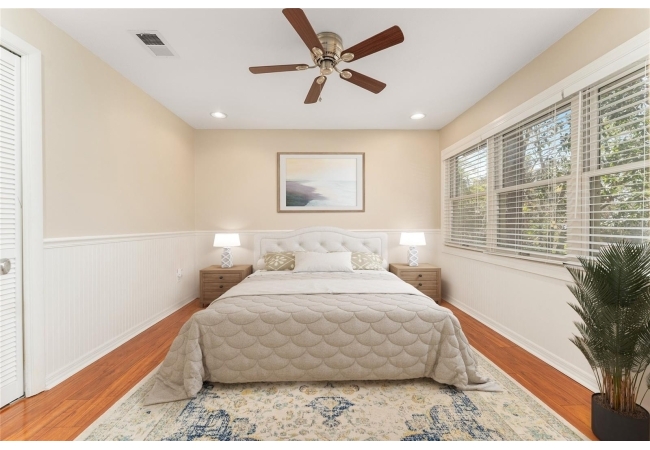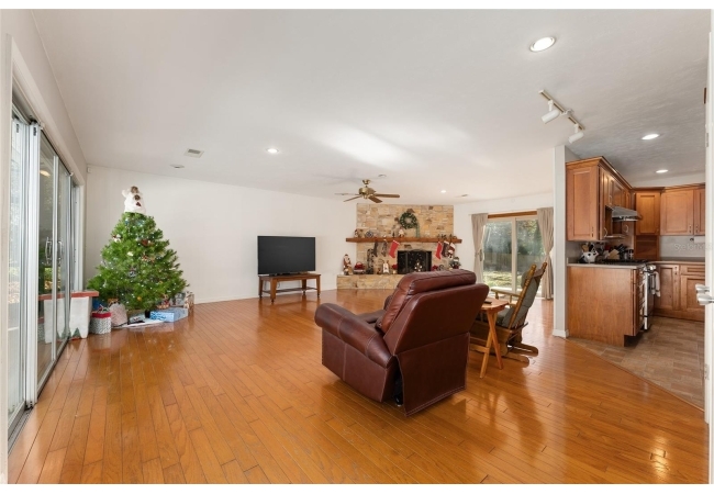 The flexible floor plan offers generously sized bedrooms, a separate living room, and a separate family room with a cozy wood-burning fireplace, providing space for everyone to spread out while still staying connected.