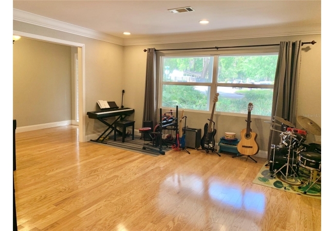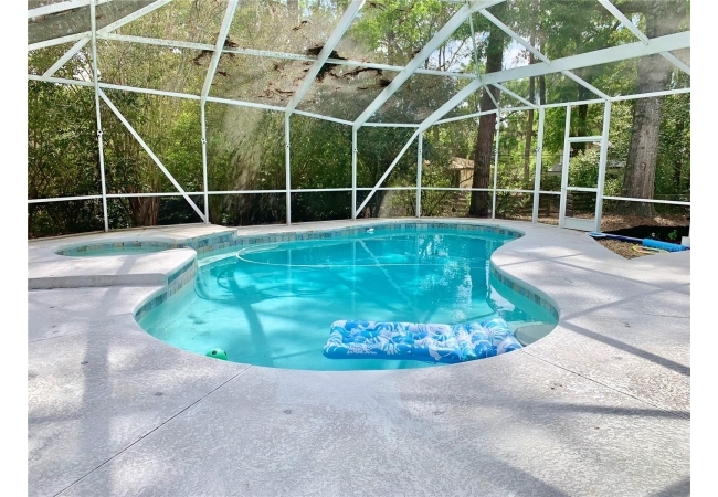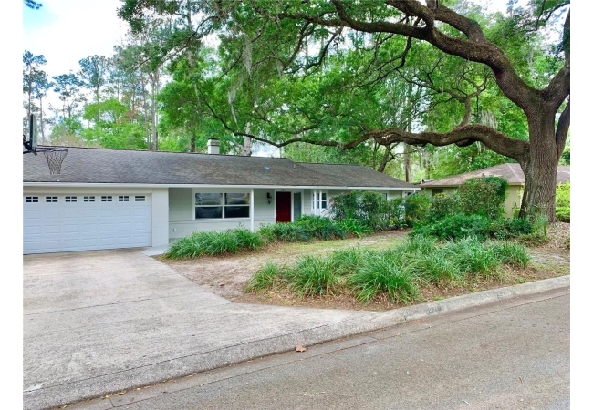 Beautiful 4/2 pool home in Forest Ridge. This amazing home is centrally located in NW Gainesville with an easy commute to UF, grocery stores, all three hospitals and so much more. The home is nestled beneath a magnificent live oak whose sweeping canopy sets it apart from the moment you arrive. Upon entering the home you will find beautiful wood floors running through much of the living areas. There is a front facing living room with large windows for natural light and a great view of the front yard. The family room features a wood burning fireplace and has a large opening which spans into the dining room. The kitchen is adorned with stainless appliances accented with gorgeous granite countertops. The laundry room beyond the kitchen is generously sized and can also serve as a huge pantry area if desired. The bedroom wing of the house features 3 nicely sized guest rooms. The guest bathroom is strategically placed near the family room to serve visiting guests as well as the 3 guest bedrooms. The primary bedroom is at the end of the hall and features a generous layout with an additional entry area that could be used as a sitting area. Large wall-to-wall closets provide ample storage space for your belongings, along with a smaller closet near the entry. The en-suite bathroom features a double vanity, large jetted soaker tub and glassed in shower. A sliding glass door leads directly to the screened pool lanai. The pool has a huge pool deck which would be perfect for entertaining and grill outs. The in-ground pool has an attached spa and is heated with a natural gas heater, allowing enjoyment of the pool and spa year-round. The yard in the back has additional space for pets to run and some mature fruit trees, including orange, grapefruit and lemon trees. The home has a 2 car garage with decorative mid-century vented block on the end. Truly a gem of a home in a quiet, established residential neighborhood served by good local schools. Just a few blocks away is Alfred A. Ring Nature Park, perfect for nature walks and outdoor recreation. Additional conveniences nearby include Thornebrook Village, Gainesville Playhouse and many shopping plazas and restaurants, with Gainesville Regional Airport only a 15-minute drive away. Come and take a tour before it's gone!