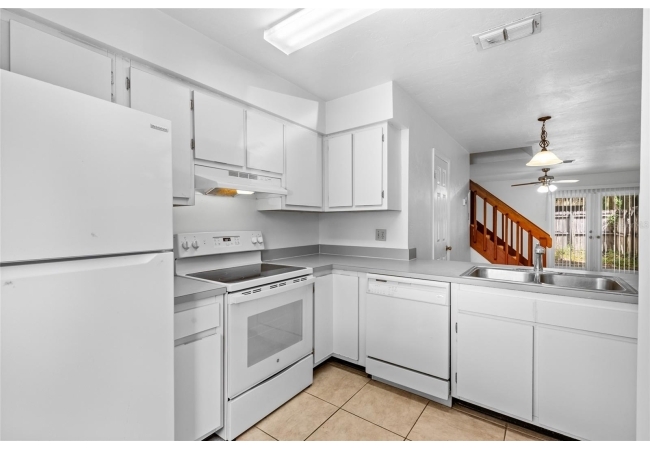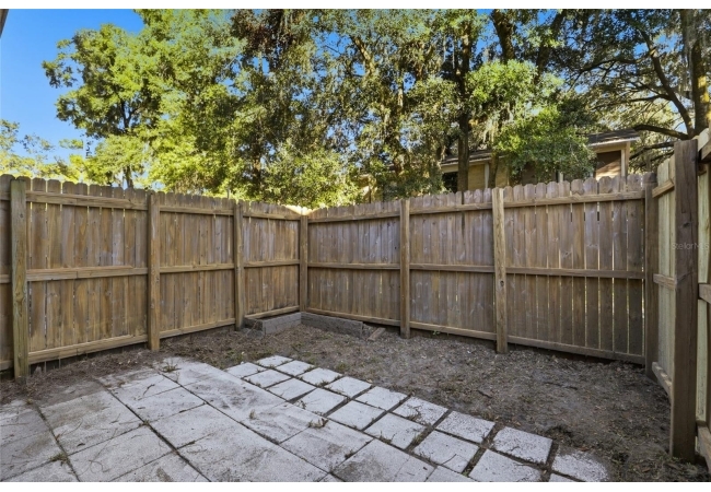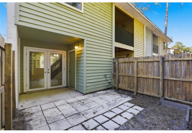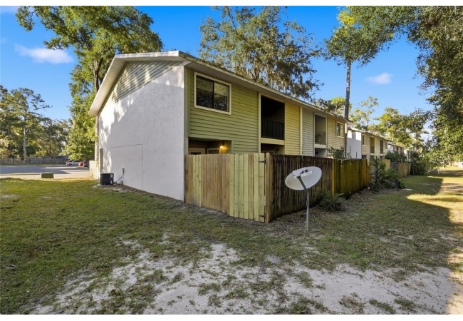 own a corner unit featuring two bedrooms and two and a half bathrooms. This home boasts a spacious bright kitchen with newer appliances and HVAC 2020, Tile flooring throughout the ground floor, NEW VINYL Flooring staircase and second floor bedrooms and hallways. An open living concept that flows seamlessly into the living room, that features French doors allowing an abundance of natural light to fill the room. Outside you will find an adorable NEW FENCED in backyard. Upstairs, you'll discover two bedrooms, each with en-suite bathrooms, and a generous walk-in closet. Additional perks include a sizable laundry room complete with a washer and dryer. Ideally situated just minutes from Butler Plaza West, only three miles from Shands and the UF campus, and with a bus route conveniently located right outside the complex, this home is truly a gem. Schedule your appointment today; it won't last long!