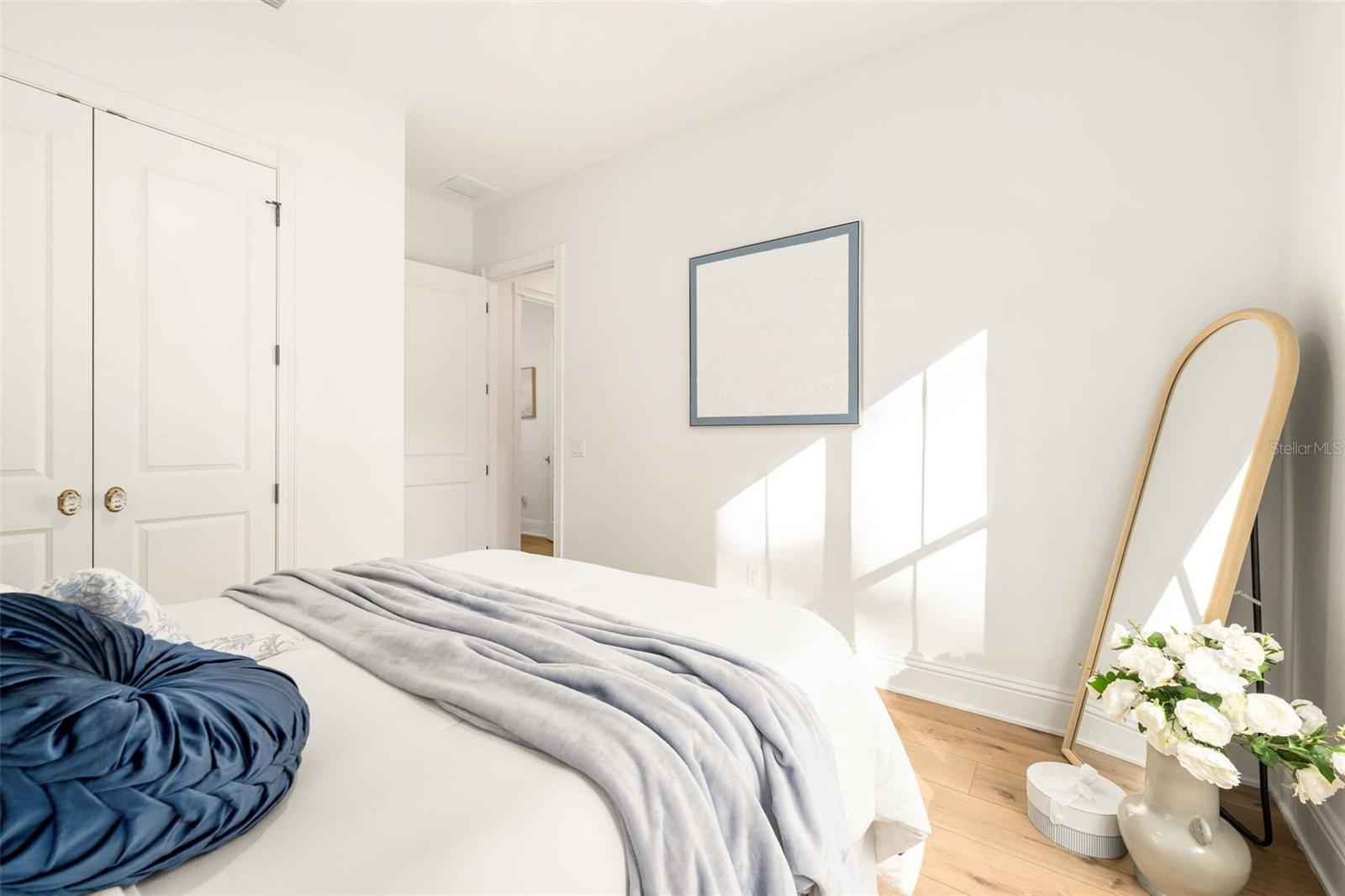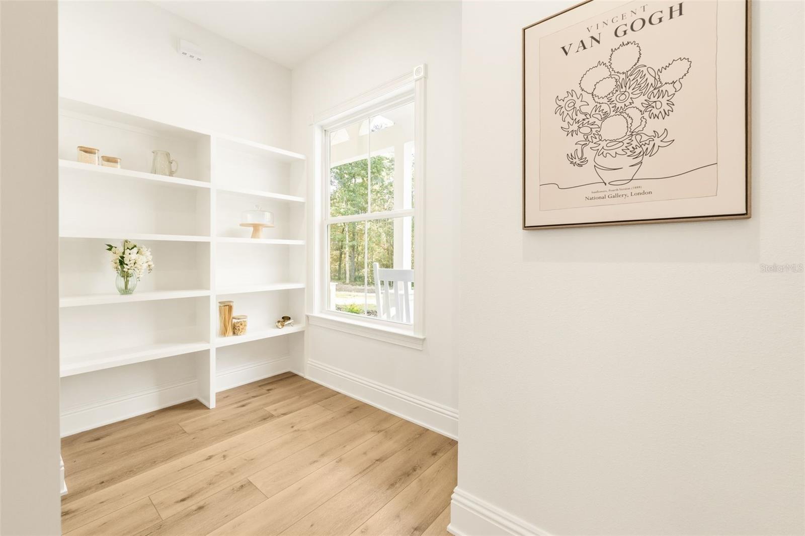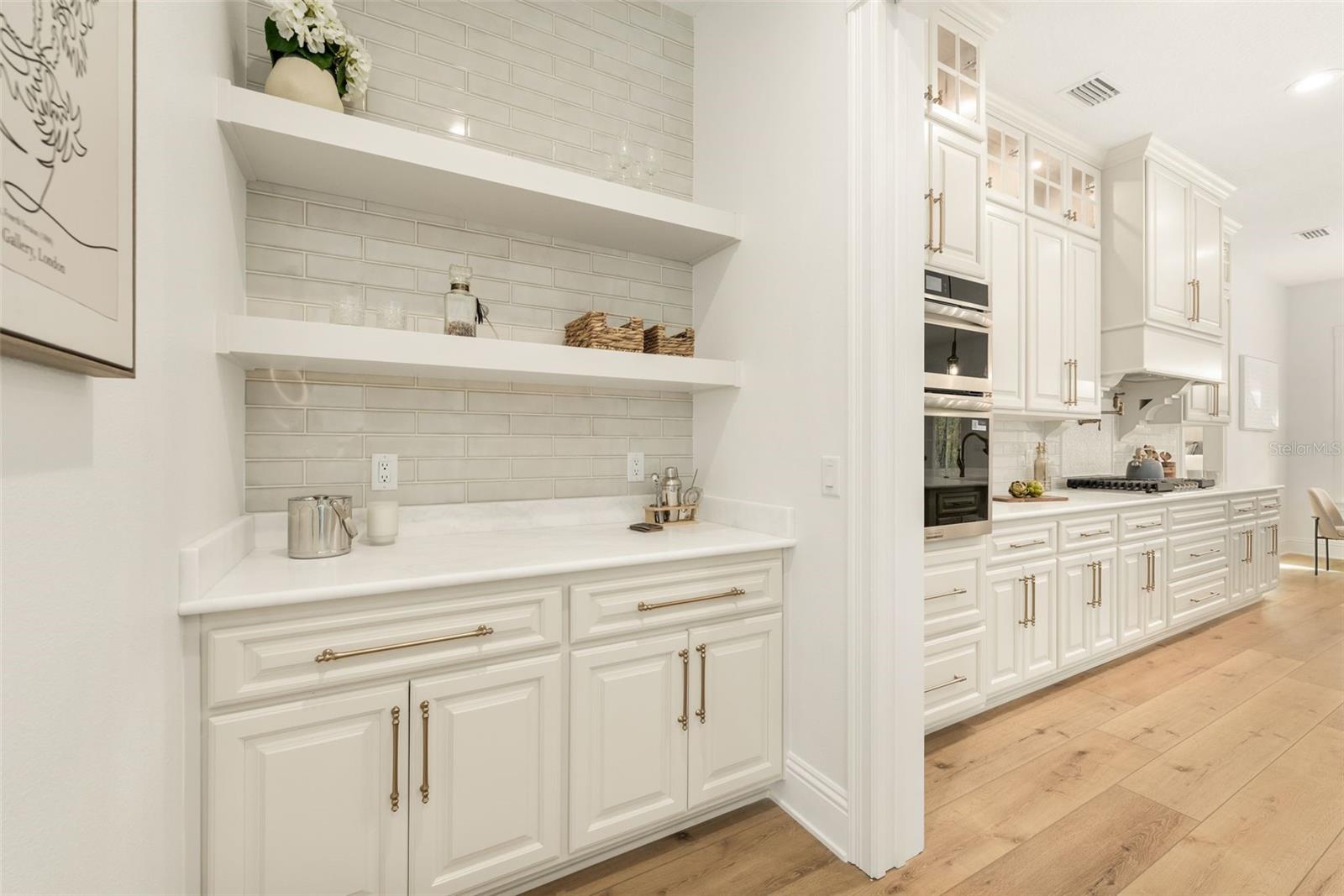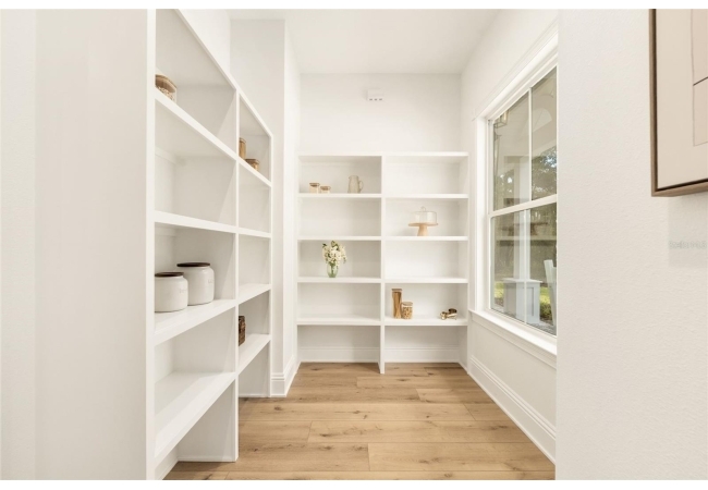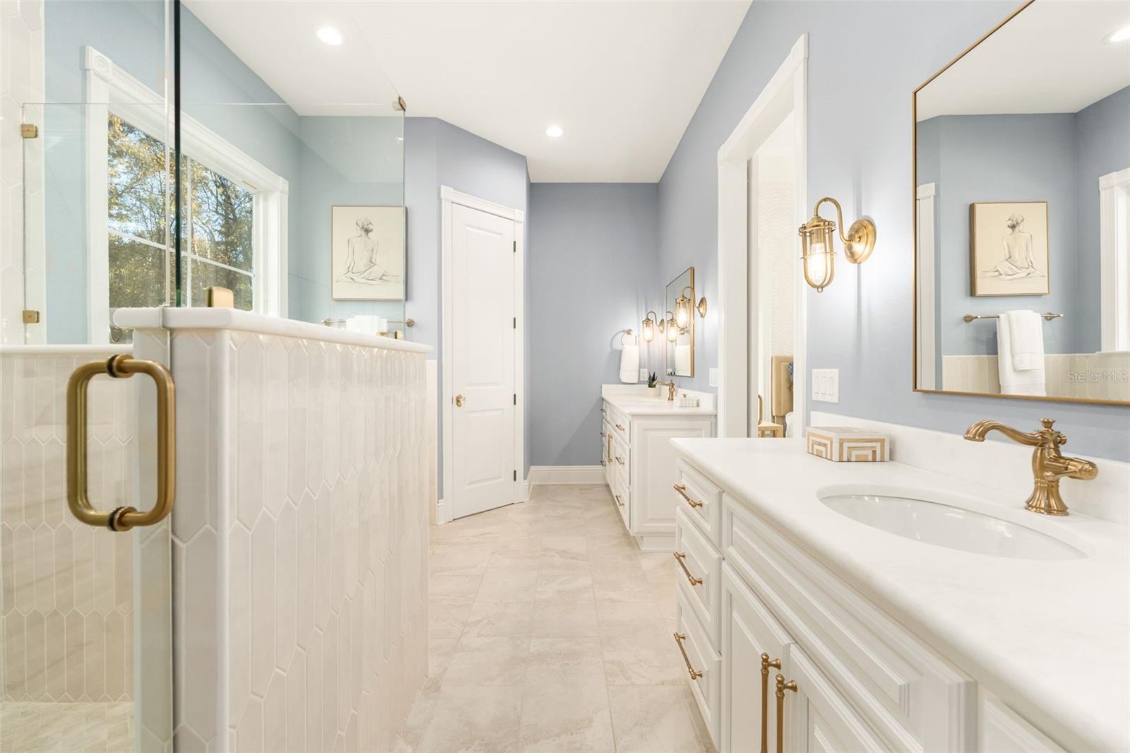 The spacious primary suite includes a coffered ceiling, a huge walk-in closet with built-in vanity, and beautifully appointed finishes throughout.