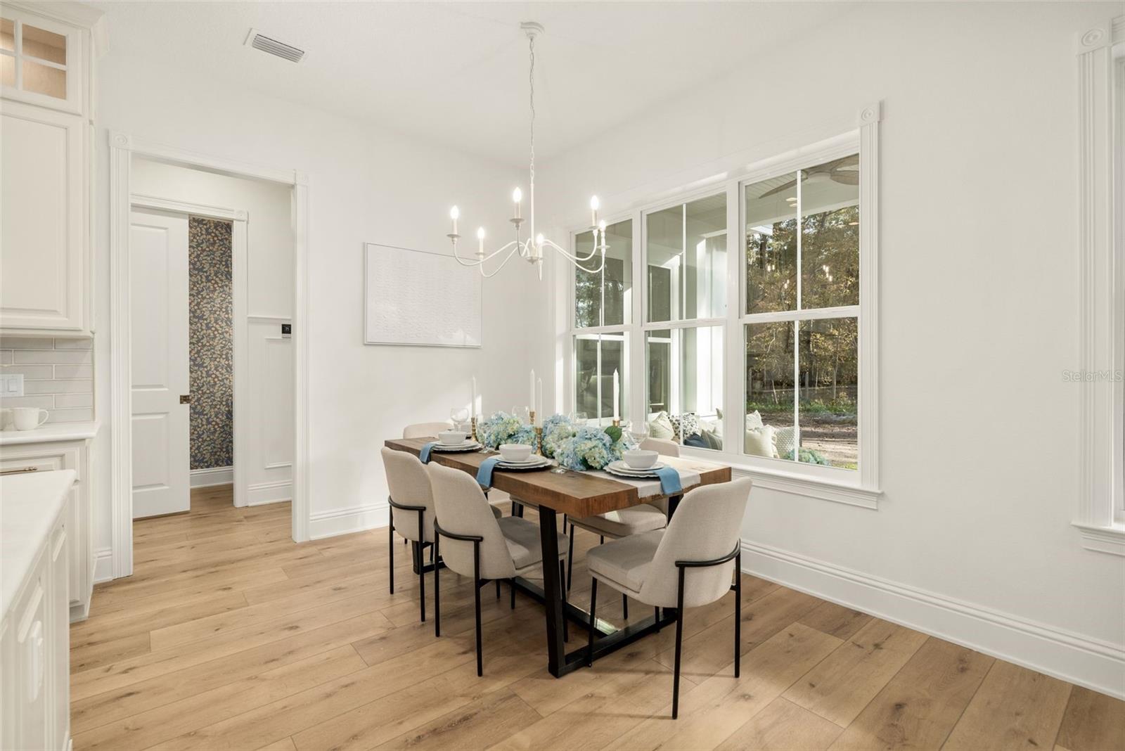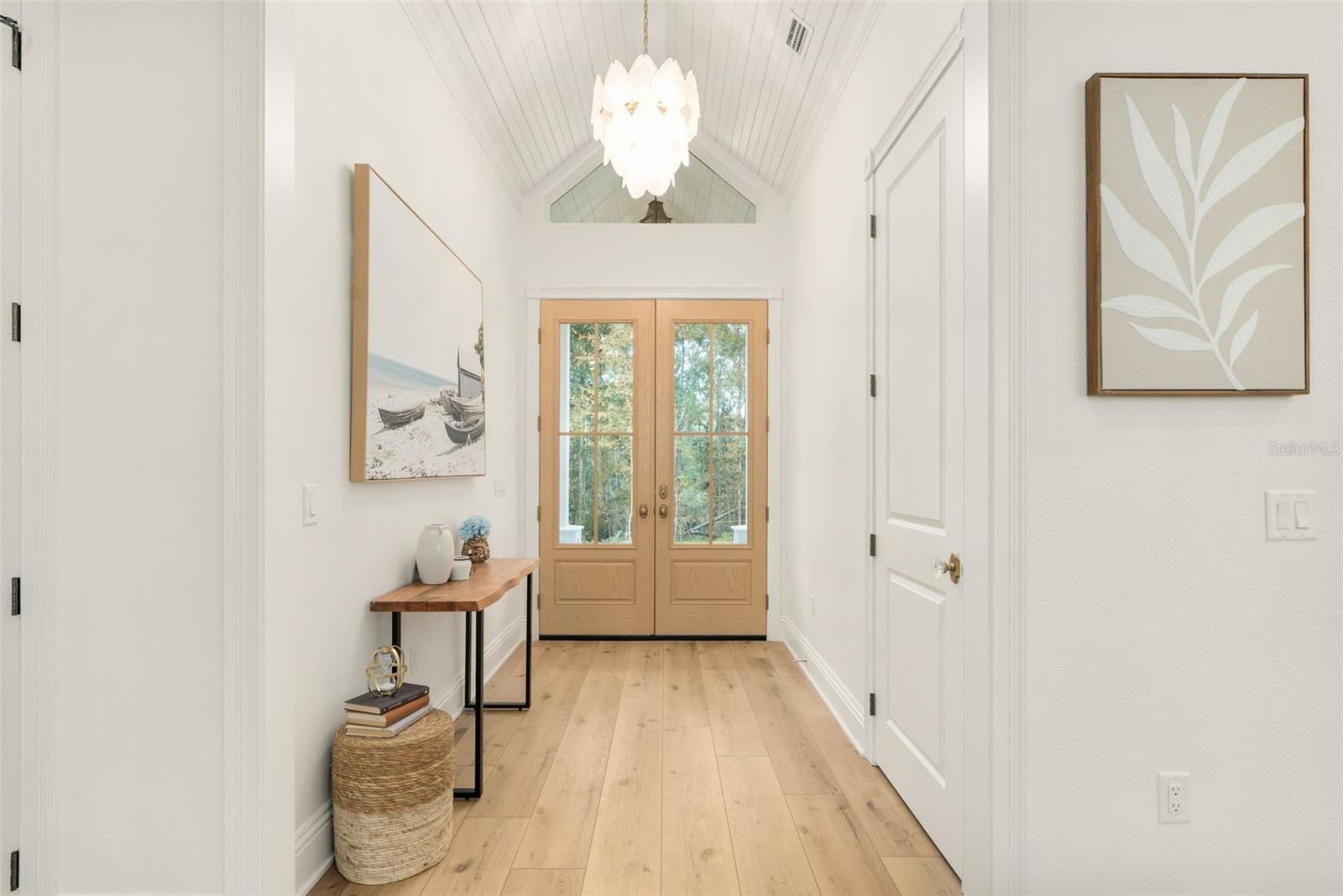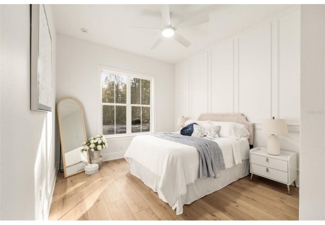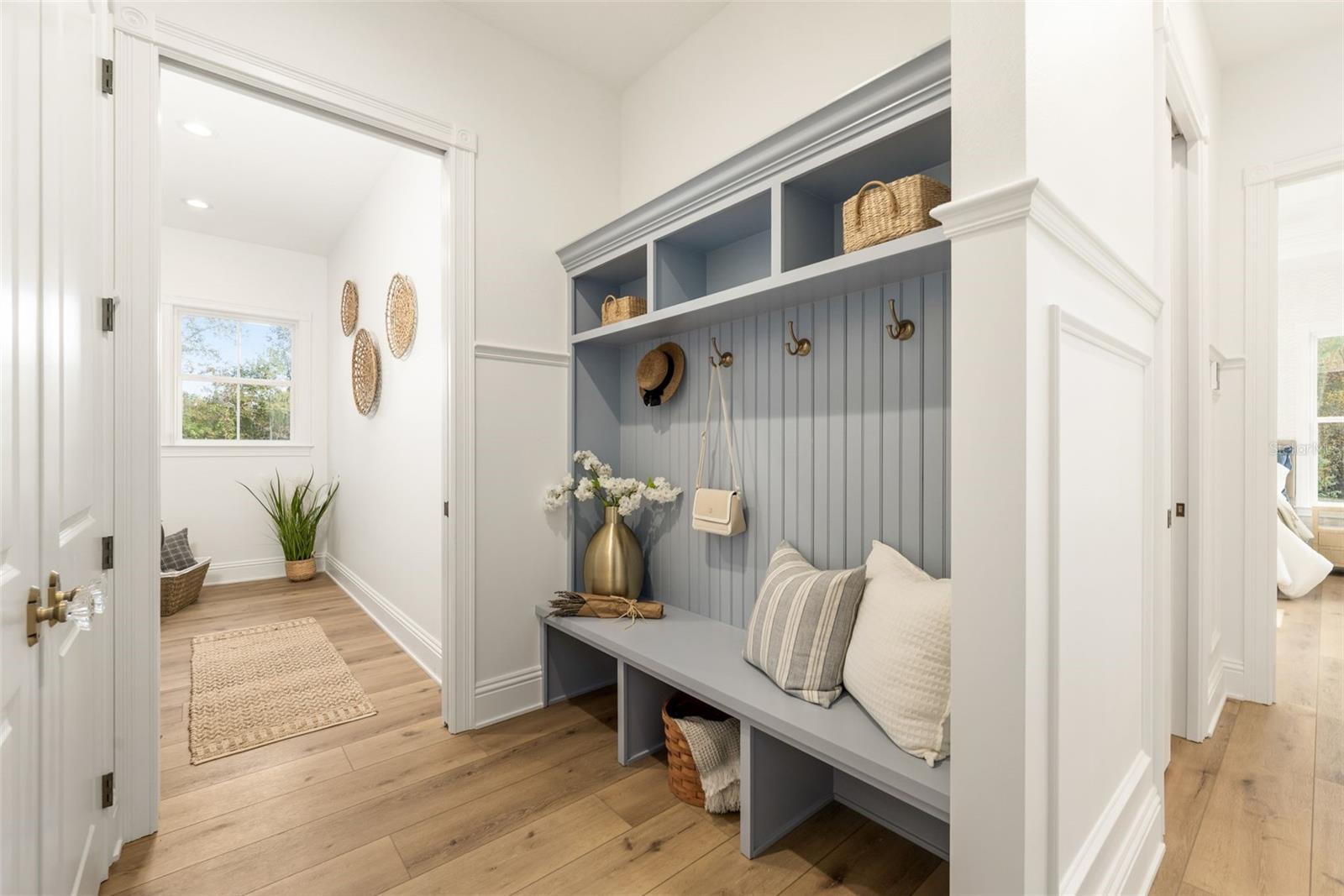 Inside, enjoy 14-foot ceilings in the great room with exposed wood beams, an electric fireplace, and luxury vinyl plank flooring. The gourmet kitchen offers natural stone countertops, custom cabinetry, and a walk-in pantry. Additional features include a dedicated home office, a custom mudroom bench, and a 2-car side-entry garage.