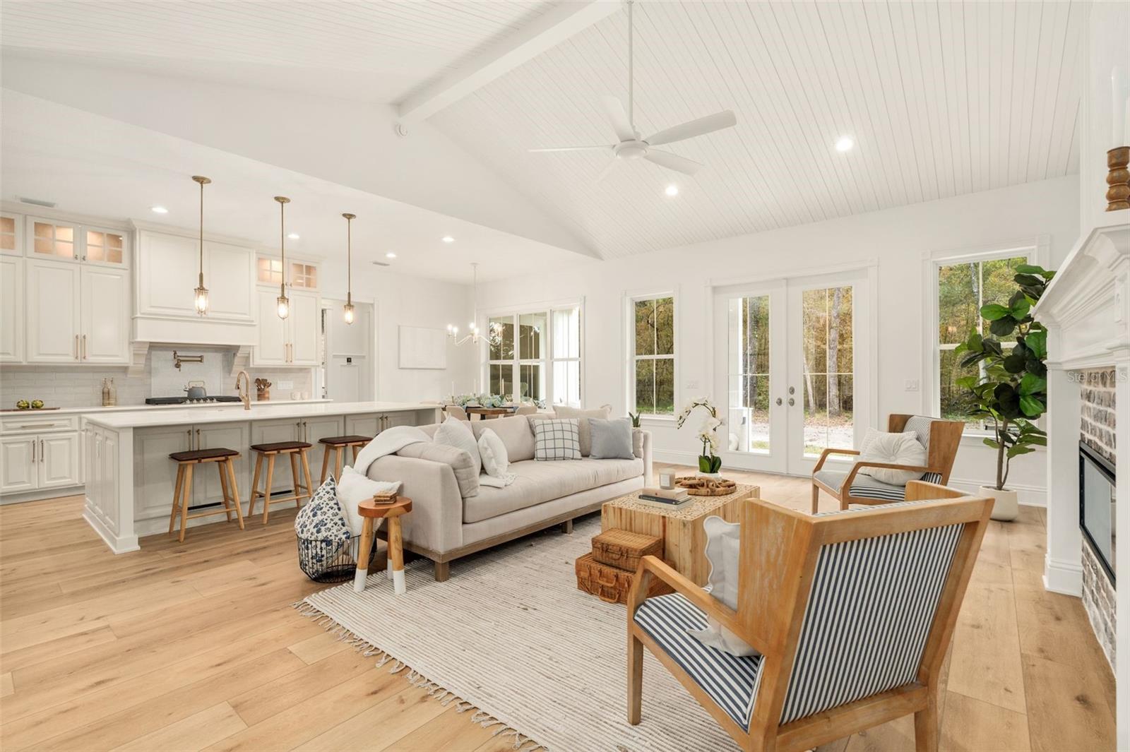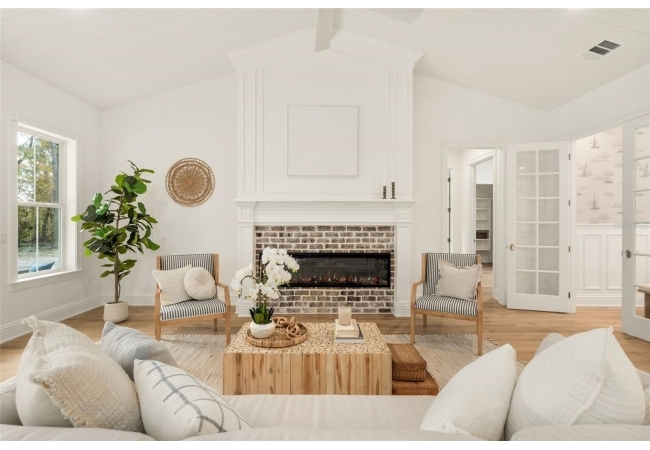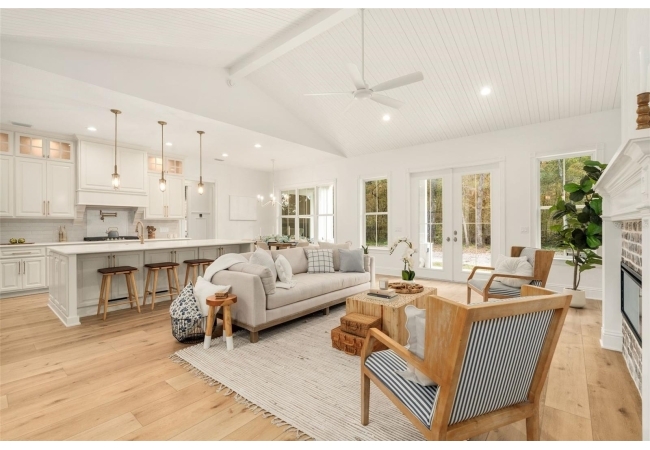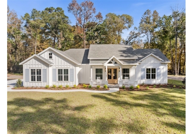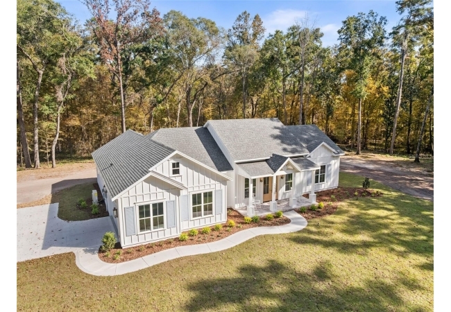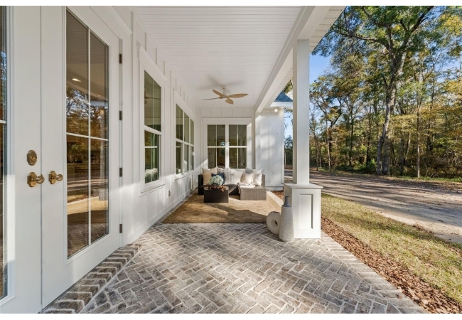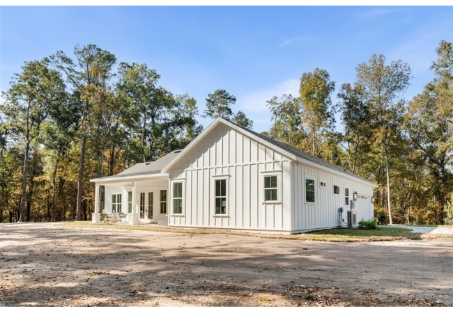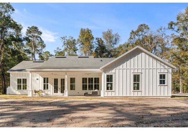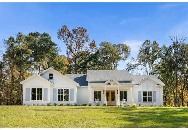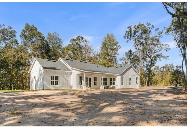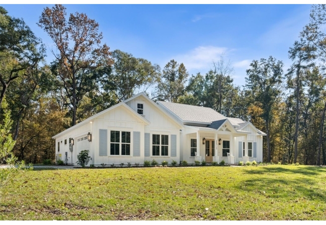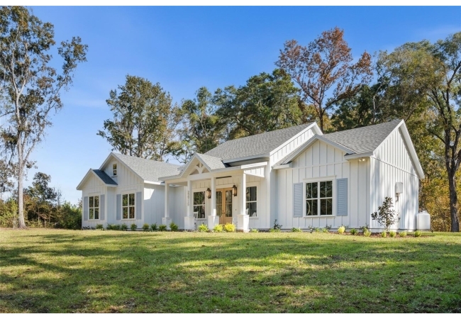Beautifully crafted Parade home built by John Crawford Homes, offering 3 bedrooms, 2.5 baths, 2,364 sq ft, and exceptional luxury finishes throughout. Situated on 5.22 acres, this home features Hardie board and batten siding, custom shutters, herringbone brick porches, and tongue-and-groove porch ceilings that elevate the exterior appeal.