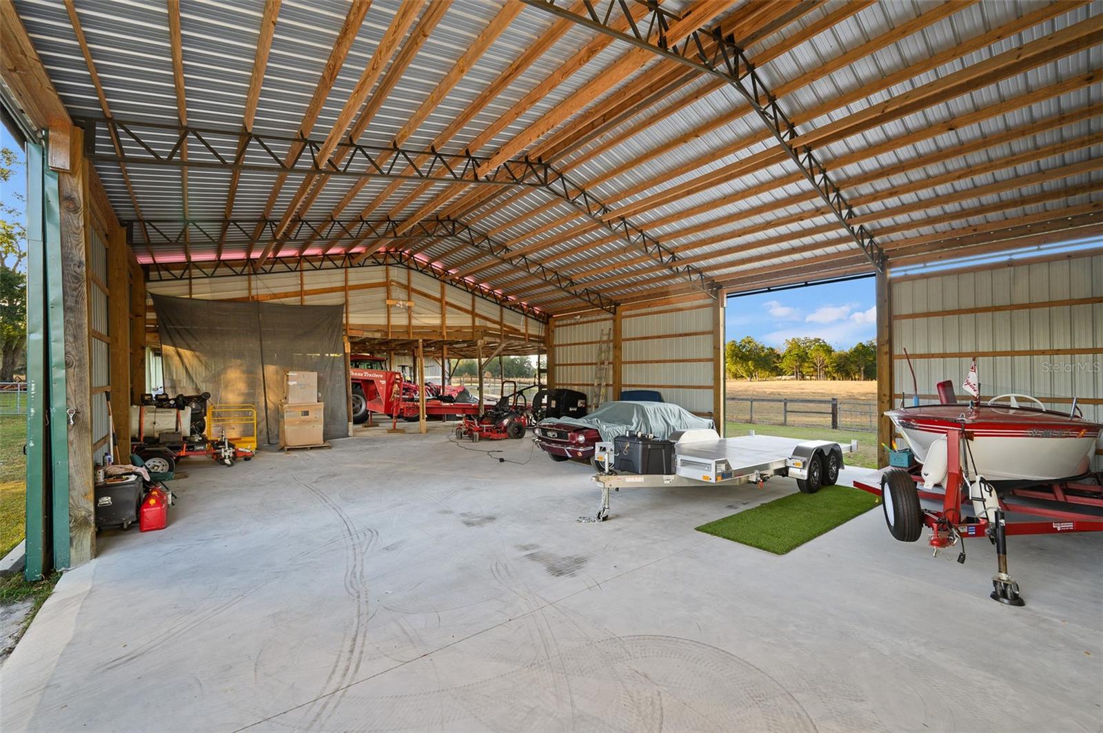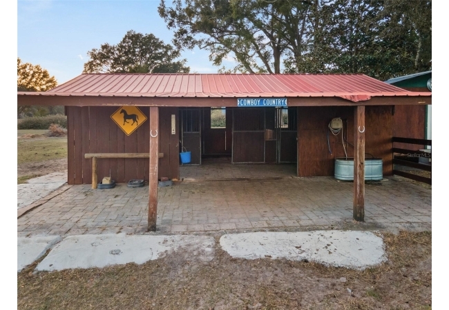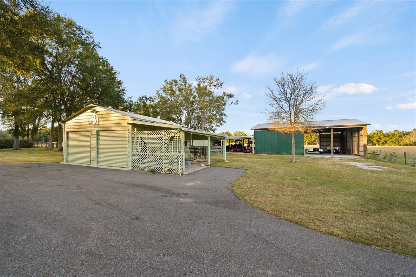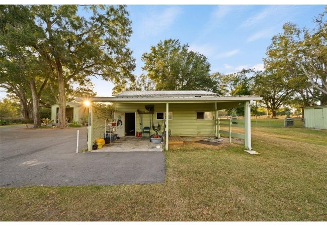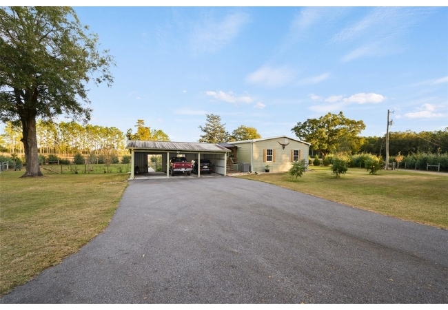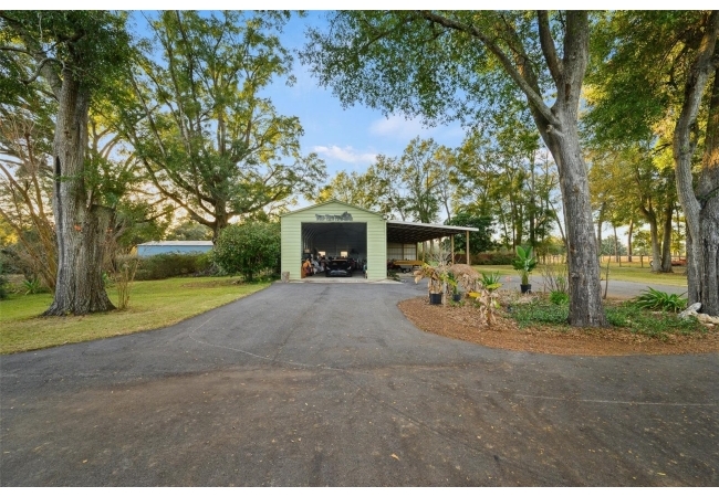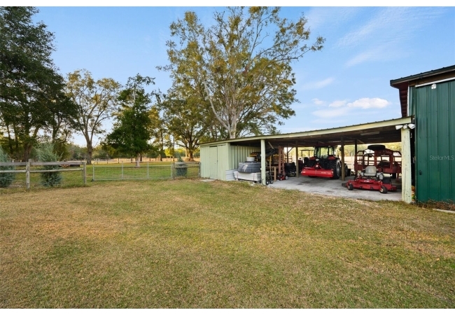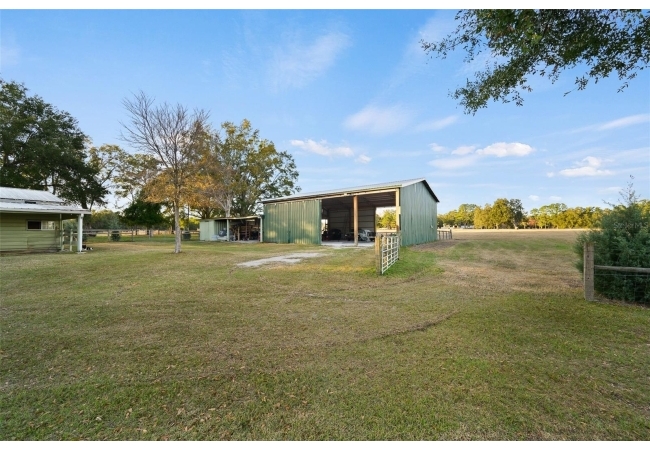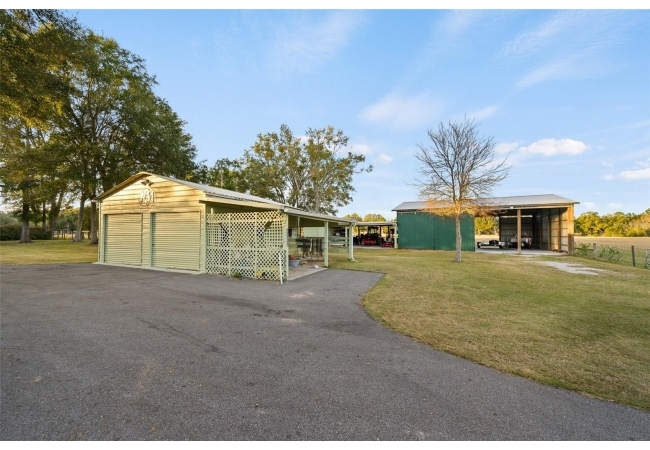 This well-planned farm includes a 3 stall stable, a large equipment barn with power, ideal for storing tractors, vehicles, or boats. Includes full RV hookup and a separate 56’x26’ garage with additional well, septic, and plumbed to add an additional bathroom and shower and storage shed. Full irrigation system throughout the acreage ensure easy maintenance and functionality for any agricultural or recreational pursuits. This property is equipped for both comfort and practicality, the estate features a three-car detached carport with a metal roof, a stable, a large pole barn with power for tractors, boats, or recreational vehicles, and an additional storage shed for multiple usage.