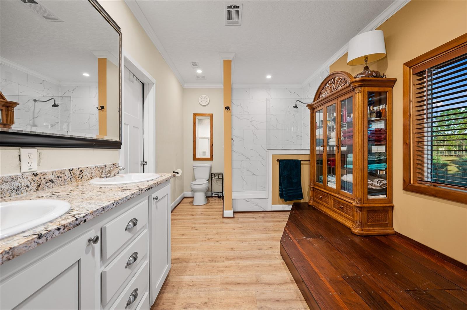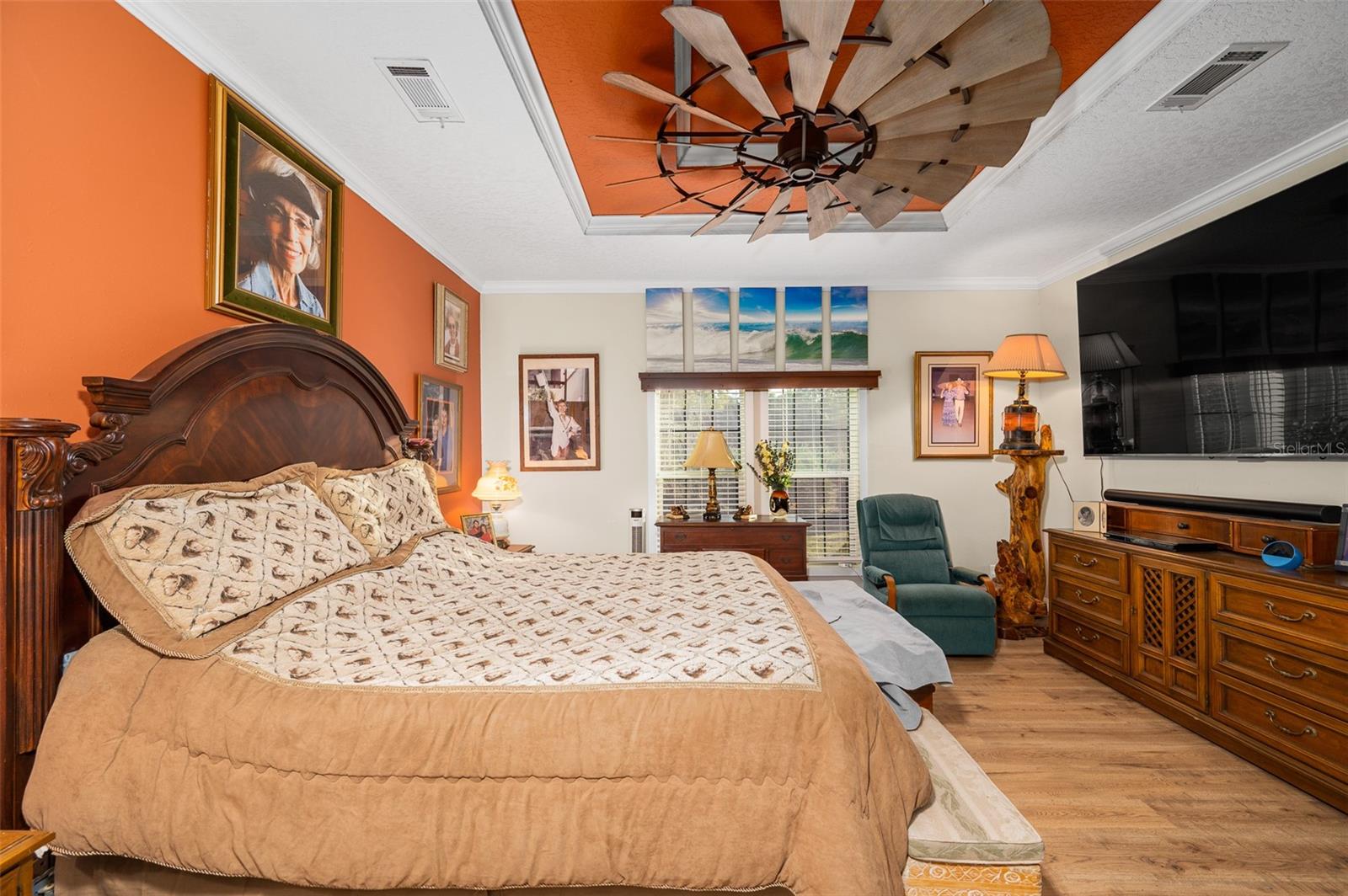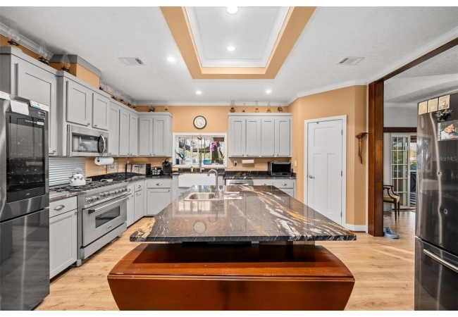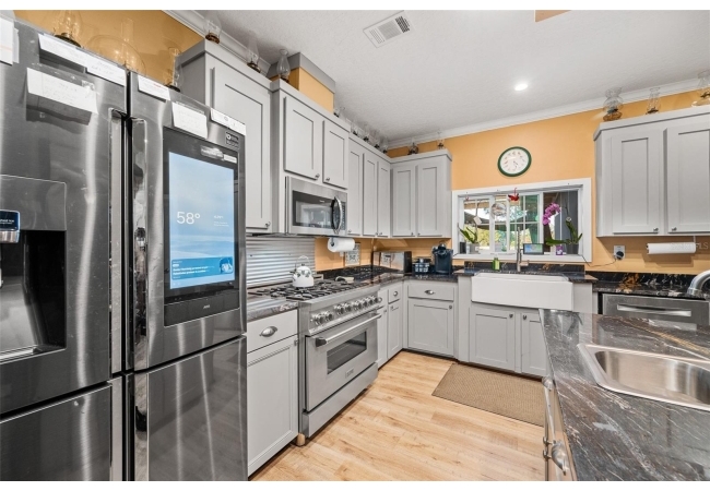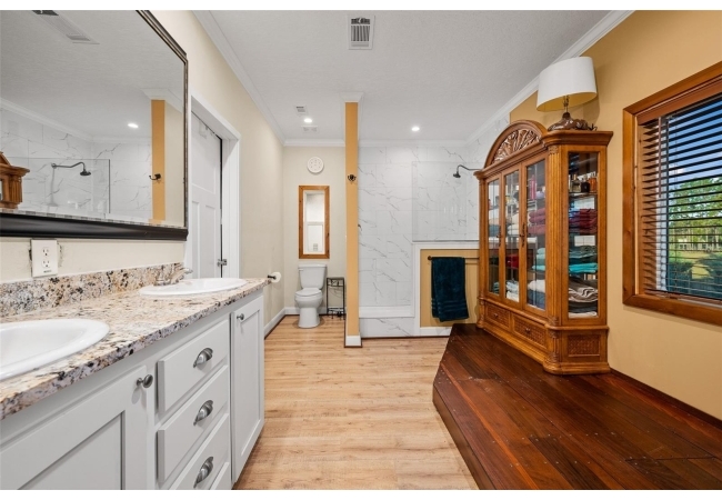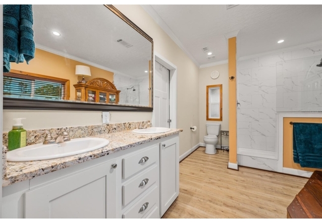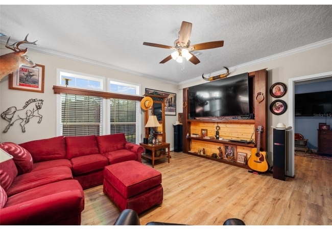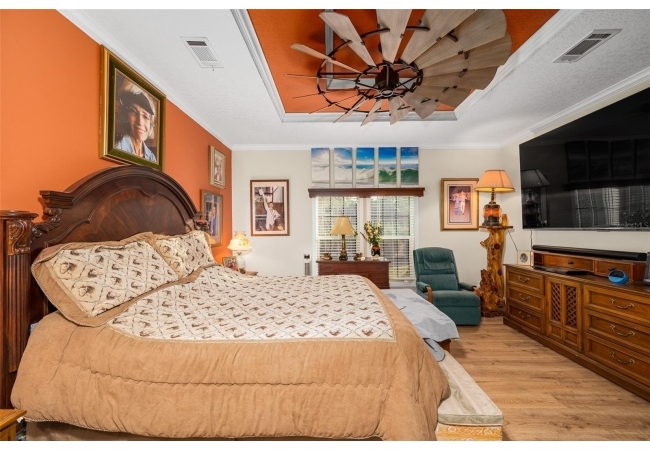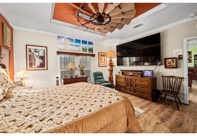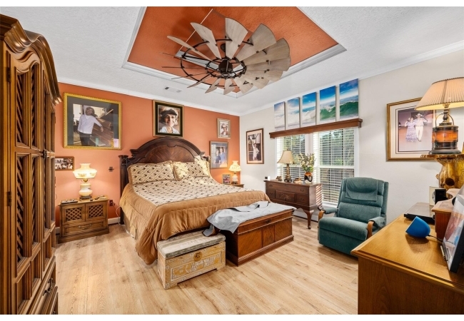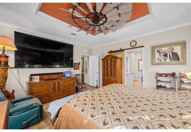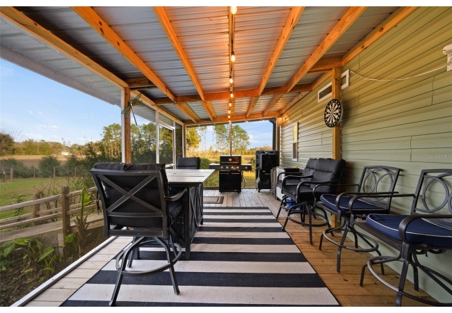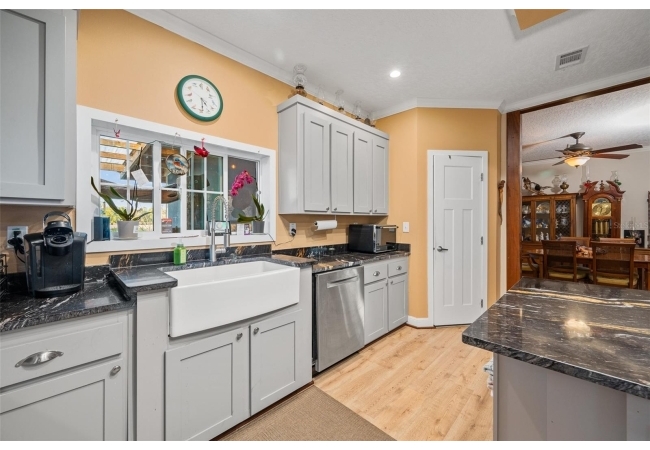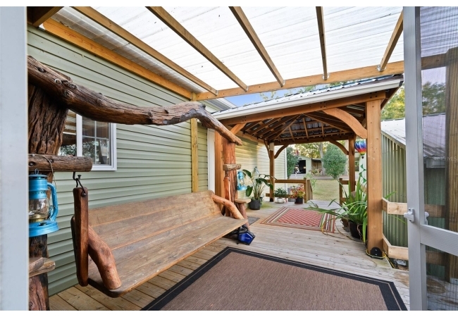 The property also features a customized 2023, spacious 2-bedroom, 2-bath upgraded customized double-wide mobile home with a metal roof, gutters, and downspouts complete with wooden beams and hardwood trim, luxury vinyl plank flooring and ceiling fans with ample lighting throughout the home. This 2,280 sq ft home is well insulated and customized with many upgrades and beautifully designed living space with new Hardi-Plank siding. Inside, you will find a chef-inspired kitchen with granite countertops, ample cabinetry, a center island, a gas stove, and upgraded appliances, and pantry. The spacious master suite boasts a luxurious bathroom, complete with an on-demand hot water system and an impressive walk-in closet, while the guest bedroom is equally comfortable and inviting.