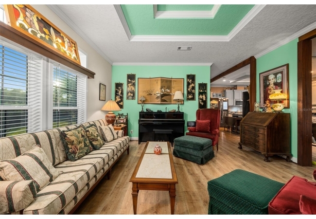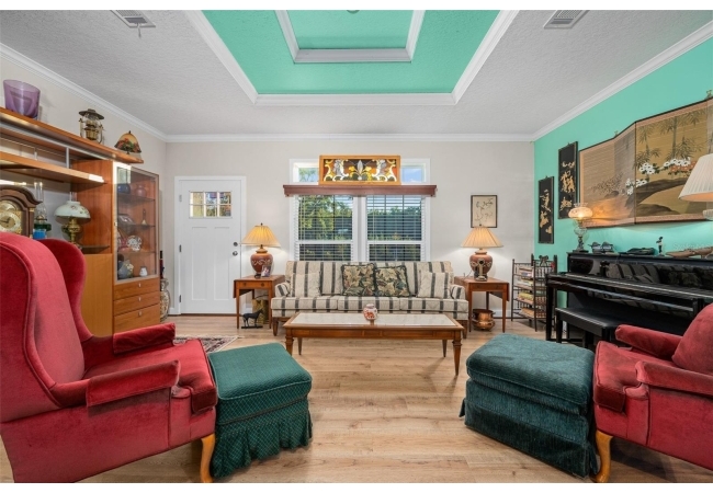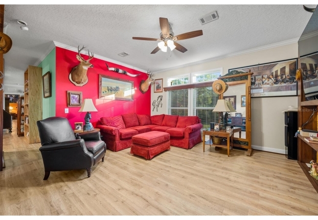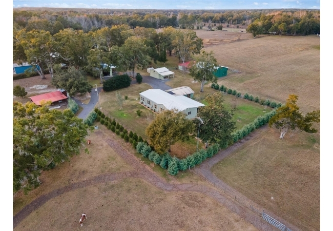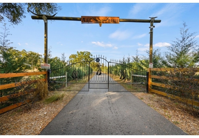 Escape to the serenity of country living on this stunning 19.6-acre Farm Retreat Estate sitting on 3 seperate parcels surrounded by mature foliage and natural Florida beauty. A paved circular driveway welcomes you through a wrought iron gated entrance, beautifully lined with