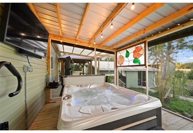 Enjoy the tranquility of nature from your covered and screened back porch or unwind in the 3-seater hot tub after a long day. Every detail was thoughtfully planned to accommodate a couple or family looking for their dream home in the country, where peace, privacy, and the sounds of nature surround the you.