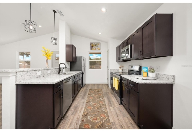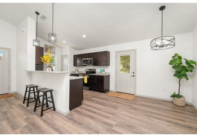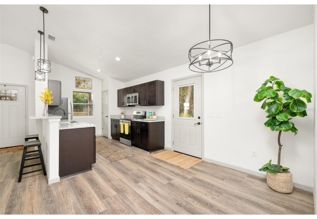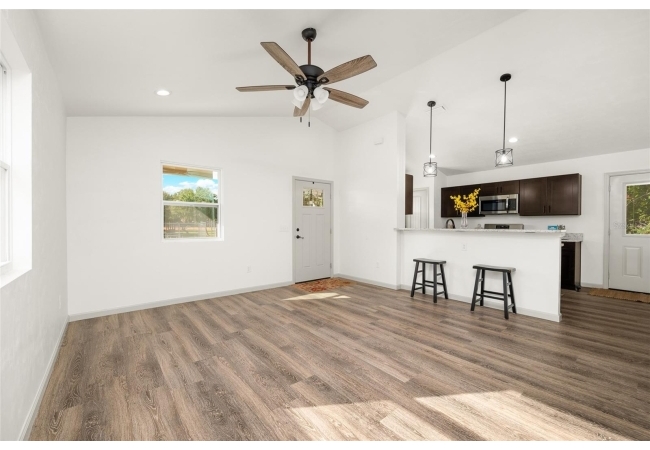 Welcome Home to Tranquil High Springs Living! Discover the charm and ease of this brand-new, single-family residence nestled in the peaceful community of High Springs, FL. Built in 2024, this home is perfect for anyone seeking a modern lifestyle without sacrificing nature & a tranquil setting. Step inside your spacious 1,200 sq. ft. retreat, featuring 3 bedrooms and 2 bathrooms. The home boasts a bright and airy open floor plan, enhanced by high ceilings and beautiful luxury vinyl flooring that flows seamlessly throughout the main living areas.