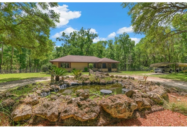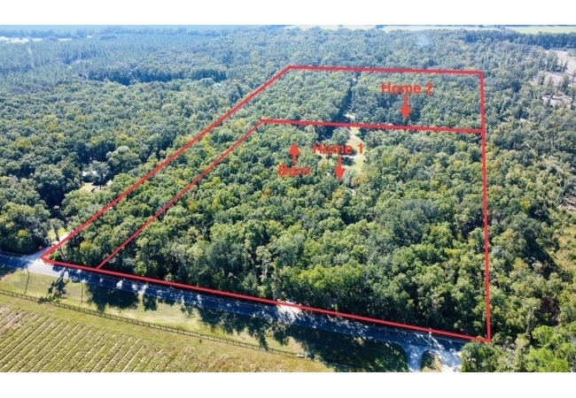 Welcome to this beautiful property in the tranquil surroundings just outside of High Springs, Florida. A stunning 18.7 acre estate with two homes and a barn, this is a rare opportunity offering the perfect multi-generational family property or an investment opportunity that could be used as a VRBO or a rental property for a terrific passive monthly income! Featuring two homes on separate parcels (9.37 & 9.33 acres), this property offers amenities of a canopy driveway with electric gate for privacy, a saltwater pool, a 2300 sq ft barn with a workshop & a finished “man cave”, a firepit area, plenty of cleared area for gardening or livestock, a small decorative pond, and beautiful under-brushed woods providing privacy and rural charm. This property is ideal for nature lovers and those seeking a peaceful lifestyle. The first residence is a 2348 sq ft block home, featuring 4 large bedrooms and 2 ½ bathrooms and multiple living areas, providing ample space for a home office or entertaining. The interior boasts updated bathrooms with LVP, updated kitchen appliances, a 2017 roof, and a back porch leading to the screen enclosed saltwater pool. Just beyond the pool enclosure, walk over to the 2,304 sq ft barn that includes covered porches, a game room with A/C, an exceptional workshop and lots of extra storage and a carport for your boat, camper, ATVs or golf carts. This area is perfect for cookouts and large family and friend gatherings! Then, at the rear of the property sits a cozy 2 bed/1 bath, 1,152 sq ft site-built home that boasts a newer roof (2020), A/C (2017), updated tile shower, engineered hardwood floors, a pond, 2 car carport, 12x12 shed, and a lime rock circle drive with 100+ year-old oaks on either side. This is truly an ideal property for multi-generational living, agricultural activities, horses, goats, chickens-the possibilities are endless! Here you are just 10 minutes away from World-Class clear-water springs-Poe, Blue, and Ginnie Springs and to High Springs’ charming downtown that features local shops, restaurants. Only 30 minutes to Gainesville & 30 minutes to Lake City for easy commutes to local hospitals and colleges - one being the University of Florida! Don’t miss the chance to own this exceptional piece of North Florida’s natural beauty. Whether you’re seeking a private retreat, a family homestead, or an investment property this is an opportunity that delivers endless potential in a picturesque setting. Contact us today to schedule a private showing and experience all this property has to offer!