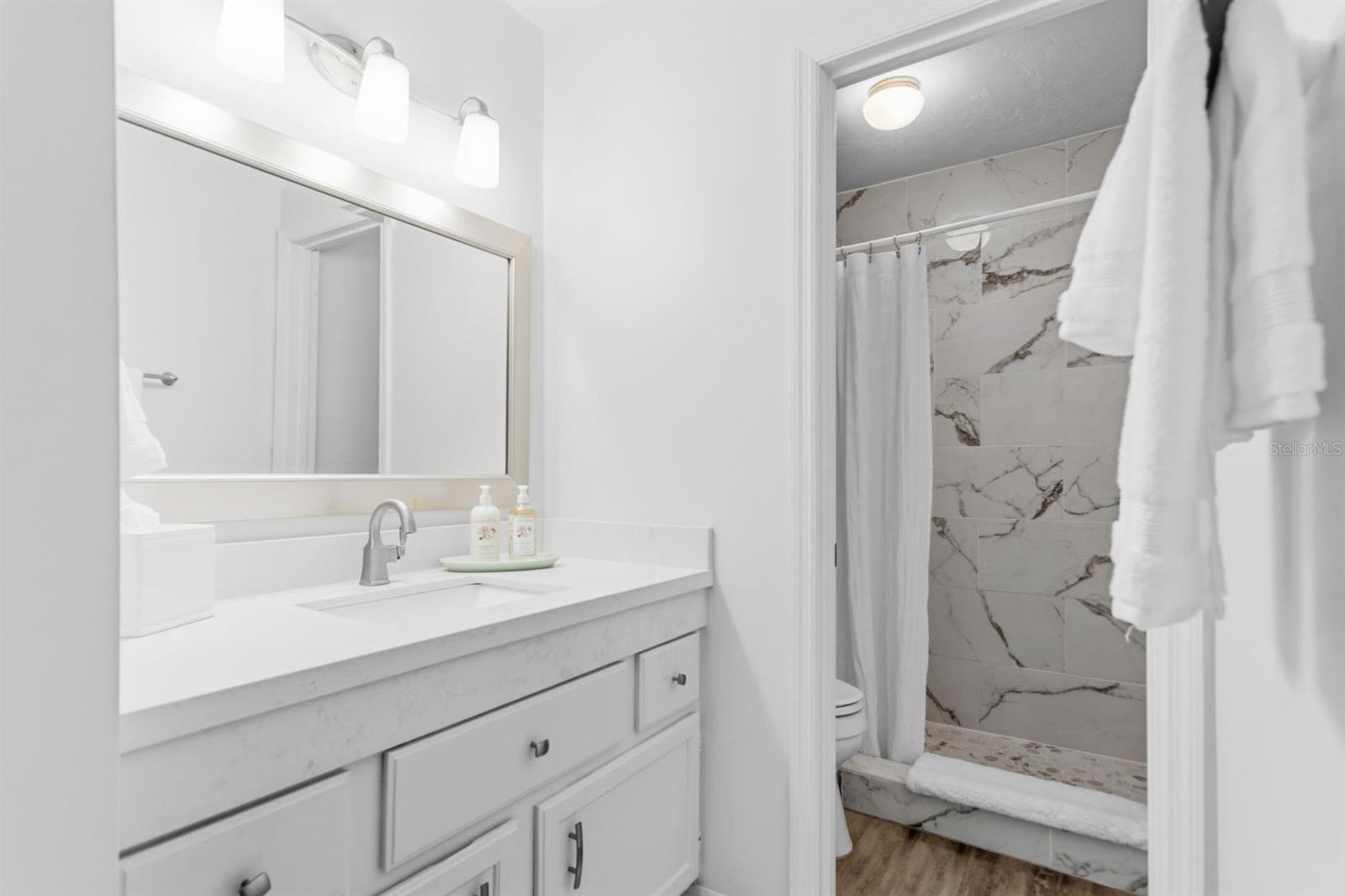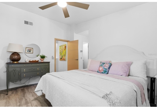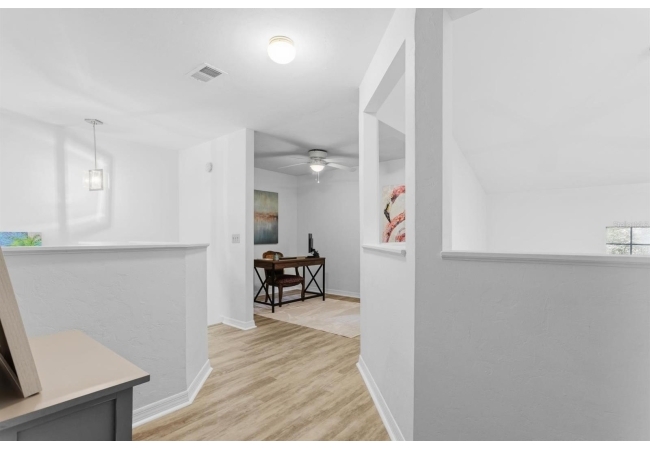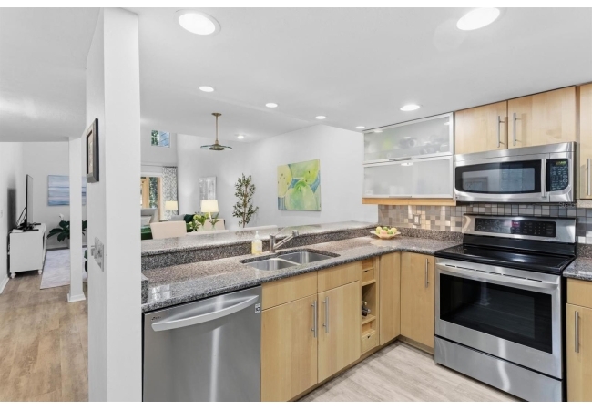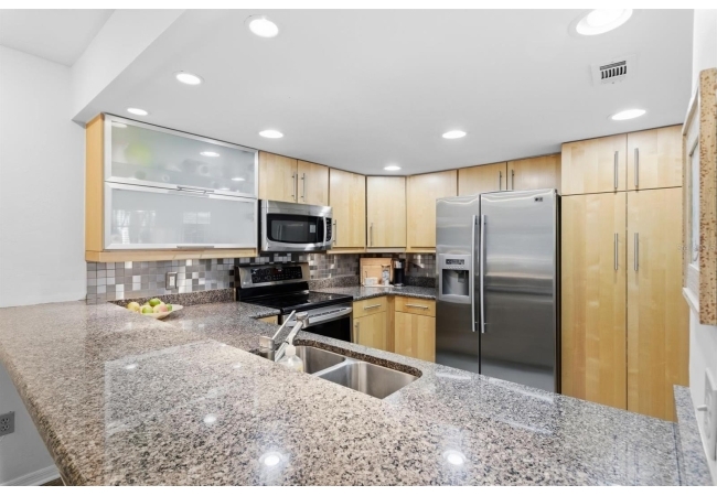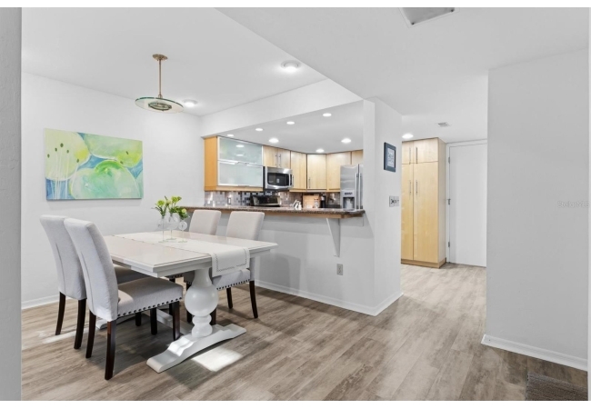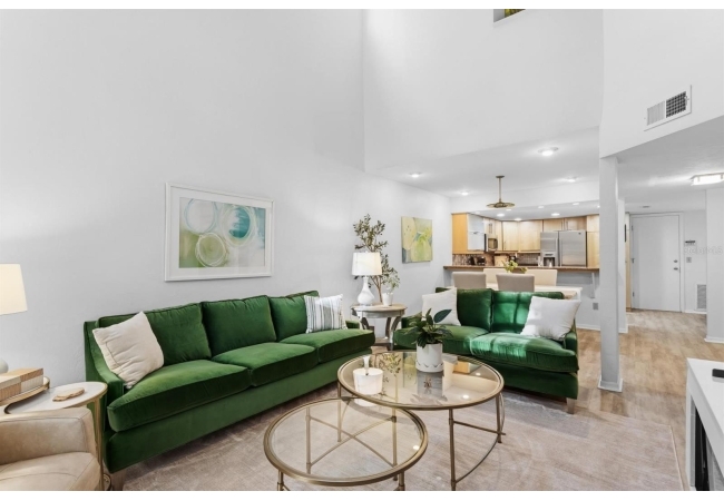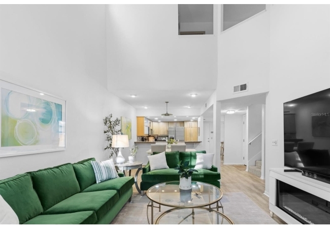 Welcome to one of the most beautiful townhouses to become available in the highly desirable community of Mill Pond. This two-story end unit home features two bedrooms and two full bathrooms, a spacious living room with dramatic cathedral ceilings, a dining area, an updated modern kitchen with birch cabinets, stainless steel appliances and stone counters, eat-in breakfast nook and a downstairs bedroom with a full luxury bathroom. Moving upstairs is a bonus room/flex room loft area, a primary bedroom suite with lots of windows & a luxury en suite bathroom and walk-in closet.