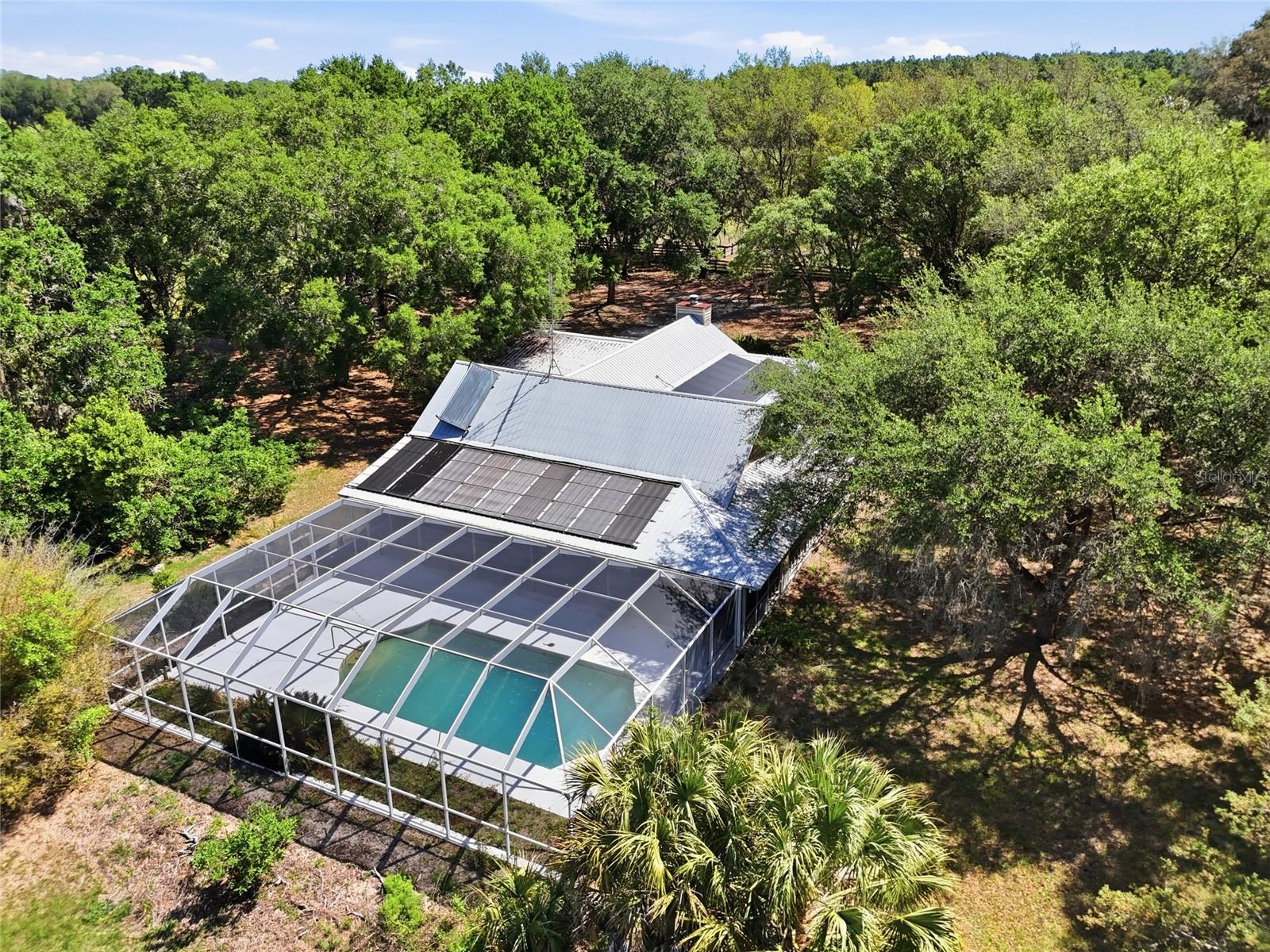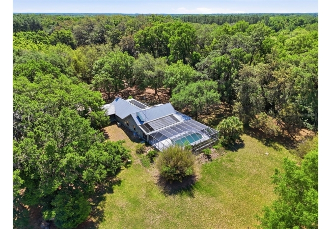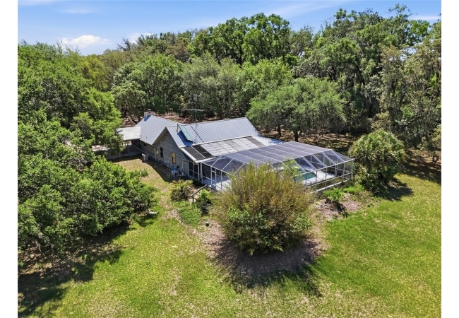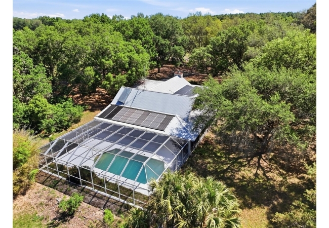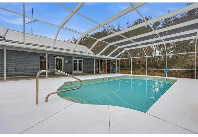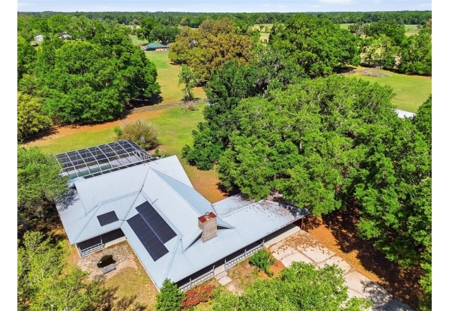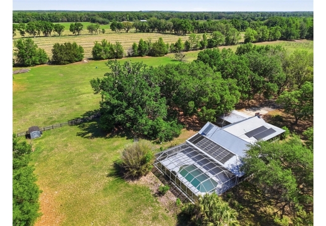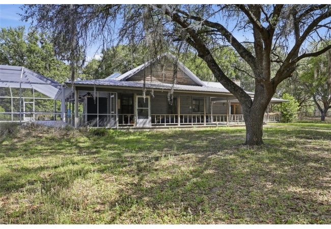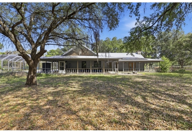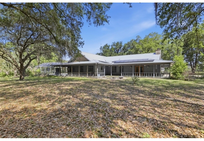 Tucked away at the very end of a picturesque oak lined road, this one-of-a-kind five-acre estate captures the beauty of Old Florida living. At the heart of the property is a custom-built cedar-sided home with a metal roof, offering 3BR/2BA, and 2,160 sq. ft., with an impressive 4,208 sq.ft. under roof thanks to the expansive wraparound porch. Full of character and timeless appeal, this is the kind of home that simply cannot be replicated. Inside, you’ll find warm and inviting spaces with no carpet—only tile and hardwood flooring throughout. The living room centers around a stunning stone wood-burning fireplace, creating the perfect gathering space, while the kitchen features stainless steel appliances and great functionality. The primary bathroom has been tastefully updated. Step outside to enjoy the solar-heated pool with pool enclosure. The land is the true showpiece here, offering a blend of open fenced pasture for horses or livestock and wooded acreage shaded by mature oaks that create a timeless, park-like backdrop. Framed by majestic oak trees along both the road and private driveway, the setting is peaceful, private, and surrounded by neighboring farms and open countryside.Perfect for those dreaming of a hobby farm, or mini ranch, the property includes a barn with horse run-in shelter plus a studio-style apartment with a small kitchen—ideal for guests, extended family, or flexible bonus space. With no HOA and no deed restrictions, you have the freedom to enjoy country living your way. Ideally positioned between High Springs, Alachua, and Newberry, you’ll enjoy easy access to shopping, dining, and everyday conveniences while still feeling worlds away. Some of North Florida’s most beloved natural springs and rivers—including Ginnie Springs, Blue Springs Park, and the Santa Fe River—are just a short drive away, making weekend adventures part of everyday life. If you’ve been searching for privacy, beauty, usable land, and a home with soul, this is the kind of property that rarely comes available.
