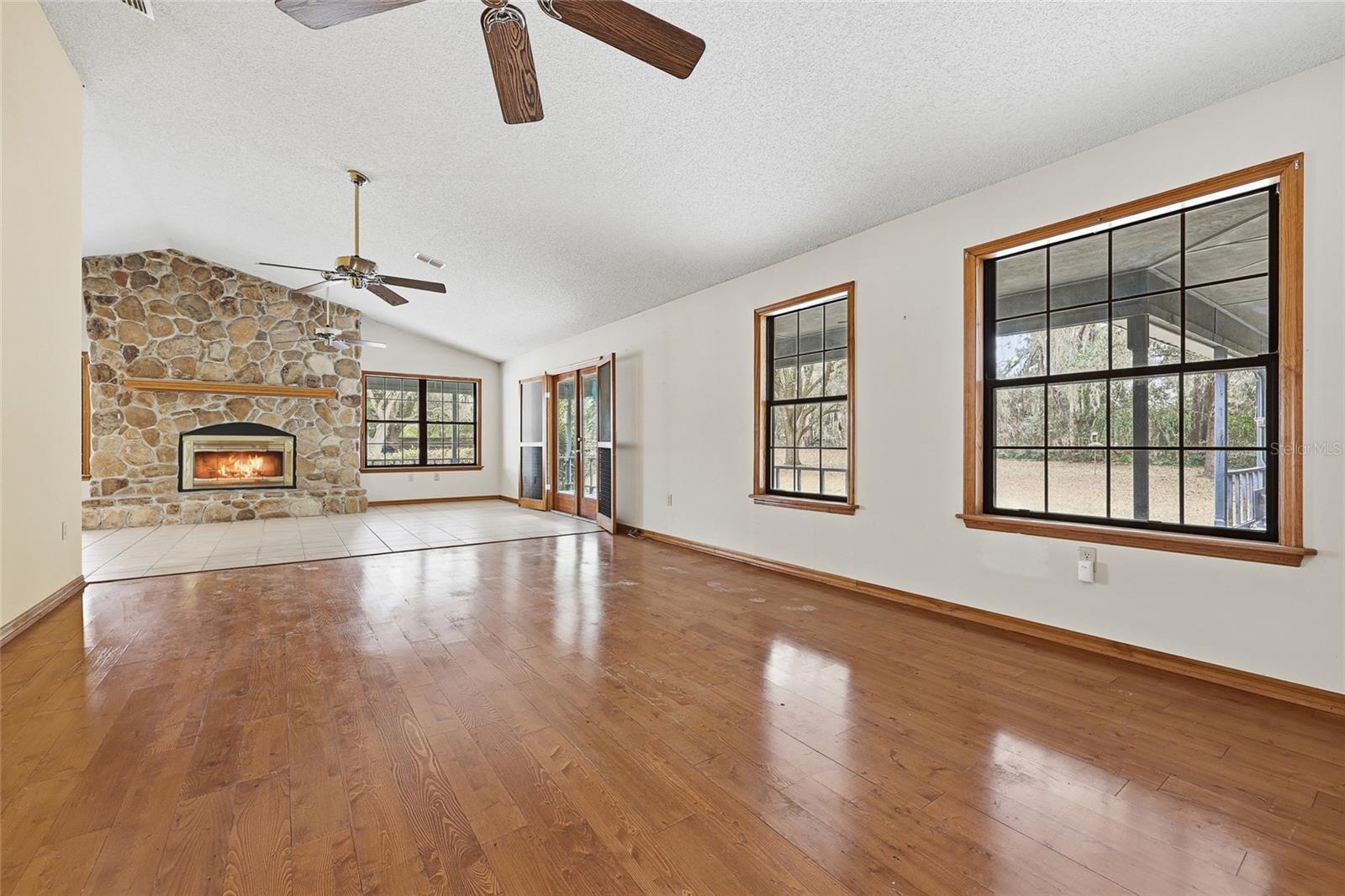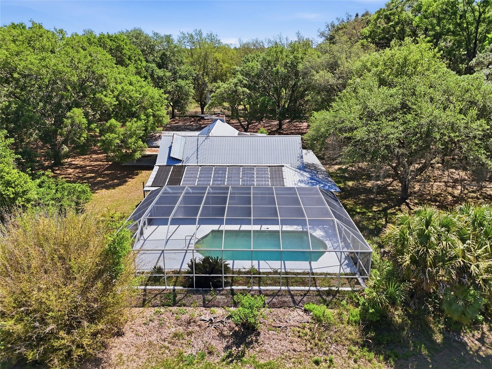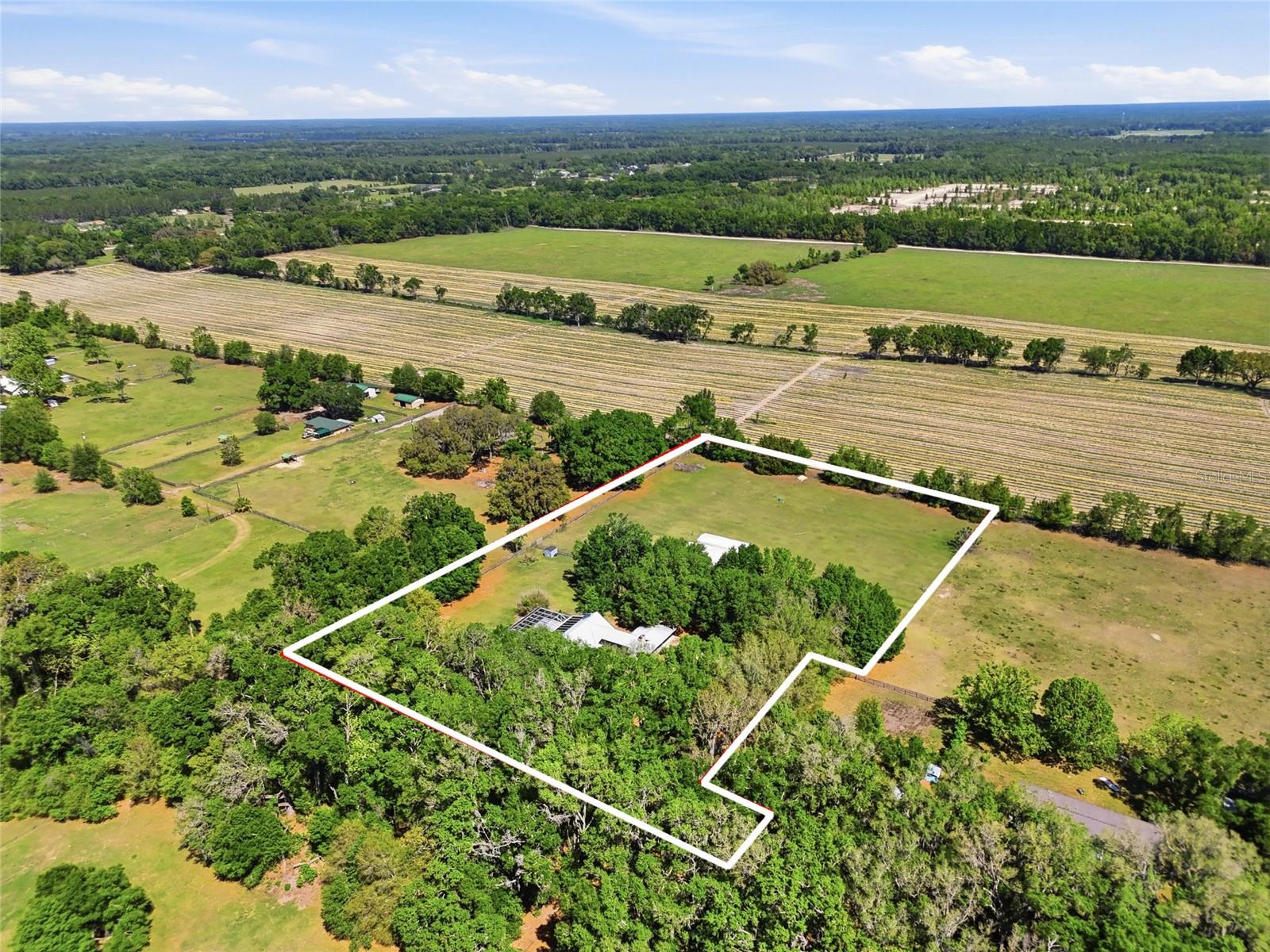 Tucked away at the very end of a picturesque oak lined road, this one-of-a-kind five-acre estate captures the beauty of Old Florida living. At the heart of the property is a custom-built cedar-sided home with a metal roof, offering 3BR/2BA, and 2,160 sq. ft., with an impressive 4,208 sq.ft. under roof thanks to the expansive wraparound porch. Full of character and timeless appeal, this is the kind of home that simply cannot be replicated. Inside, you’ll find warm and inviting spaces with no carpet—only tile and hardwood flooring throughout. The living room centers around a stunning stone wood-burning fireplace, creating the perfect gathering space, while the kitchen features stainless steel appliances and great functionality. The primary bathroom has been tastefully updated. Step outside to enjoy the solar-heated pool with pool enclosure. The land is the true showpiece here, offering a blend of open fenced pasture for horses or livestock and wooded acreage shaded by mature oaks that create a timeless, park-like backdrop. Framed by majestic oak trees along both the road and private driveway, the setting is peaceful, private, and surrounded by neighboring farms and open countryside.Perfect for those dreaming of a hobby farm, or mini ranch, the property includes a barn with horse run-in shelter plus a studio-style apartment with a small kitchen—ideal for guests, extended family, or flexible bonus space. With no HOA and no deed restrictions, you have the freedom to enjoy country living your way. Ideally positioned between High Springs, Alachua, and Newberry, you’ll enjoy easy access to shopping, dining, and everyday conveniences while still feeling worlds away. Some of North Florida’s most beloved natural springs and rivers—including Ginnie Springs, Blue Springs Park, and the Santa Fe River—are just a short drive away, making weekend adventures part of everyday life. If you’ve been searching for privacy, beauty, usable land, and a home with soul, this is the kind of property that rarely comes available.