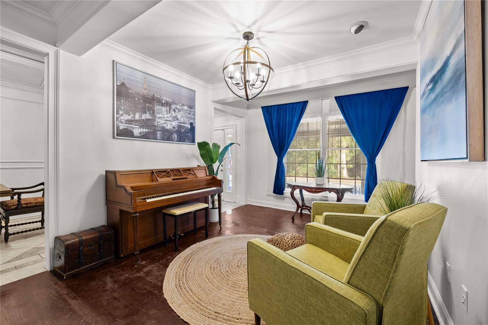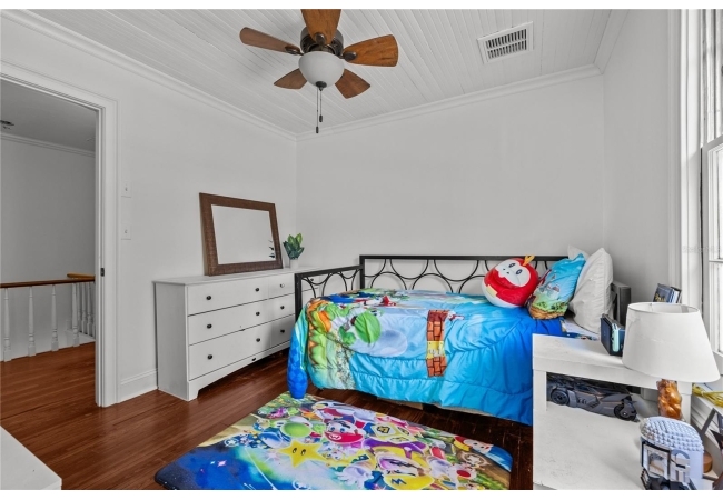 Inside, you’ll find intricate trim work, detailed molding, tray ceilings, and truly unique architectural features throughout. The interior and exterior have been freshly painted, while major systems provide peace of mind, including a metal roof taken down to the rafters in 2018 and HVAC replacement in 2018 with a dual-zone system that contributes to low energy bills year-round.