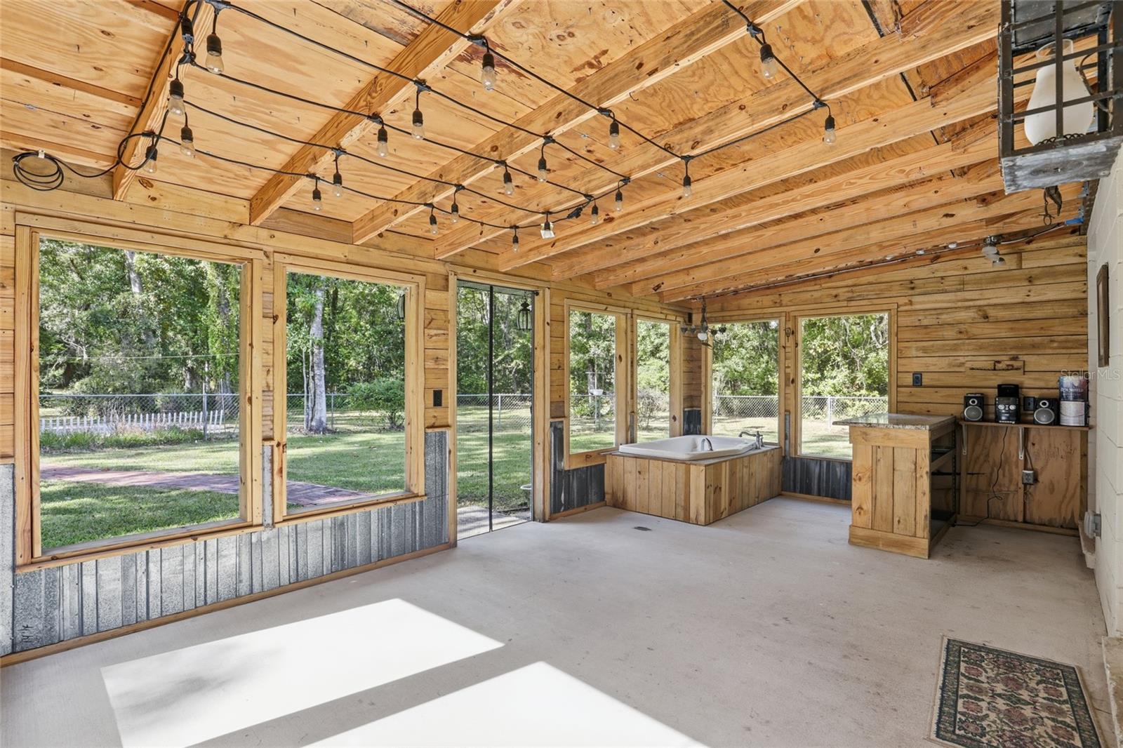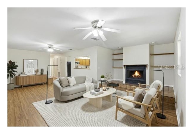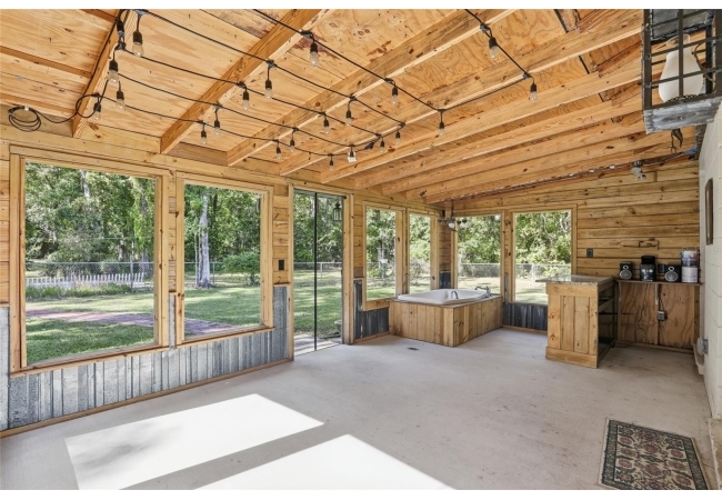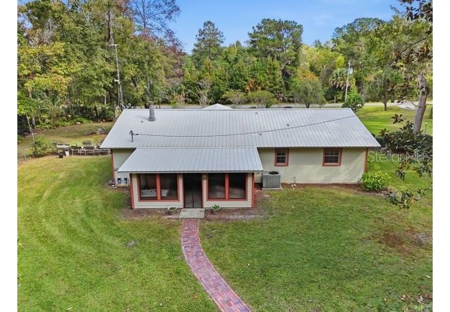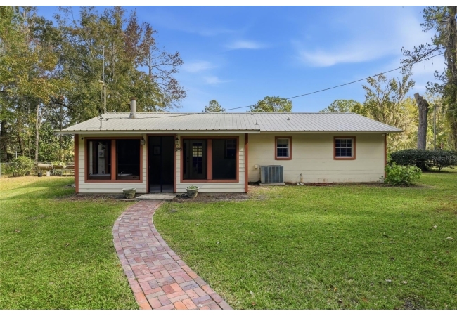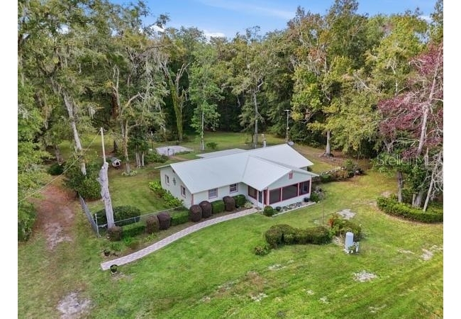 Welcome home to a solid block home on 5.61 private acres. One or more rooms have been virtually staged. This 3 bed 2 bath home boasts a full metal roof that is only 8 years old! Beautiful vinyl and tile floors throughout. Eat in kitchen with plenty of room for family gatherings. Fireplace in living area to stay warm on those cold winter nights. Full laundry room with ample storage and plentiful countertops for folding and laundry supplies. This home has two enclosed porches, one on the front and one on the back of the home. Cement pad behind the home for basketball with the family or cookouts with friends. The property is quiet and beautiful with lush green landscaping and a wooded private view. Small pond on the back of property that fills with rainfall and dries up with drought. You do not want to miss this property come see it today!